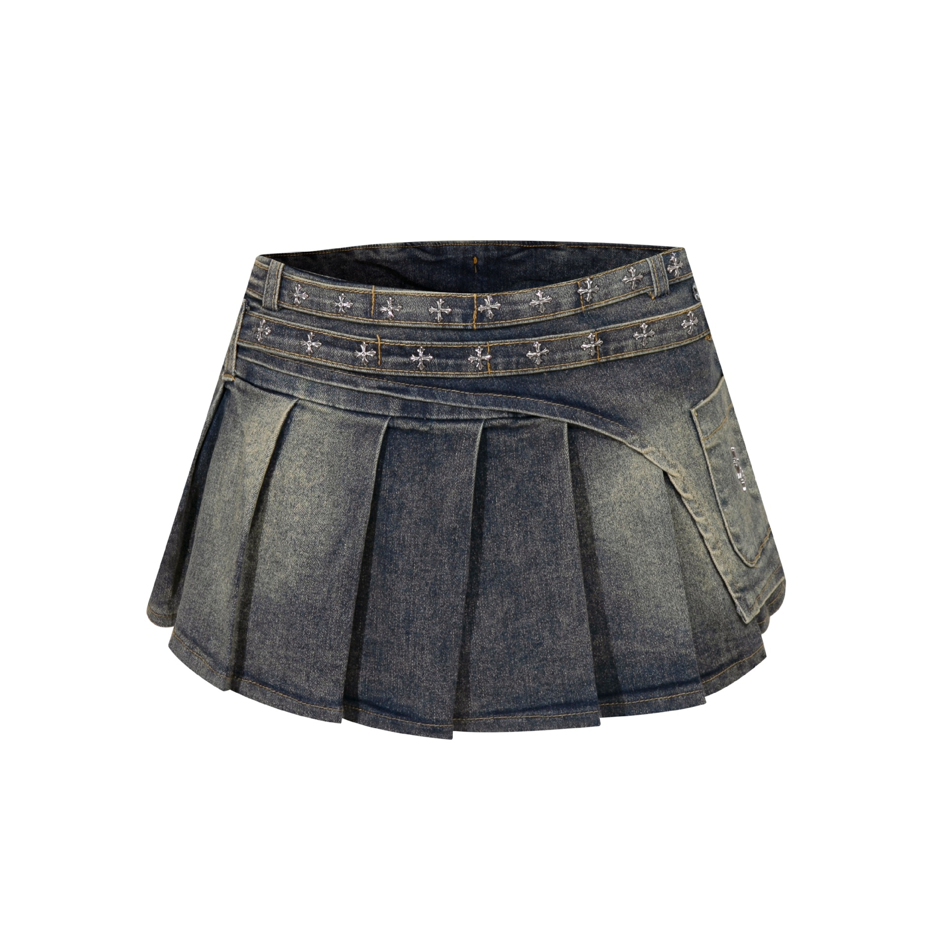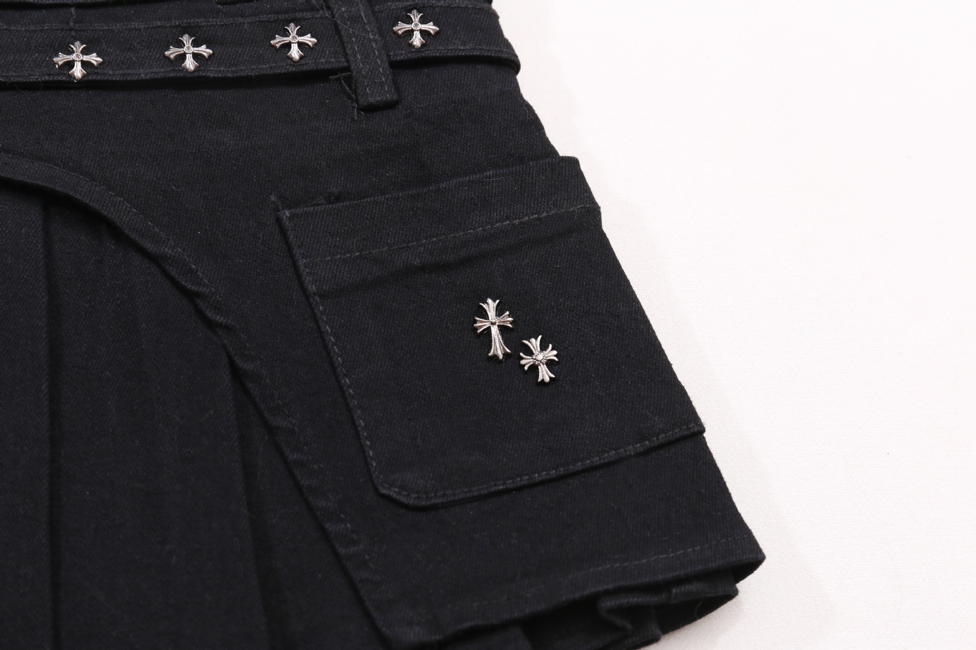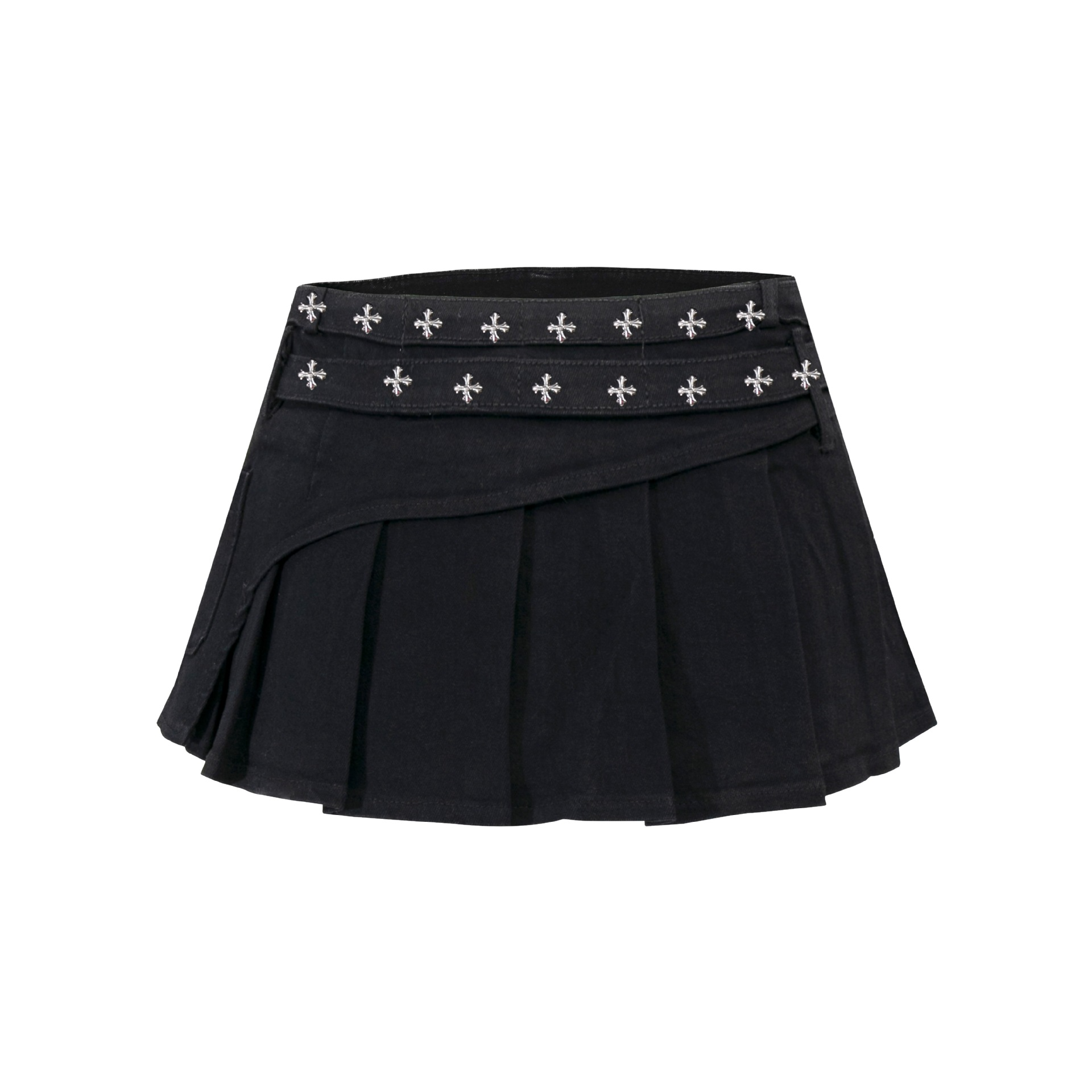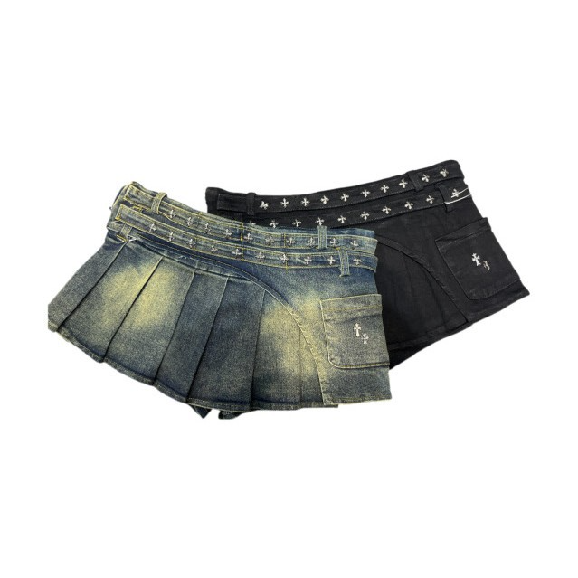 クロススタッズデザインデニムミニスカート/2color/cm0142