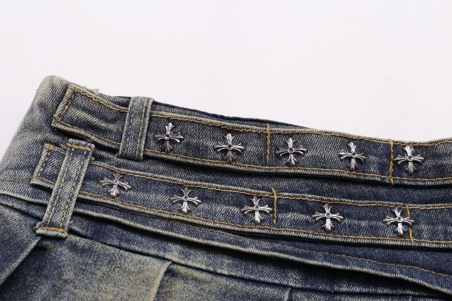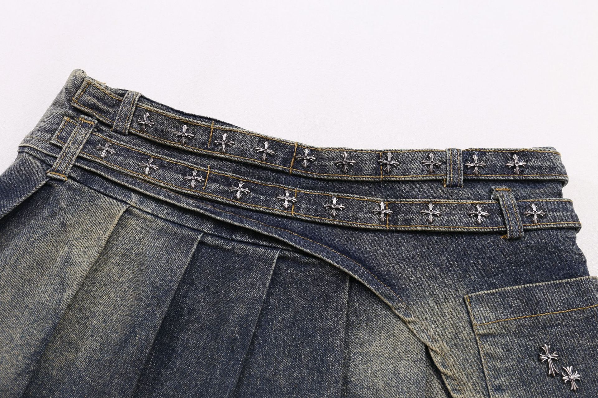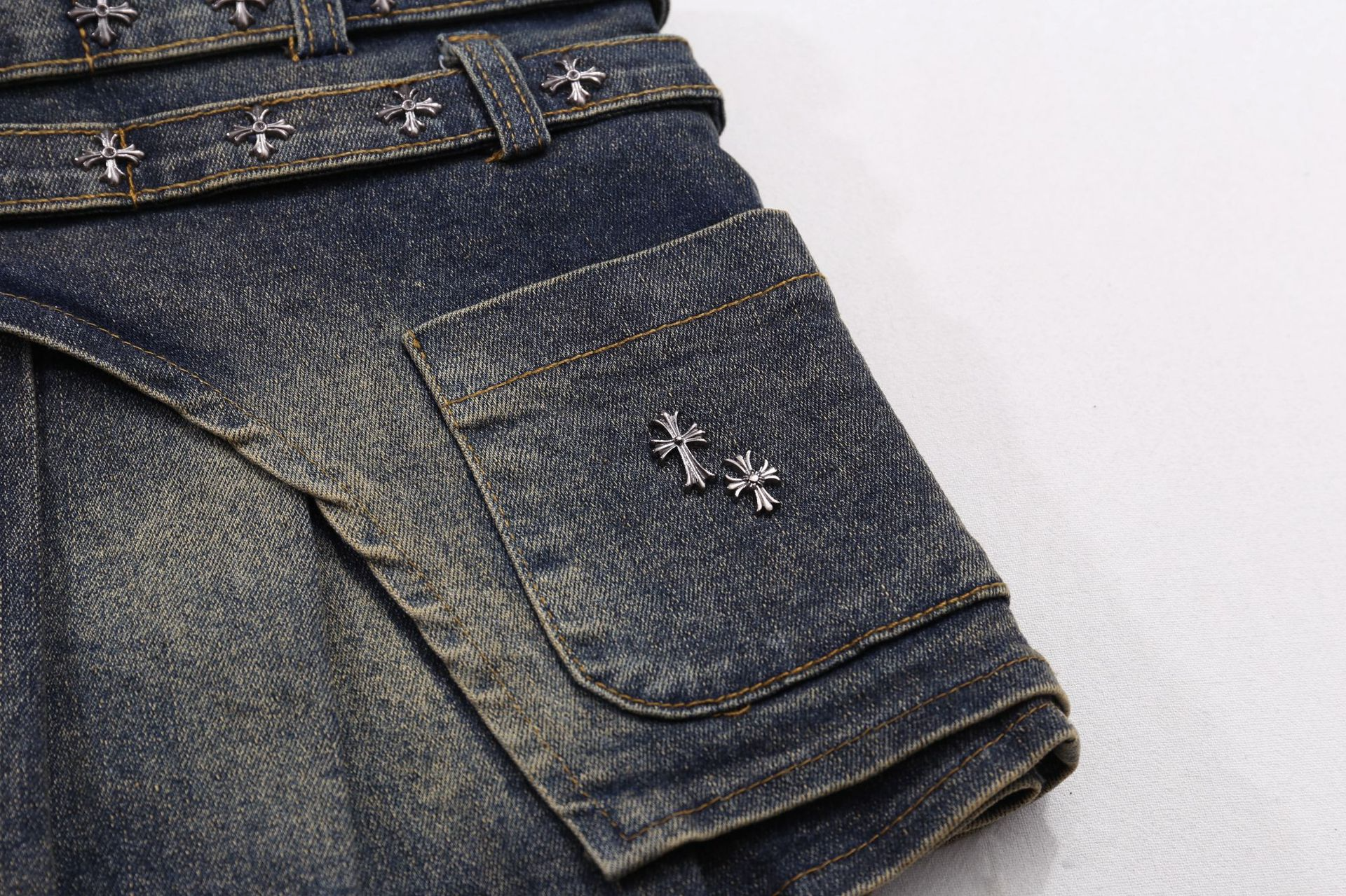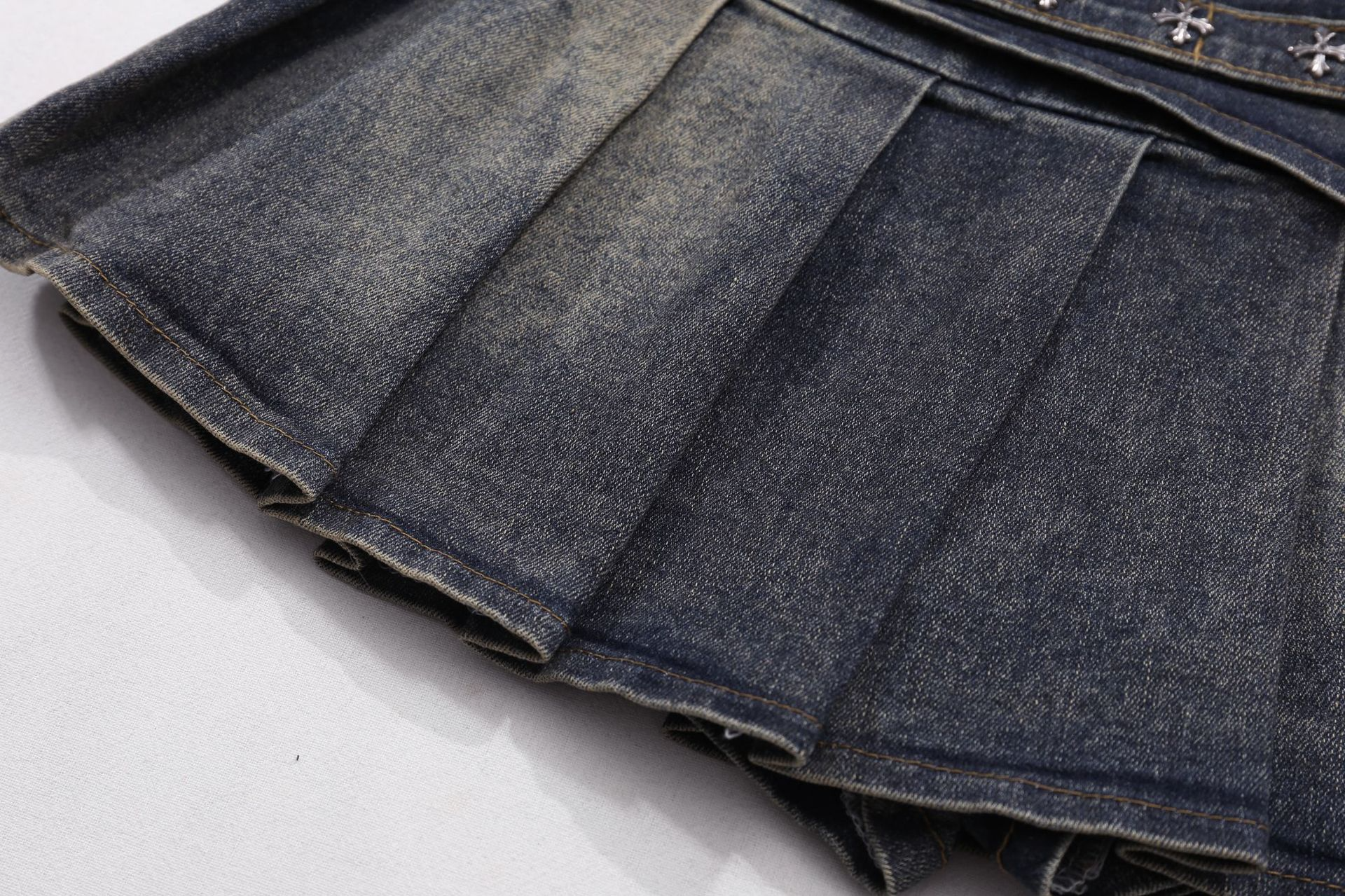 クロススタッズデザインデニムミニスカート/2color/cm0142