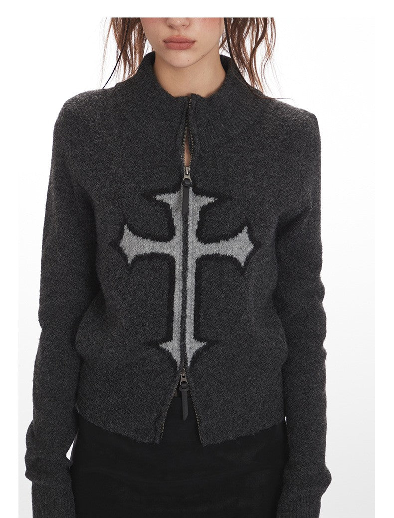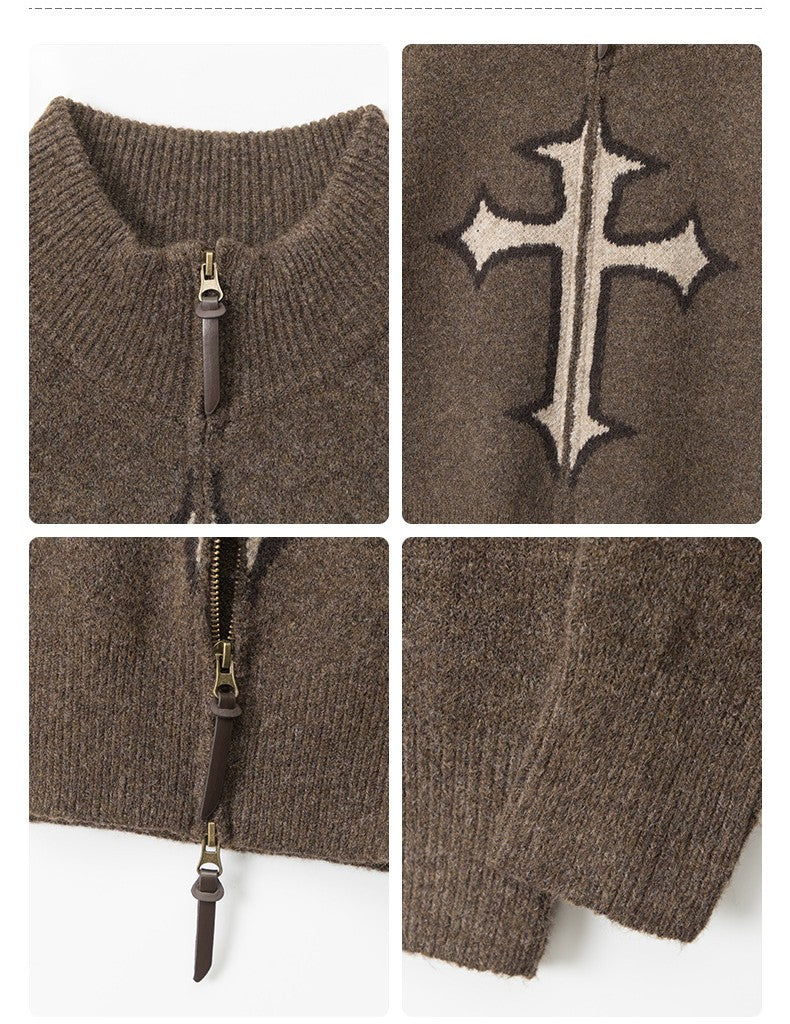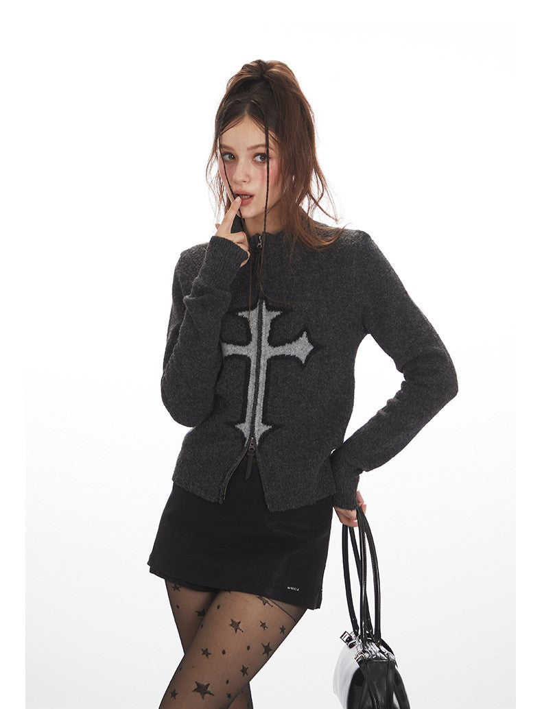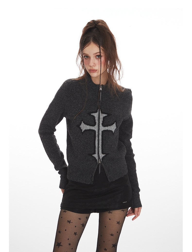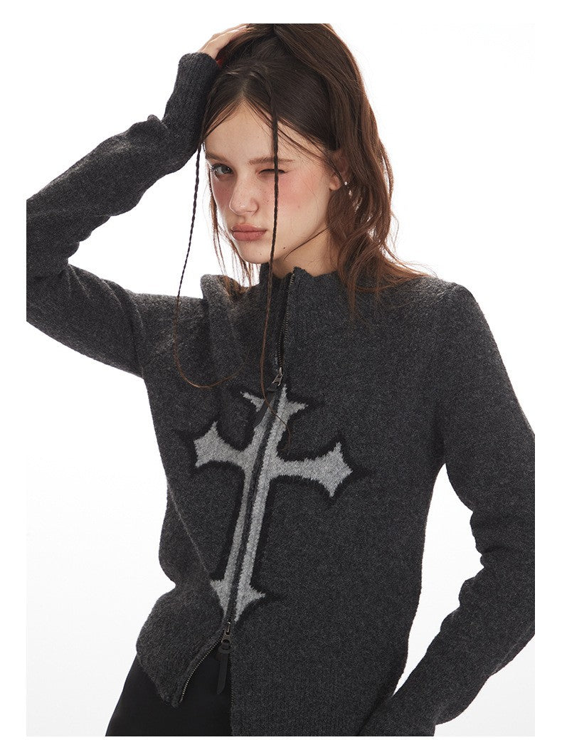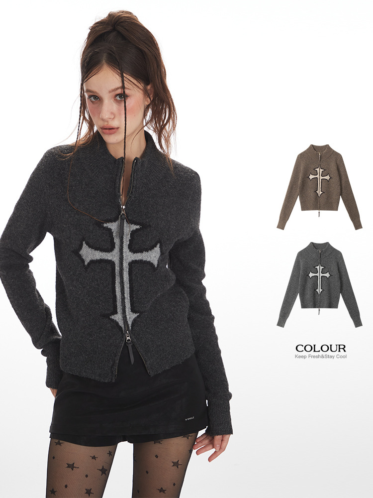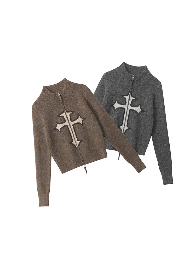 クロスロゴデザインジップアップニット/2color/cm0143