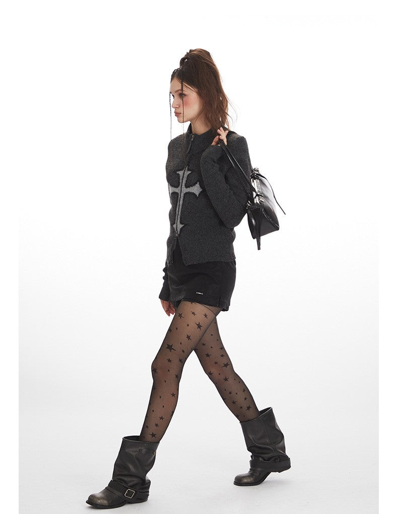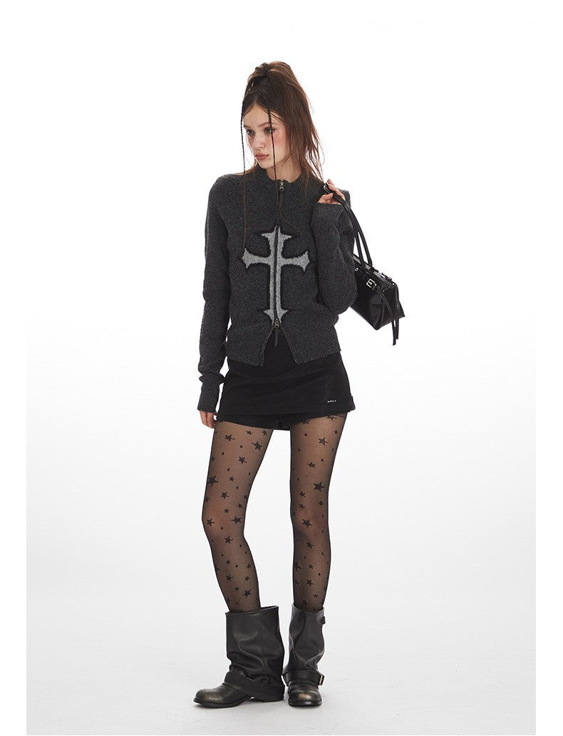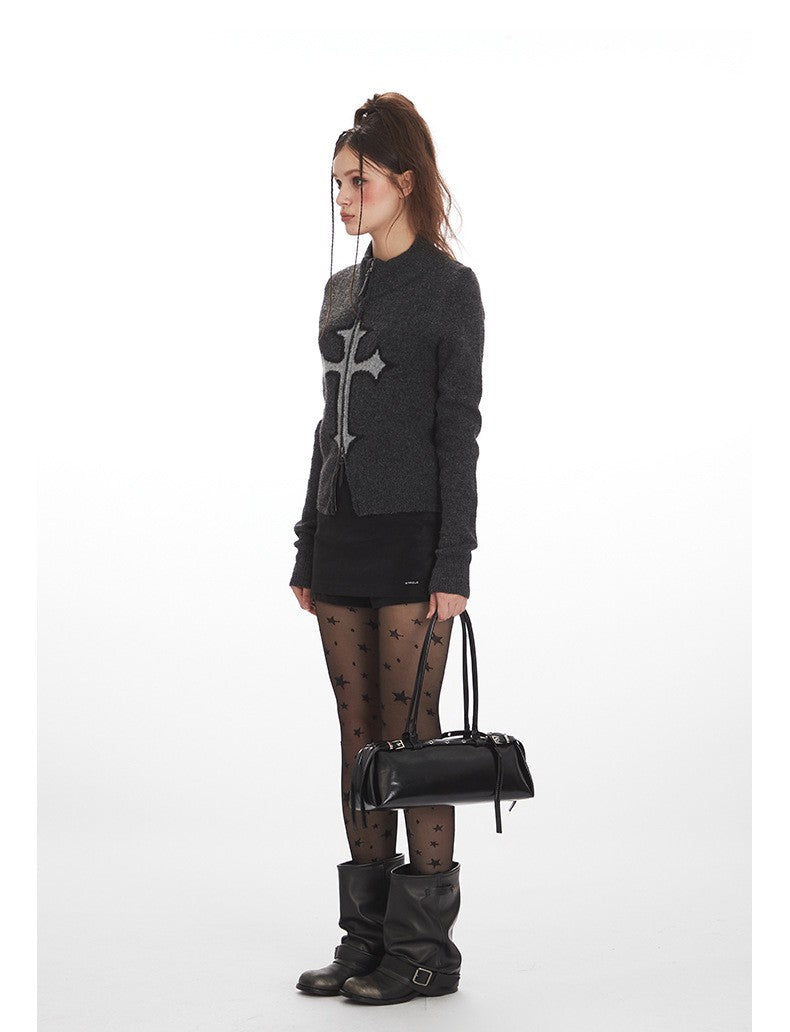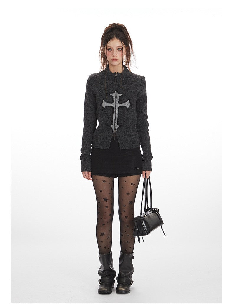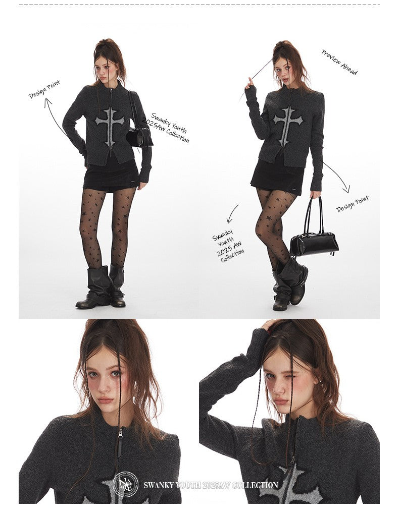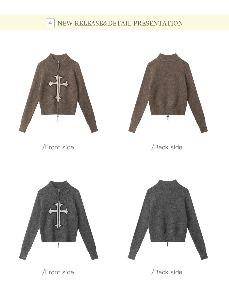 クロスロゴデザインジップアップニット/2color/cm0143