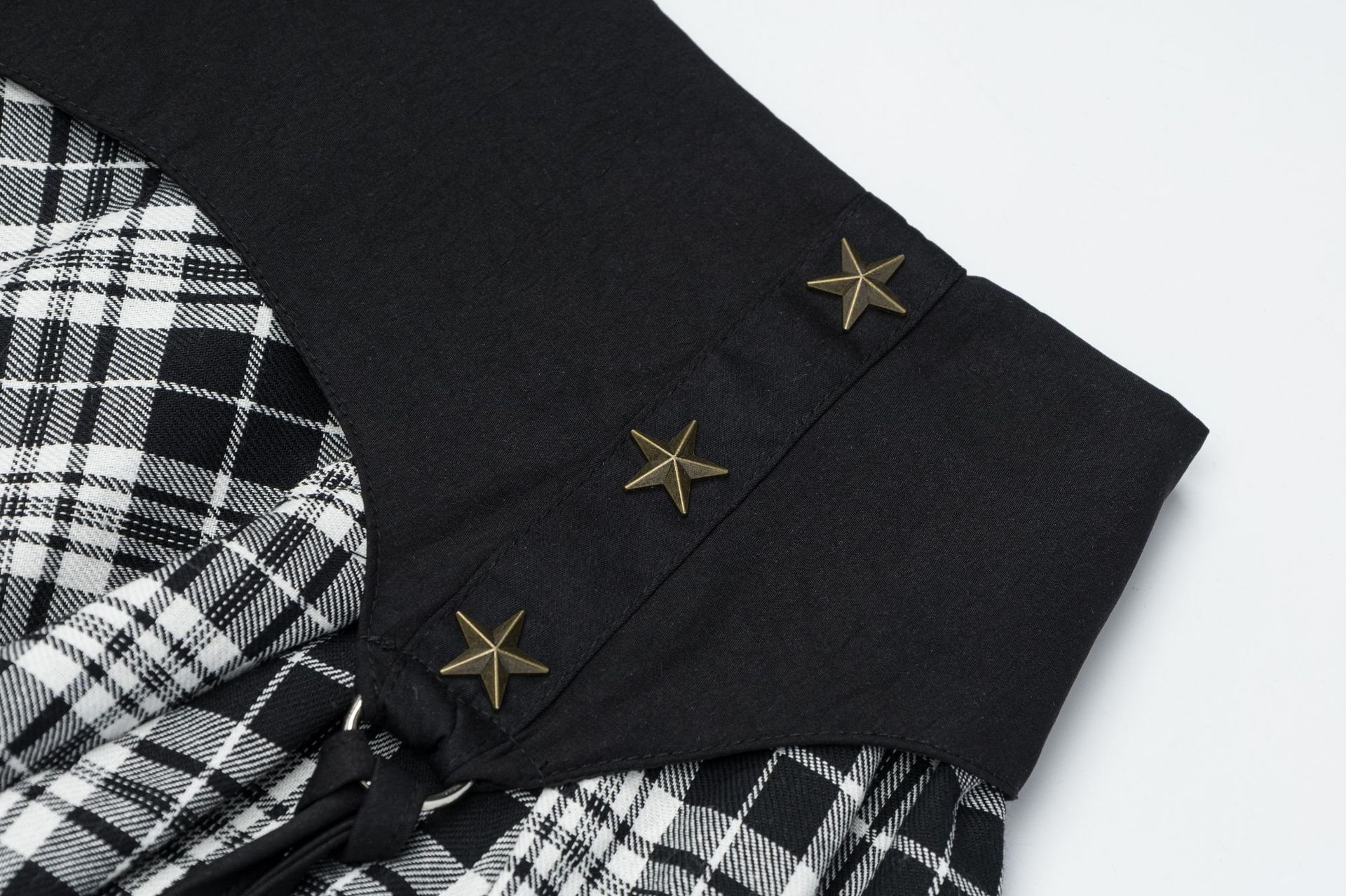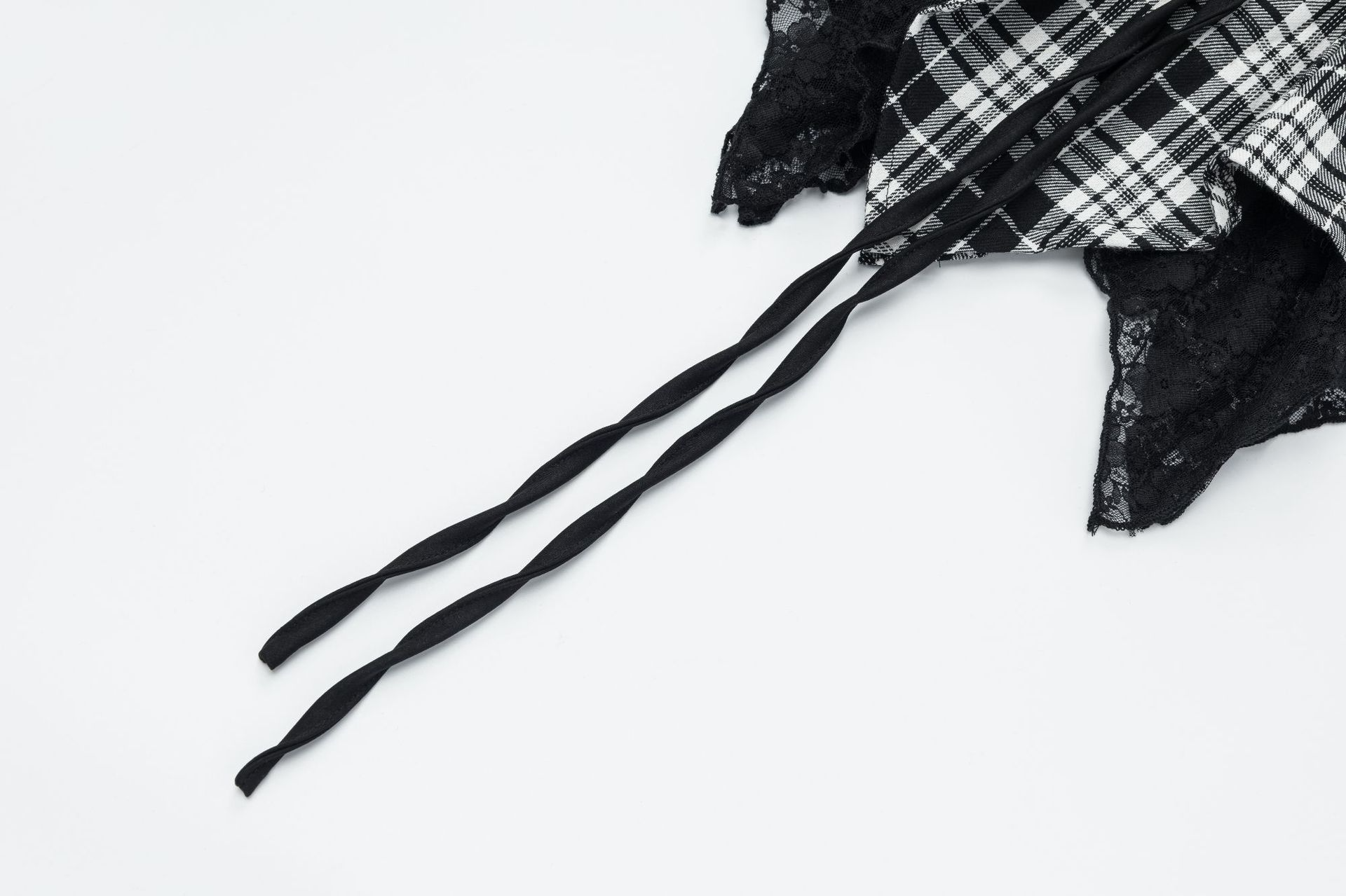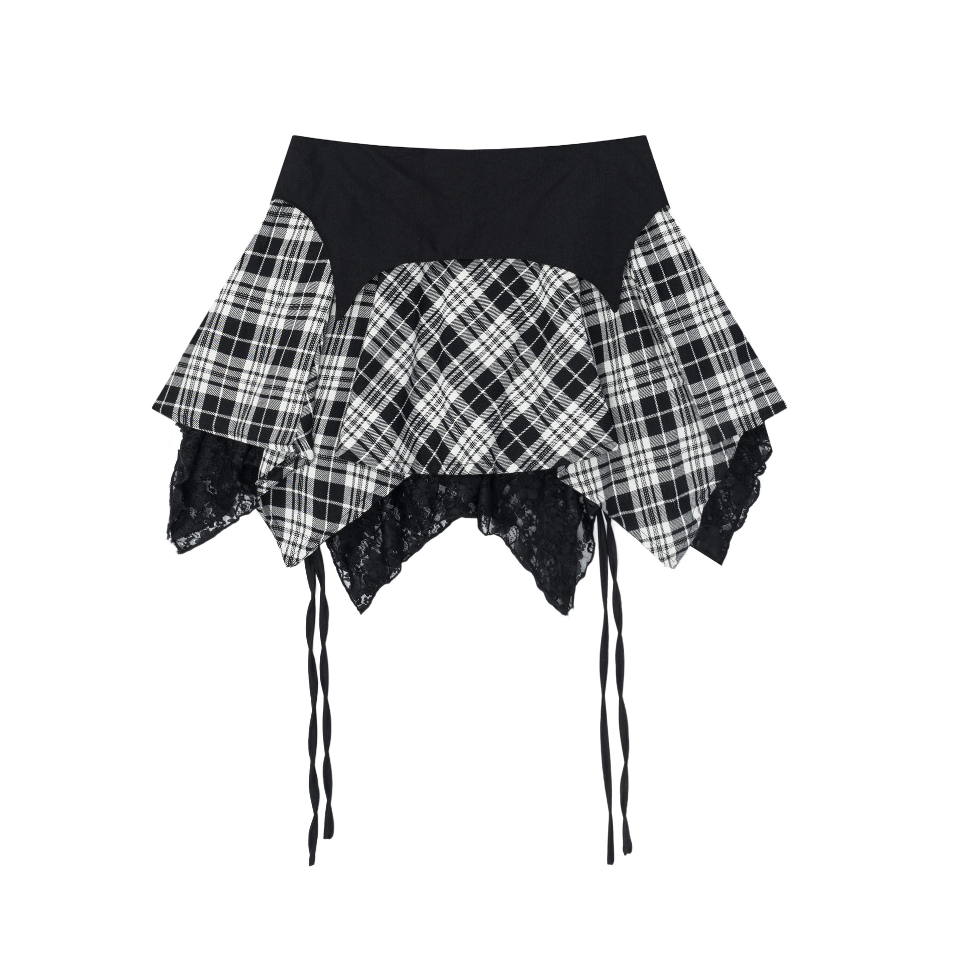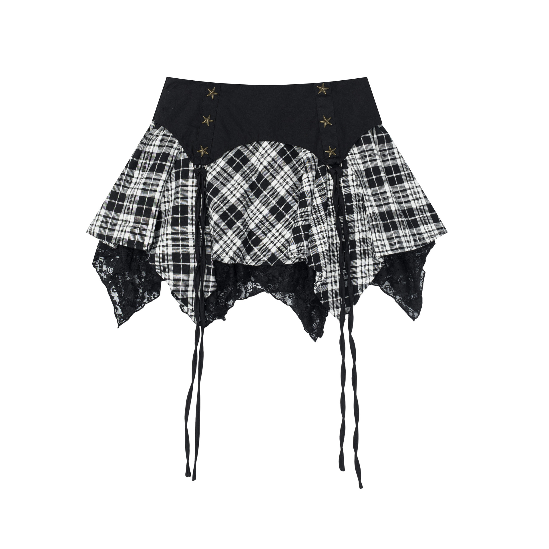 チェック柄スターアクセ付きレースディテールミニスカート/cm0041