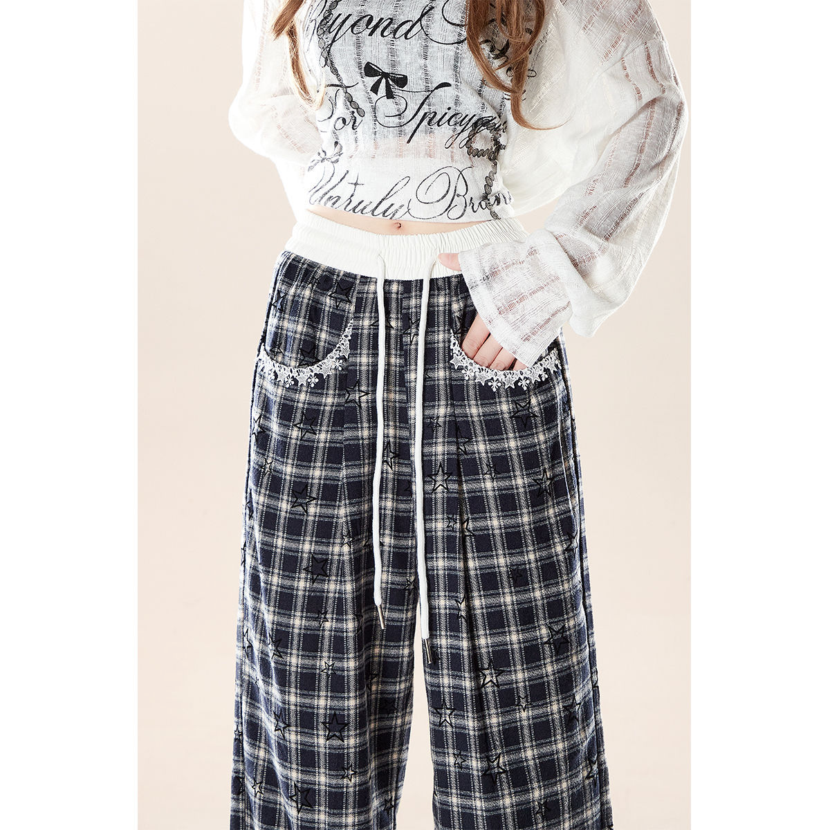 レースパッチワークスタープリントワイドレッグパンツ/cm0042