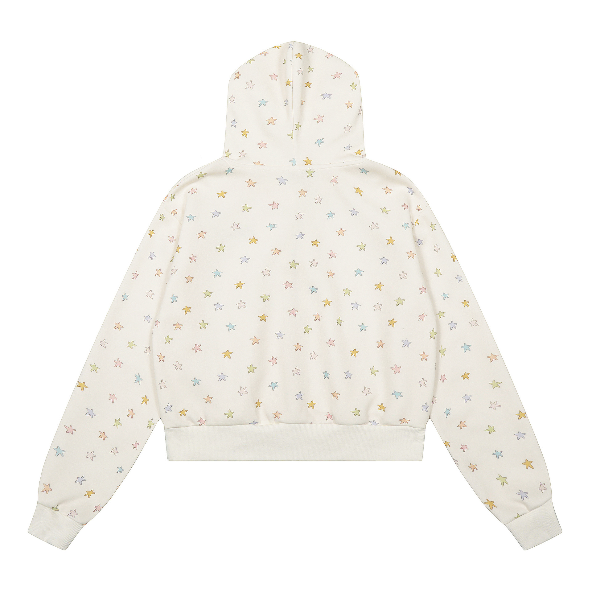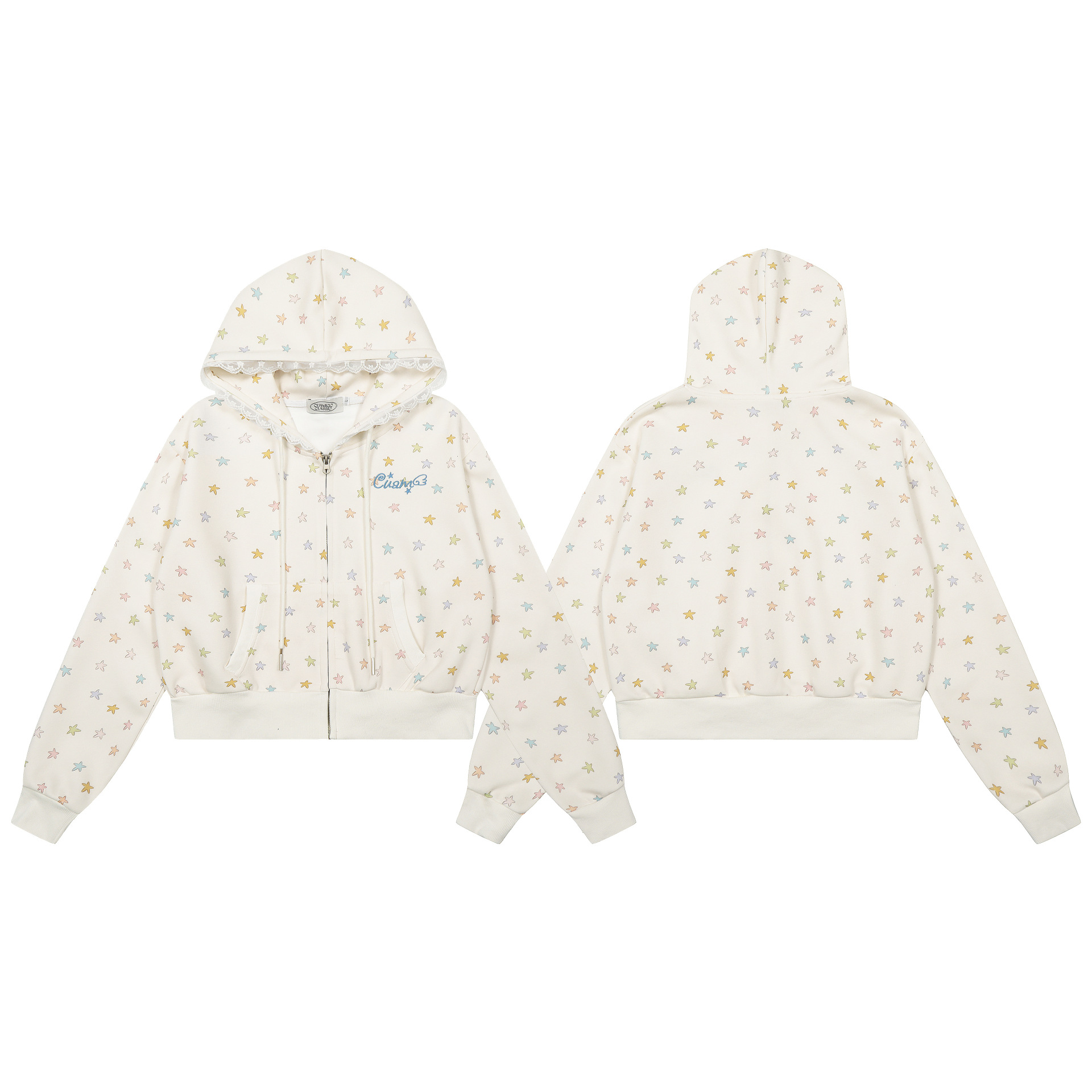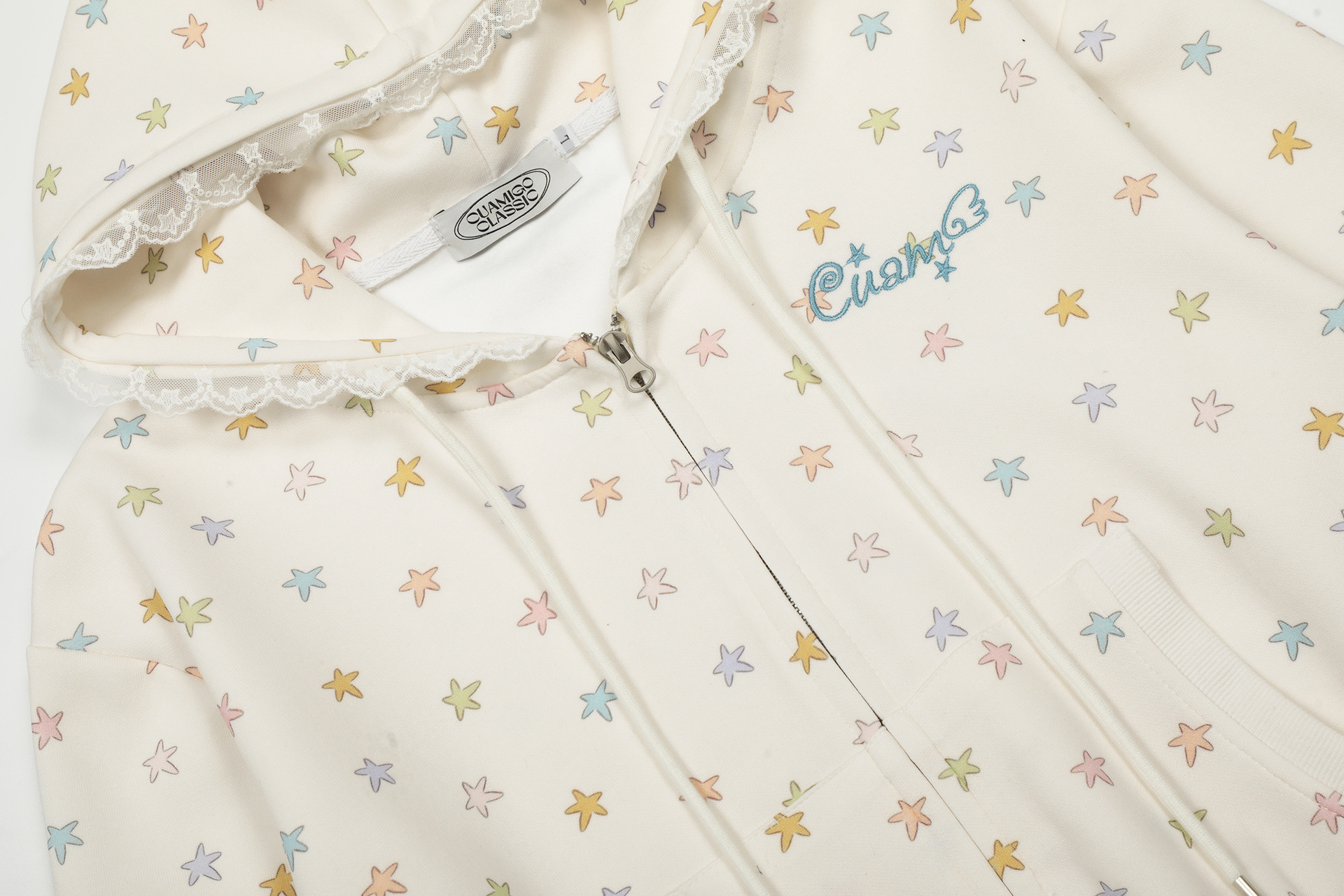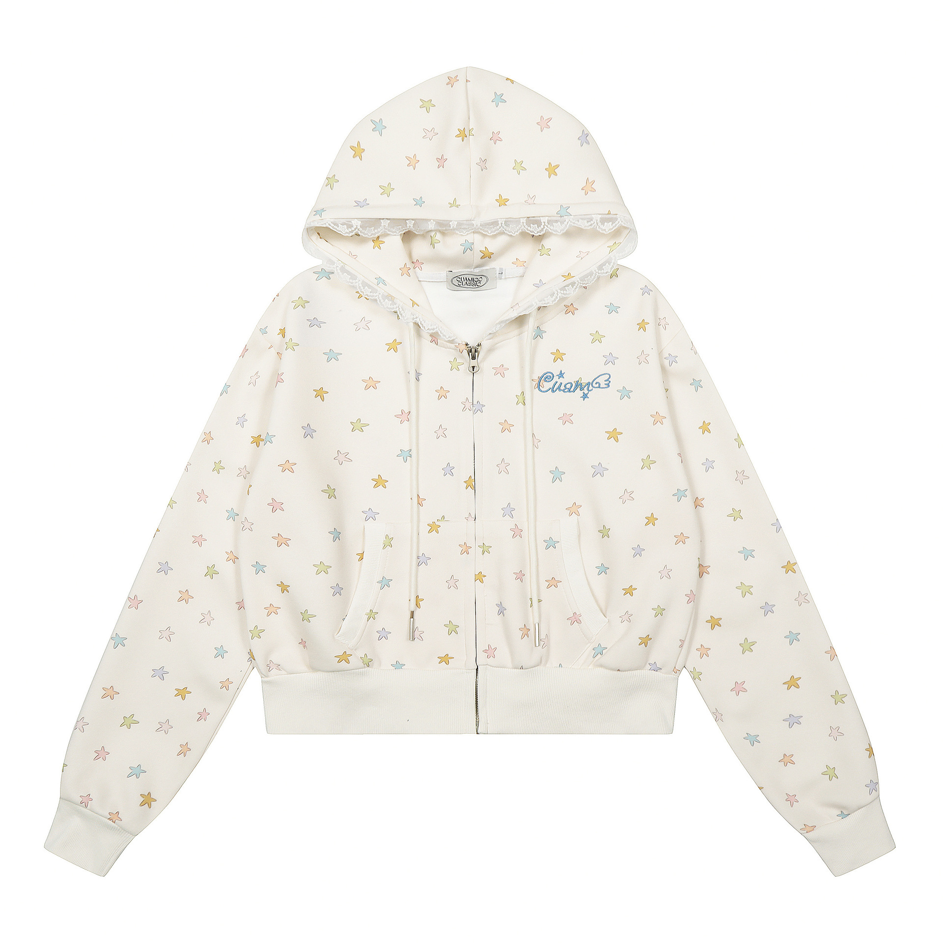 レース縁フードスタープリントジップアップパーカー/cm0050