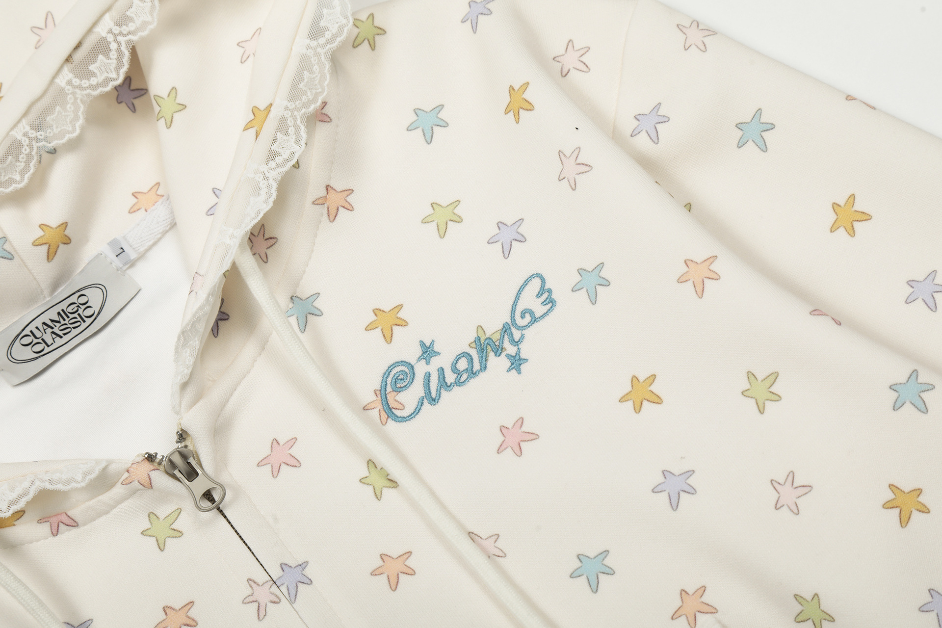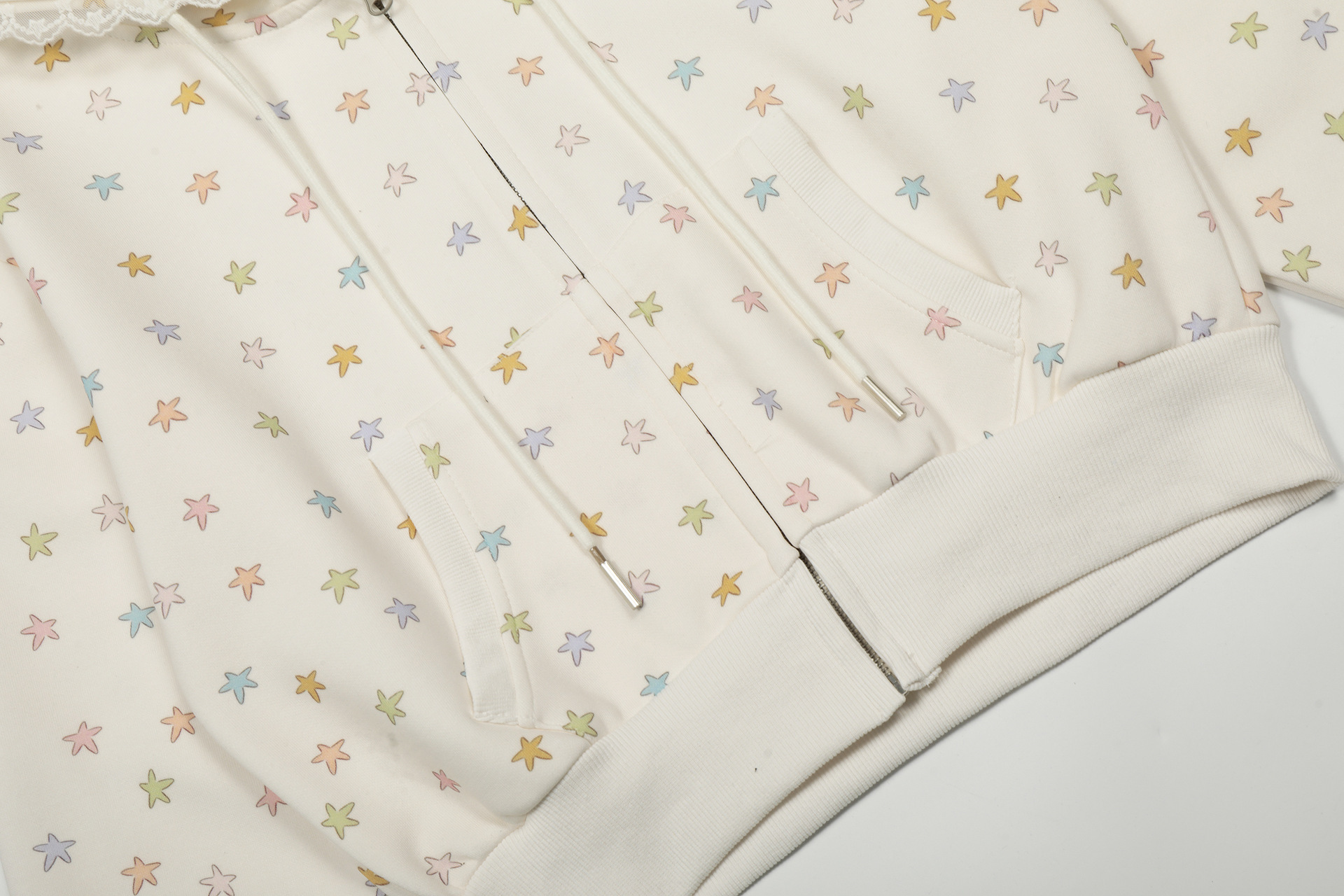 おしゃれを楽しむ女性にぴったりなレース縁フードスタープリントジップアップパーカーは、デイリーコーデに遊び心と華やかさをプラスするアイテムです!独特なレース縁とキュートなスタープリントが、あなたのスタイルに個性を与え、様々なシーンで活躍します。このパーカーを取り入れて、心弾むスタイルをぜひ楽しんでください。