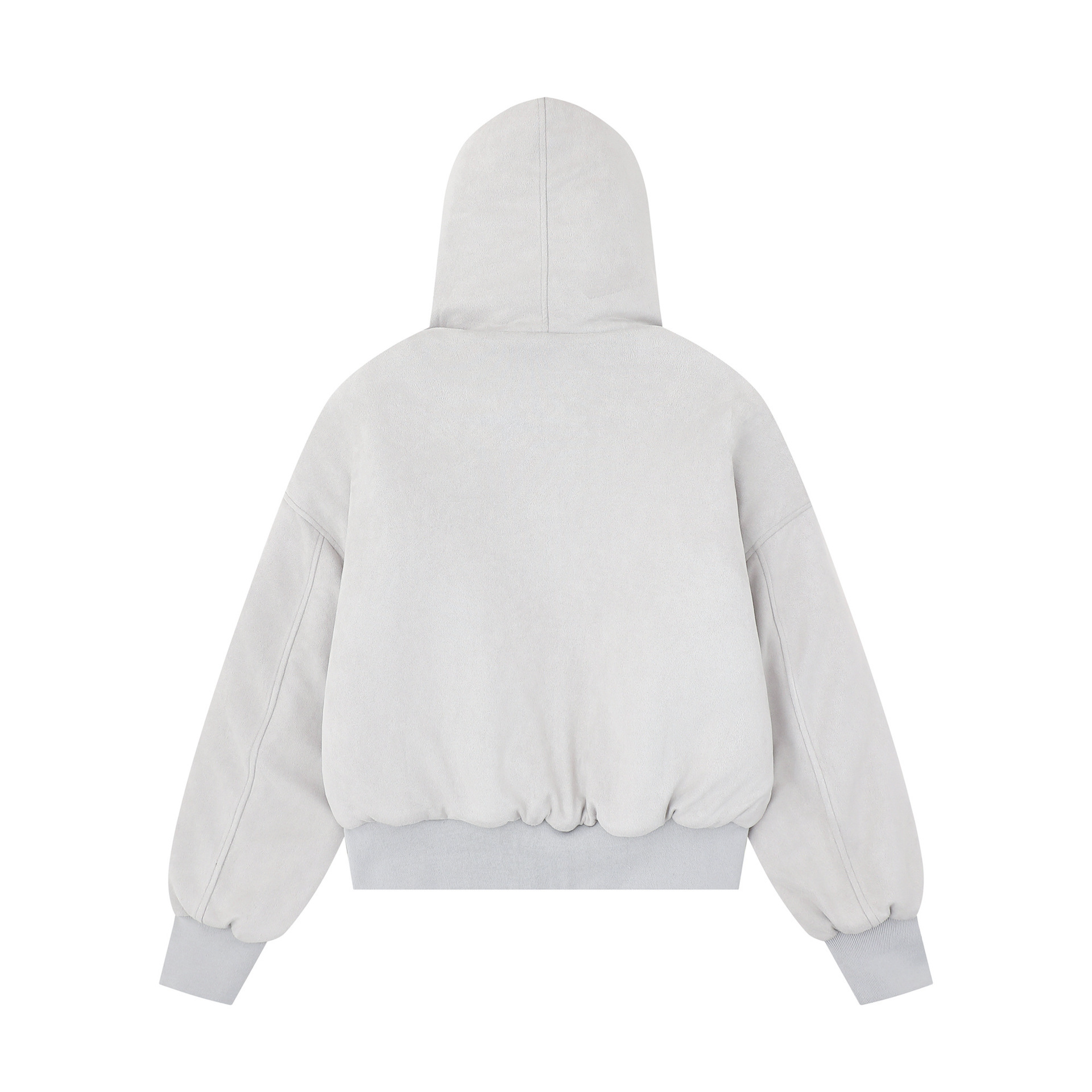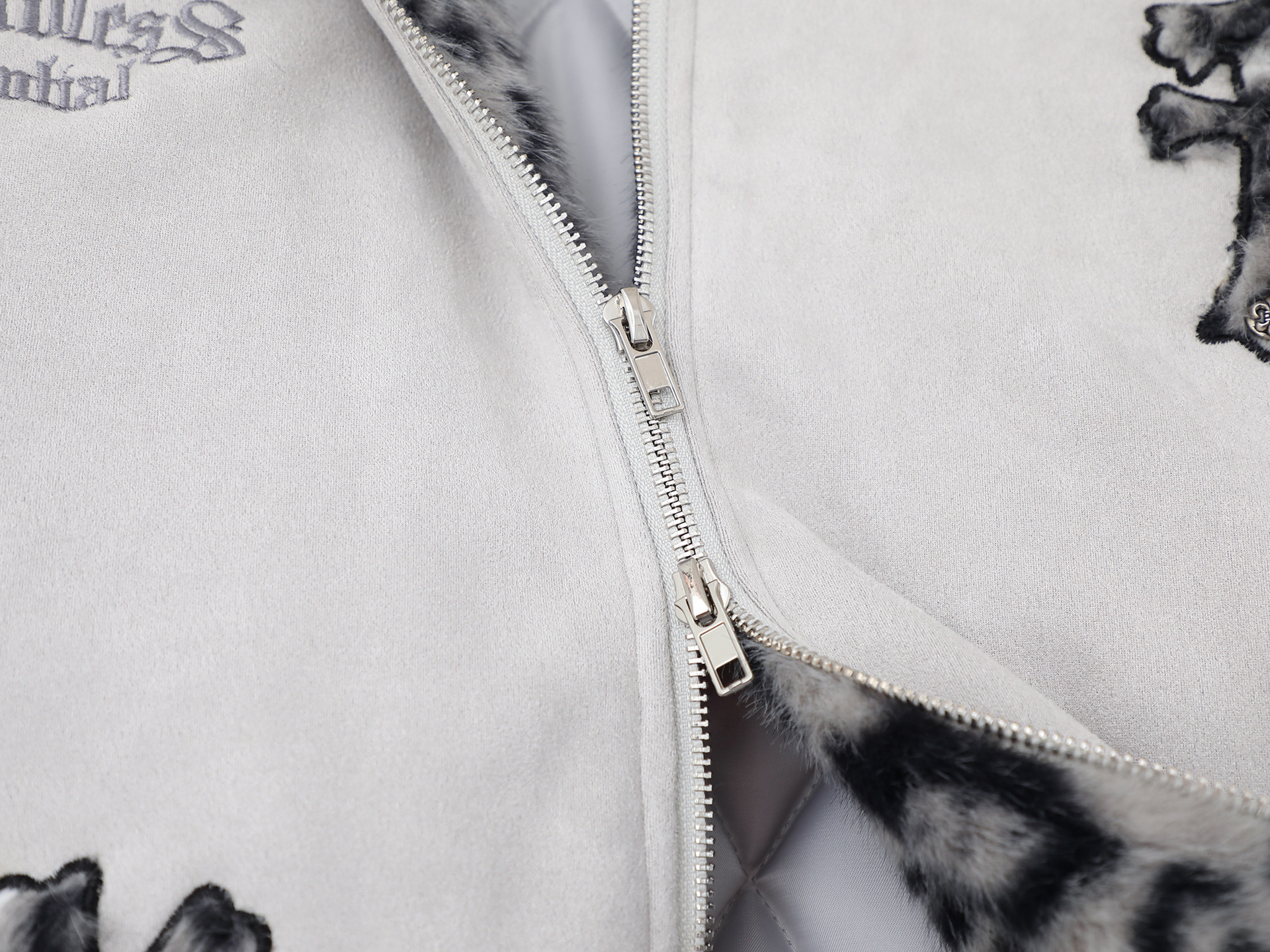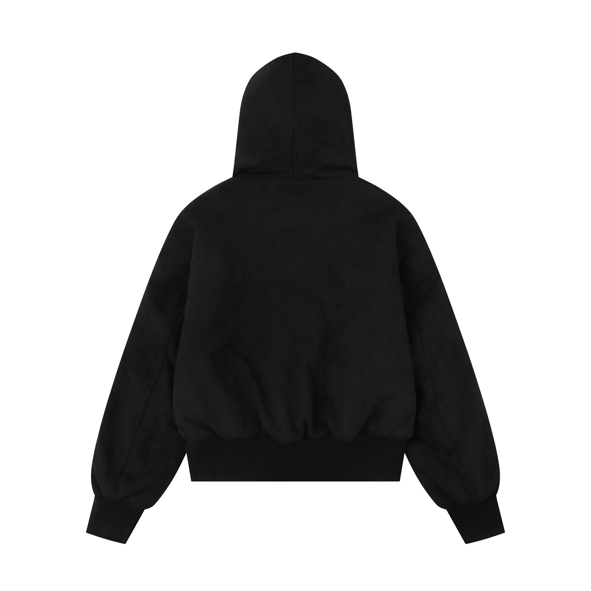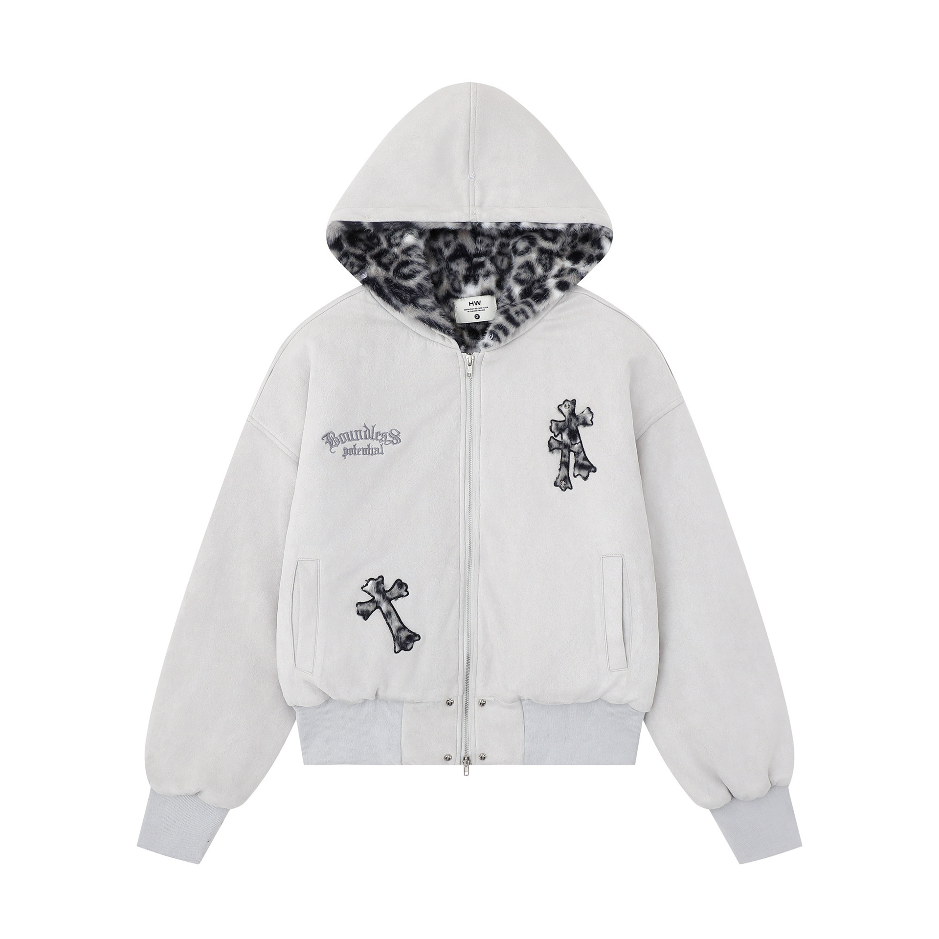 洗練されたクロスデザインが特徴のフェイクファーフードジャケット。上質なフェイクファー素材が暖かさと高級感を兼ね備え、季節の変わり目から冬まで活躍します。フード付きで顔周りをしっかり保温でき、モダンなデザインはカジュアルからきれいめまで幅広いスタイリングに対応。動物性素材を使用しないエシカルな選択肢として、ファッション性と機能性を両立させた一枚です。