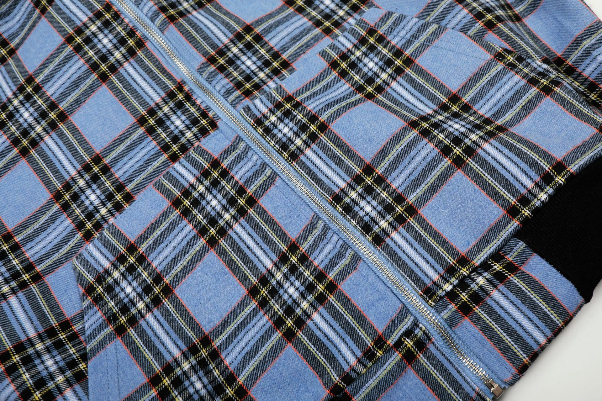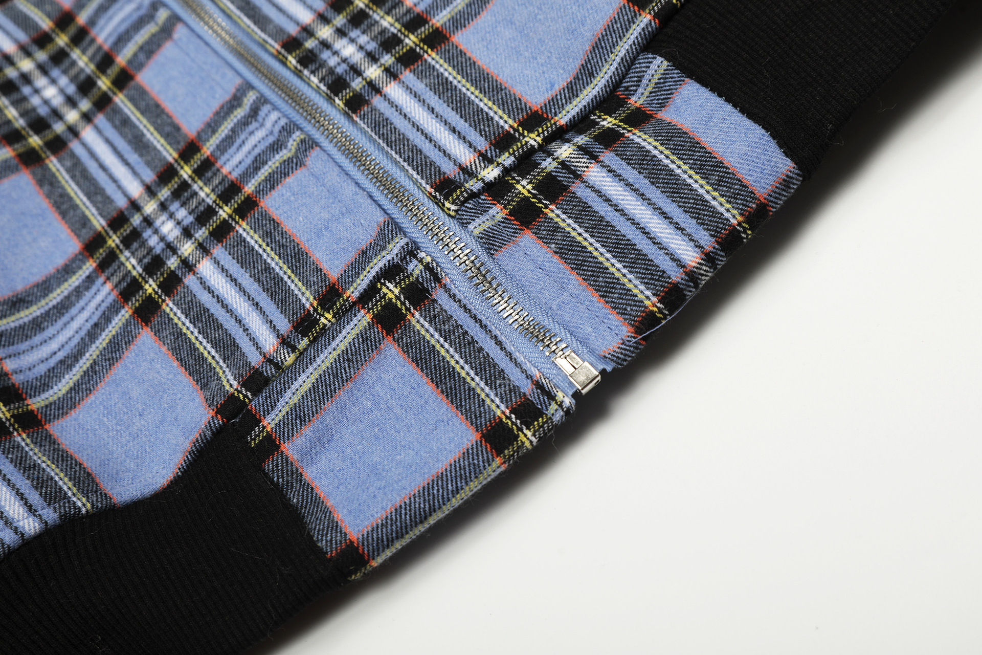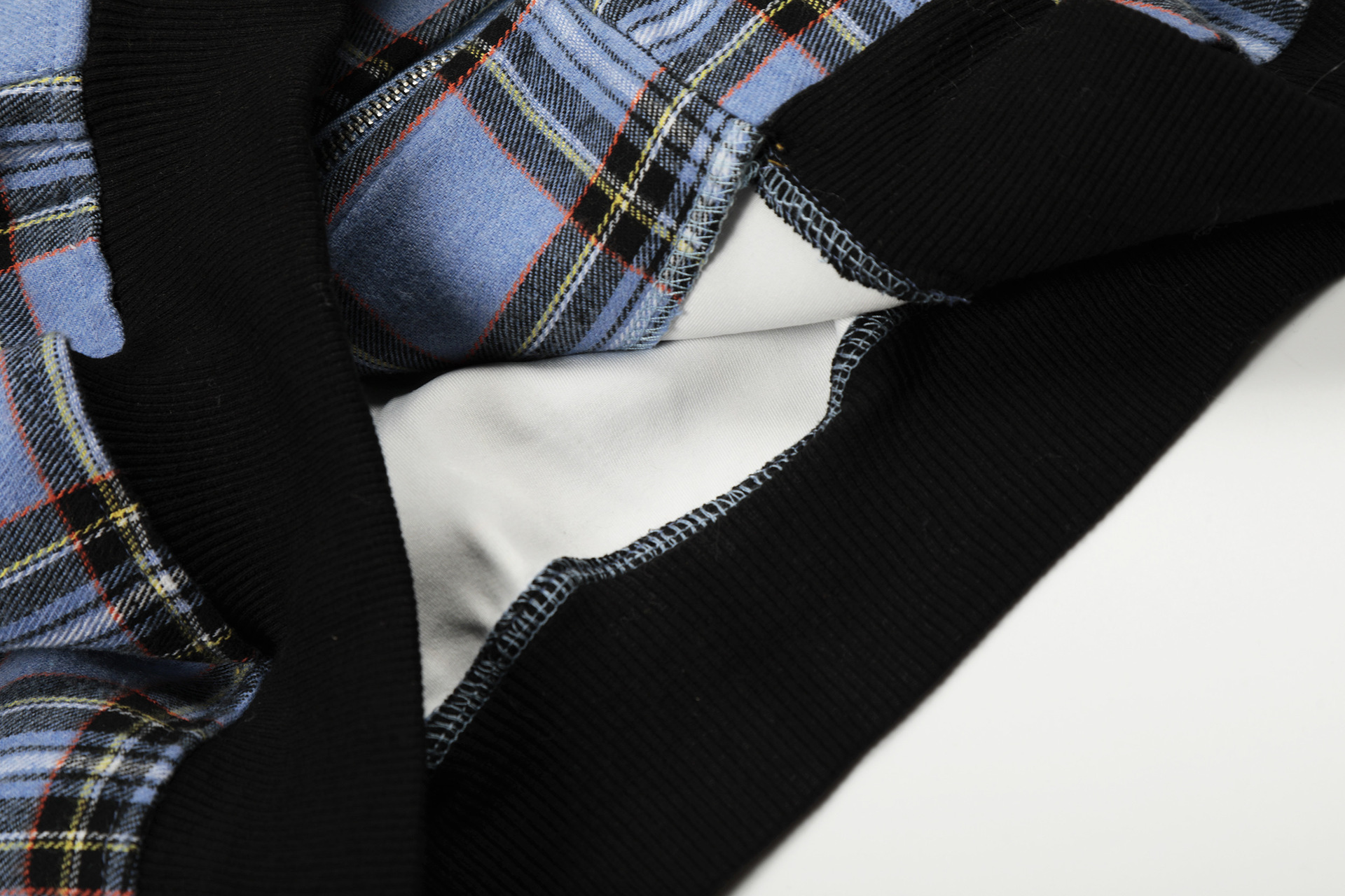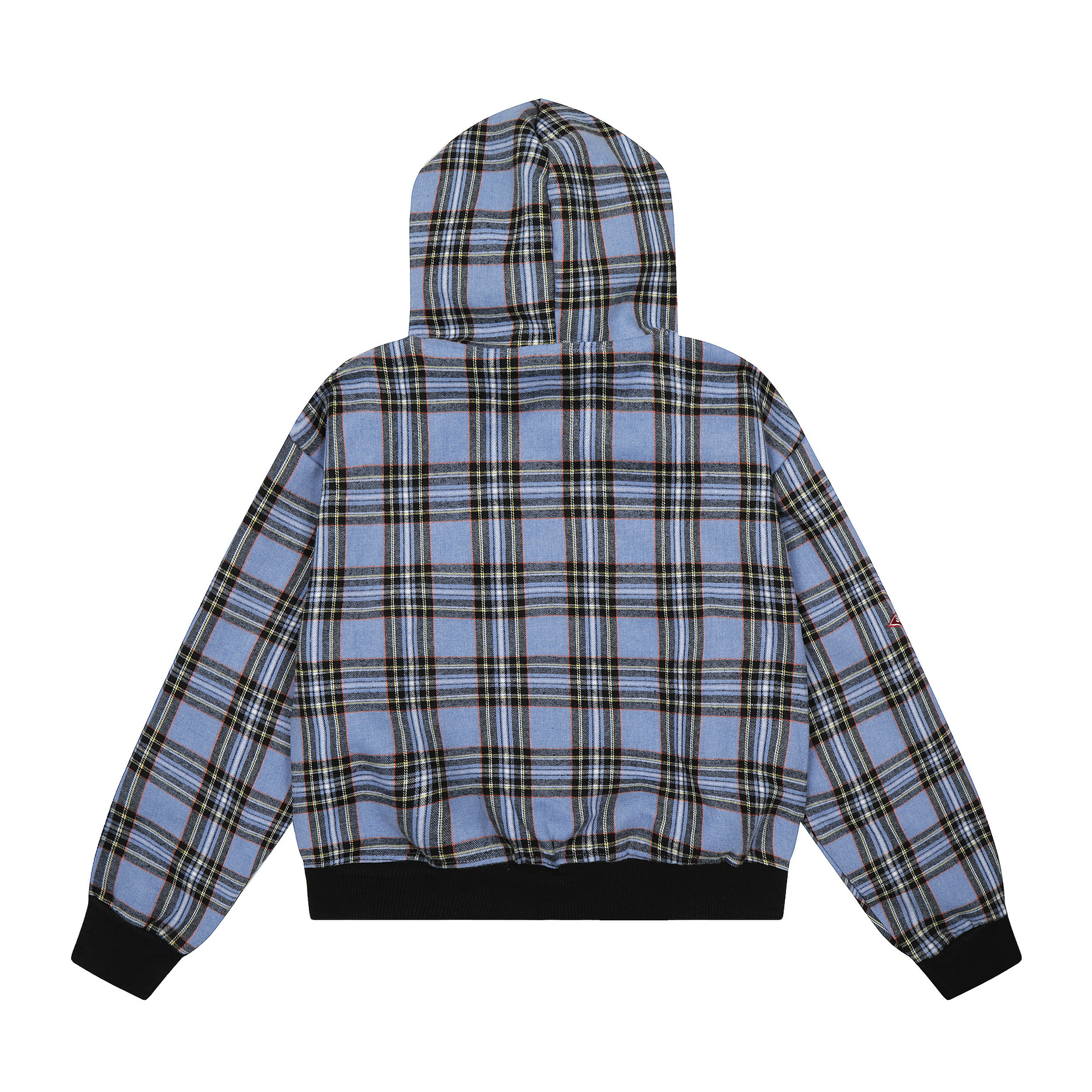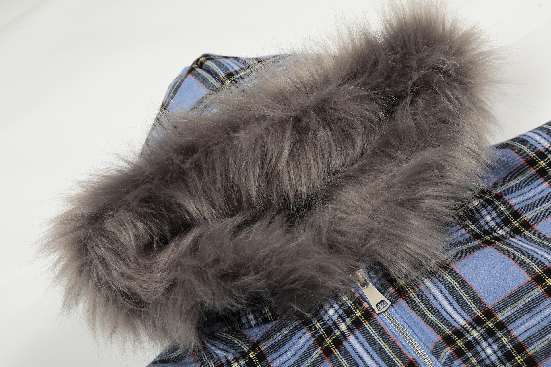 チェック柄ファーフードワンポイント刺繍ロゴジップアップジャケット/2color/cm0013