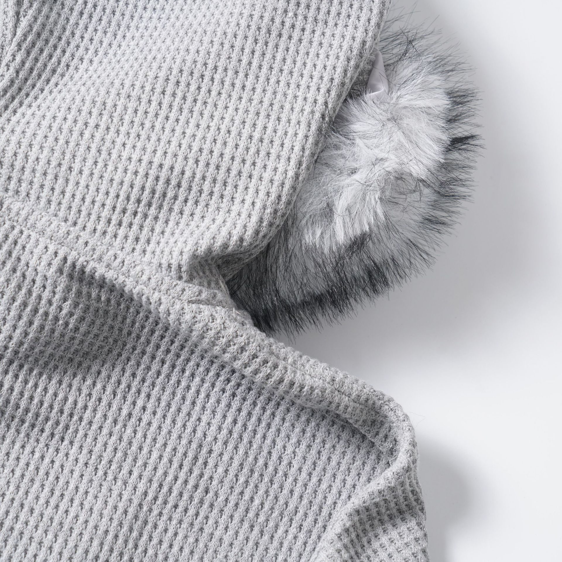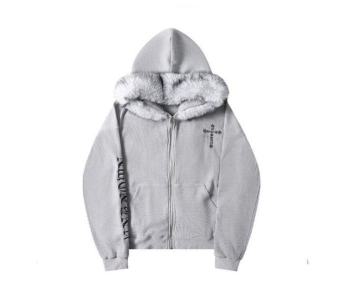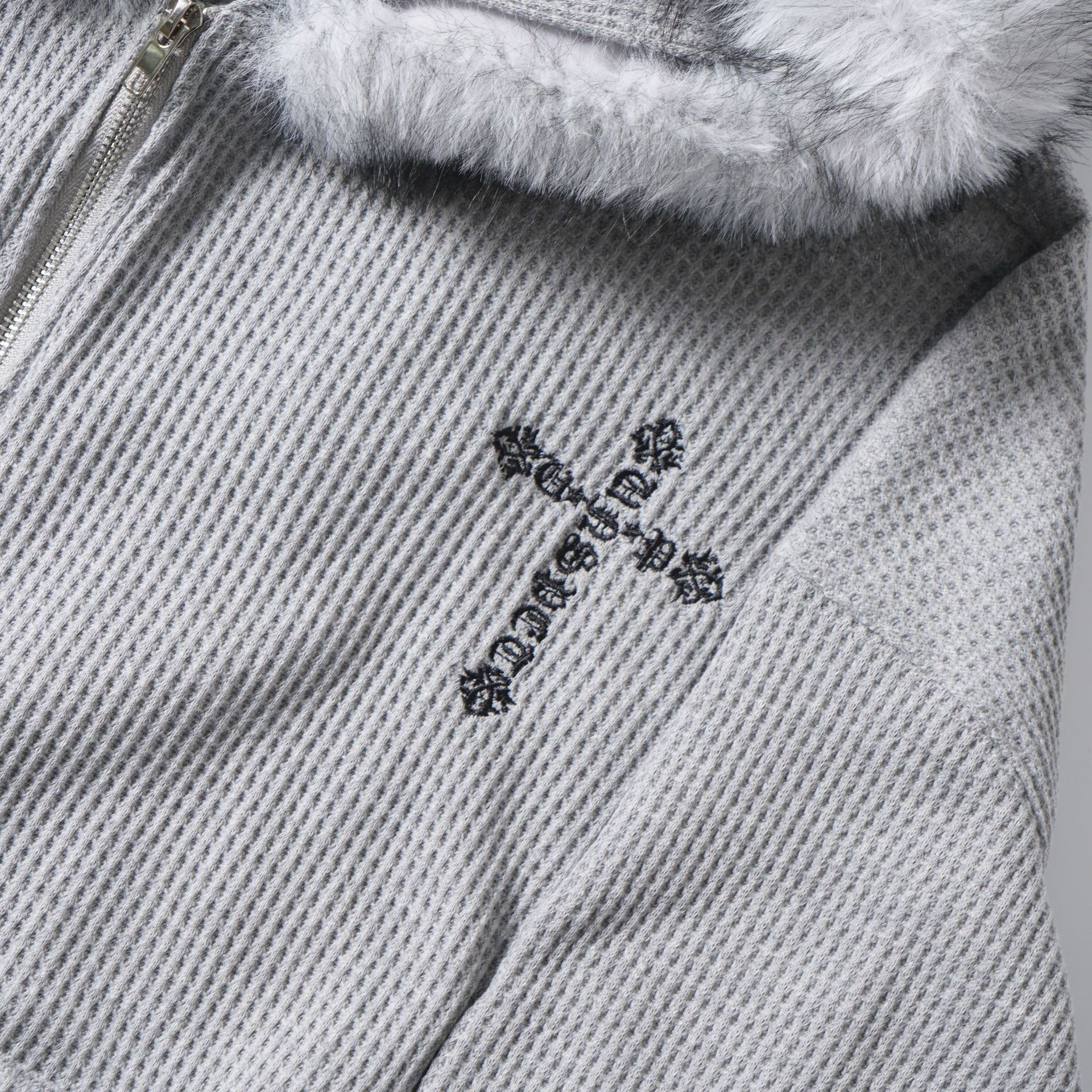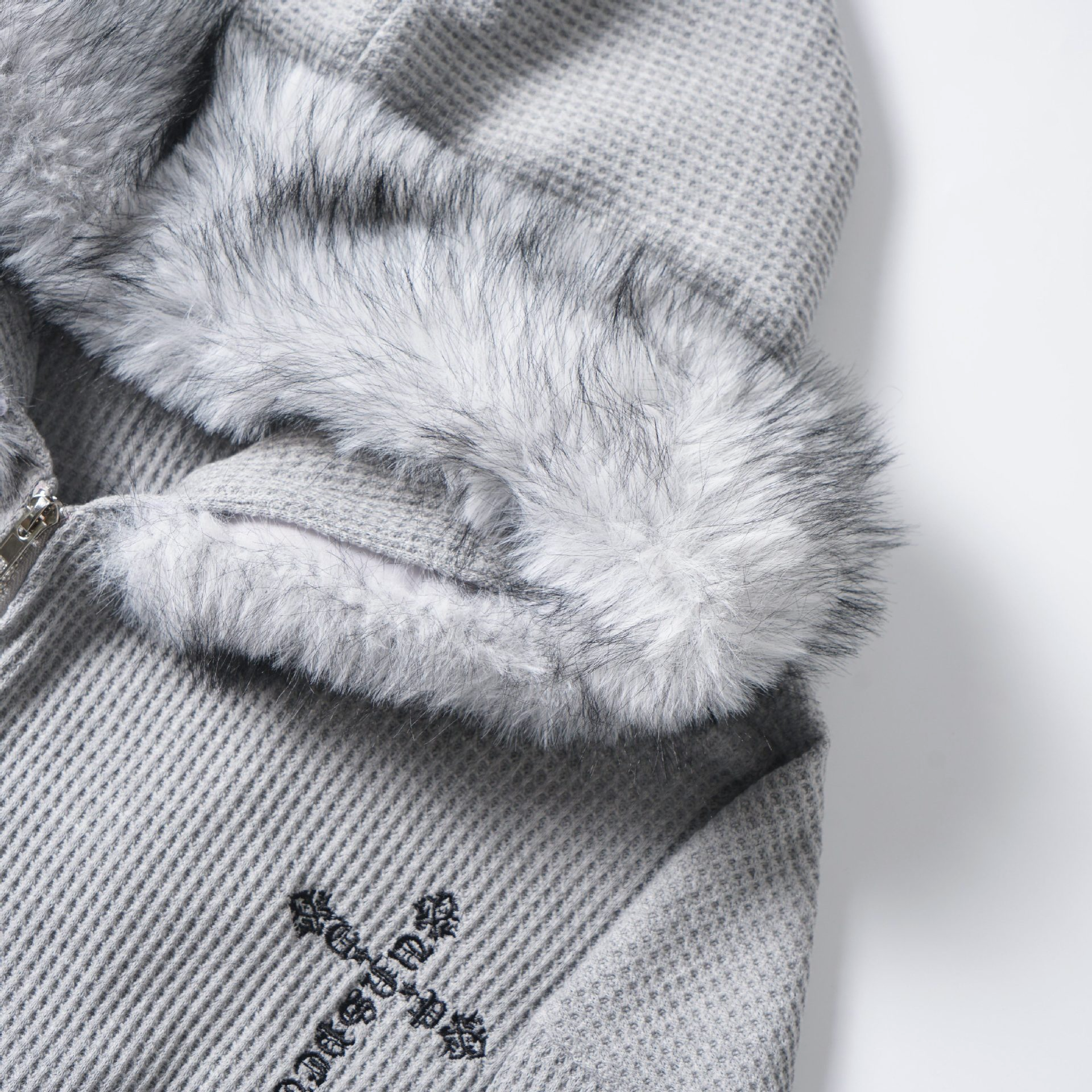 ファーフードワッフルクロスポイントジップアップパーカー/cm0016