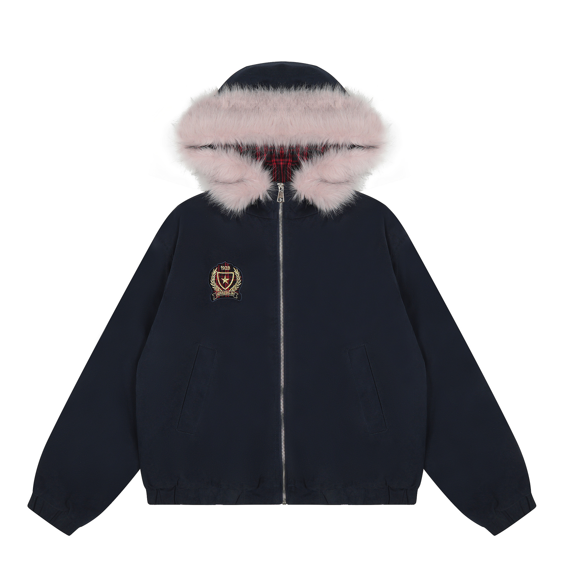 フェイクファーフードワンポイントロゴジャケット cm0020