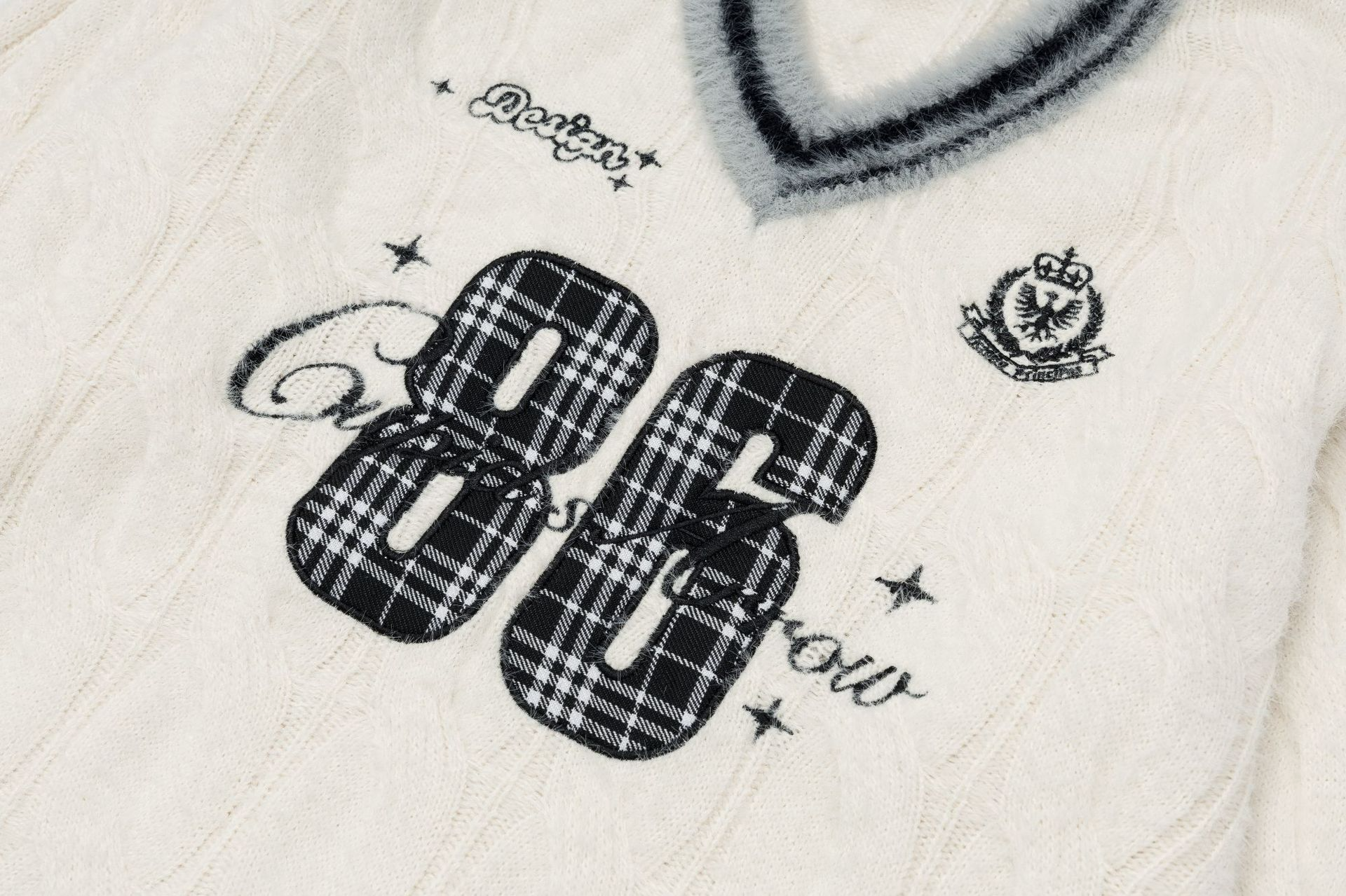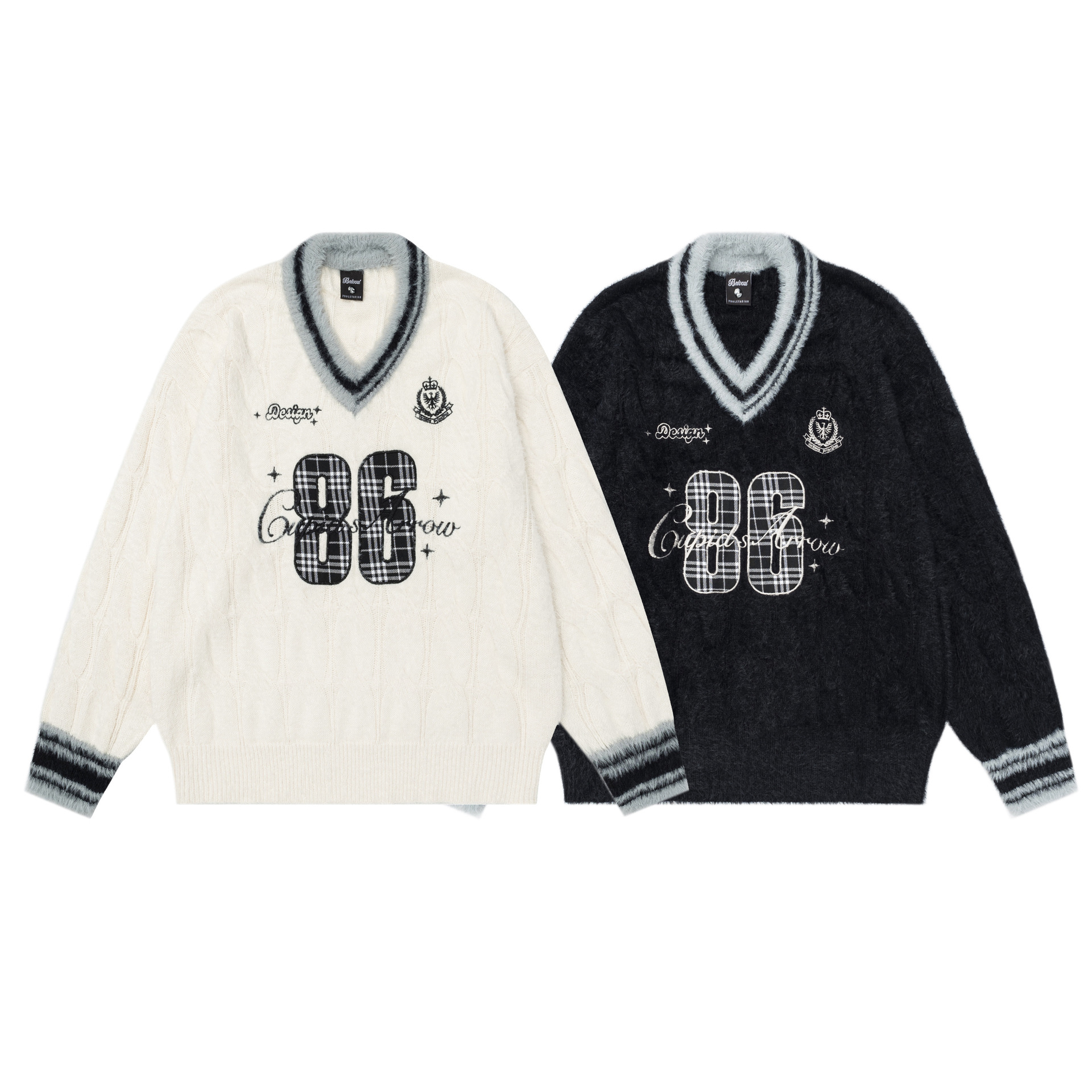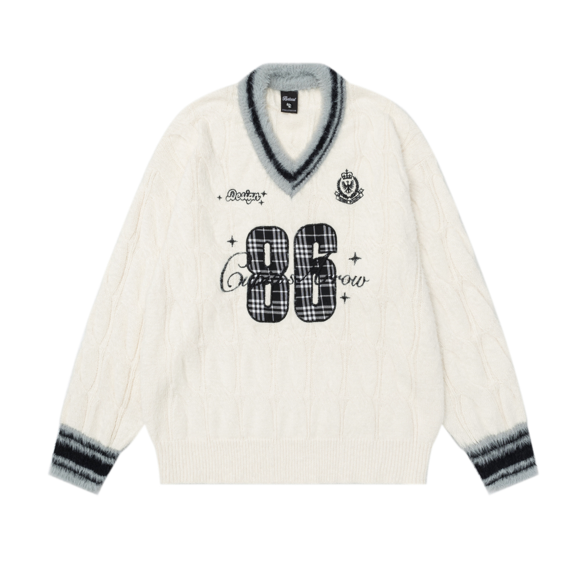フロントナンバーデザインVネックラインニット2color/cm0026
