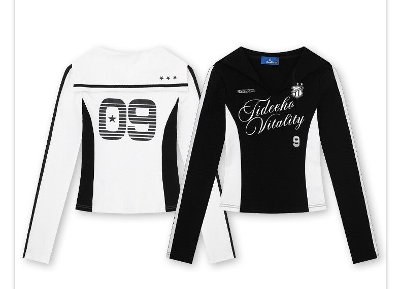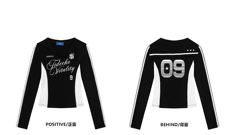 セーラーカラースポーティーナンバープリントカットソー/2color/cm0039