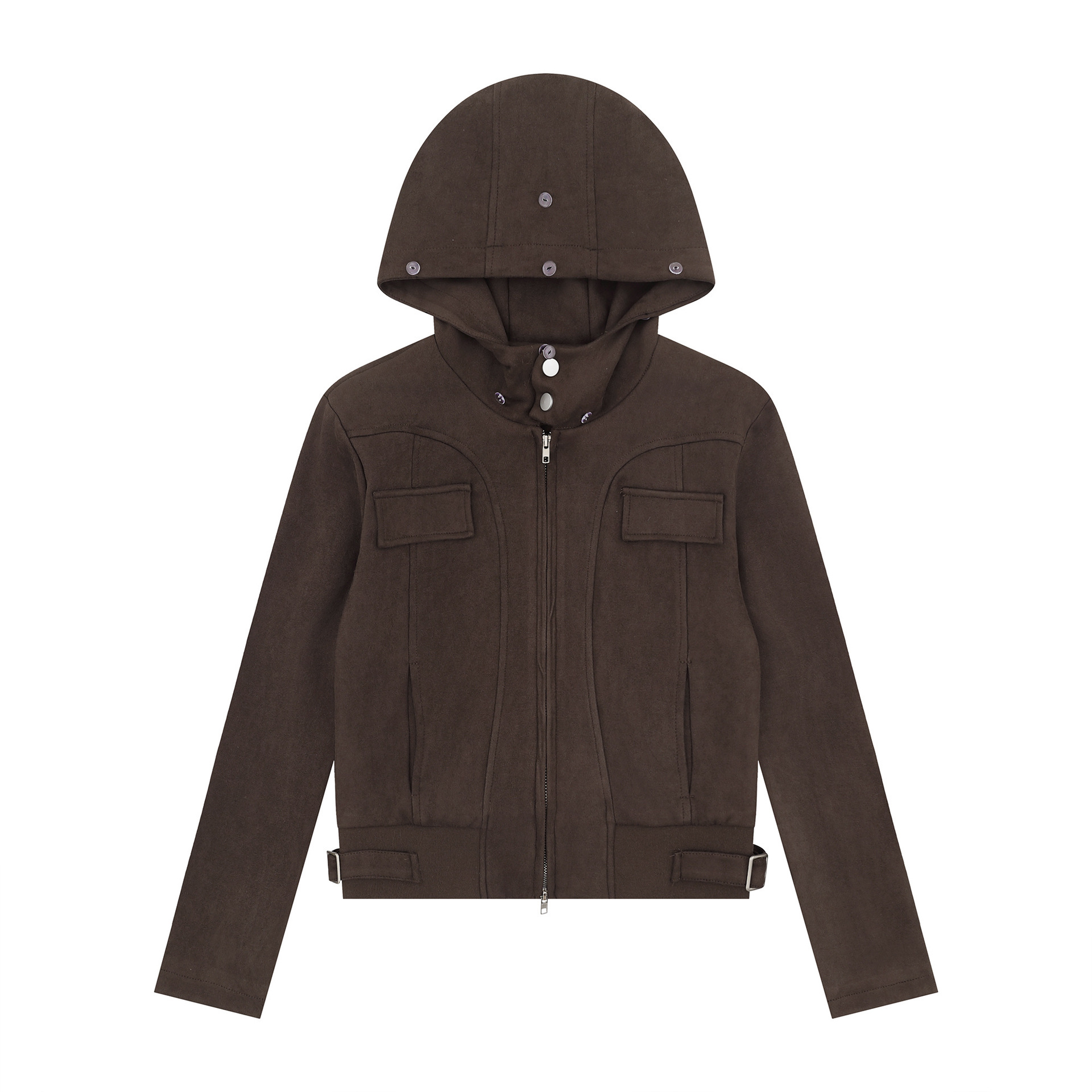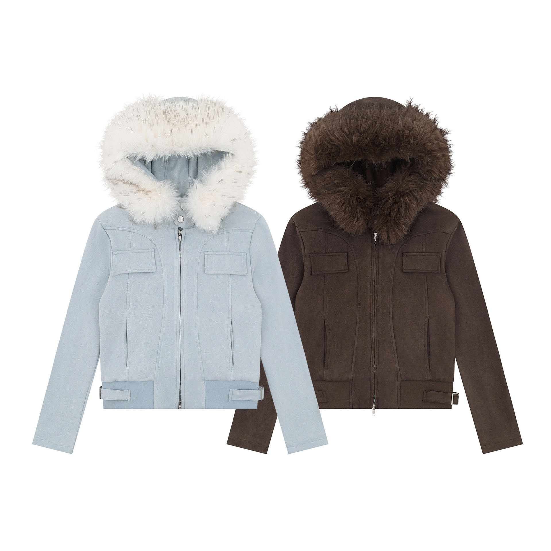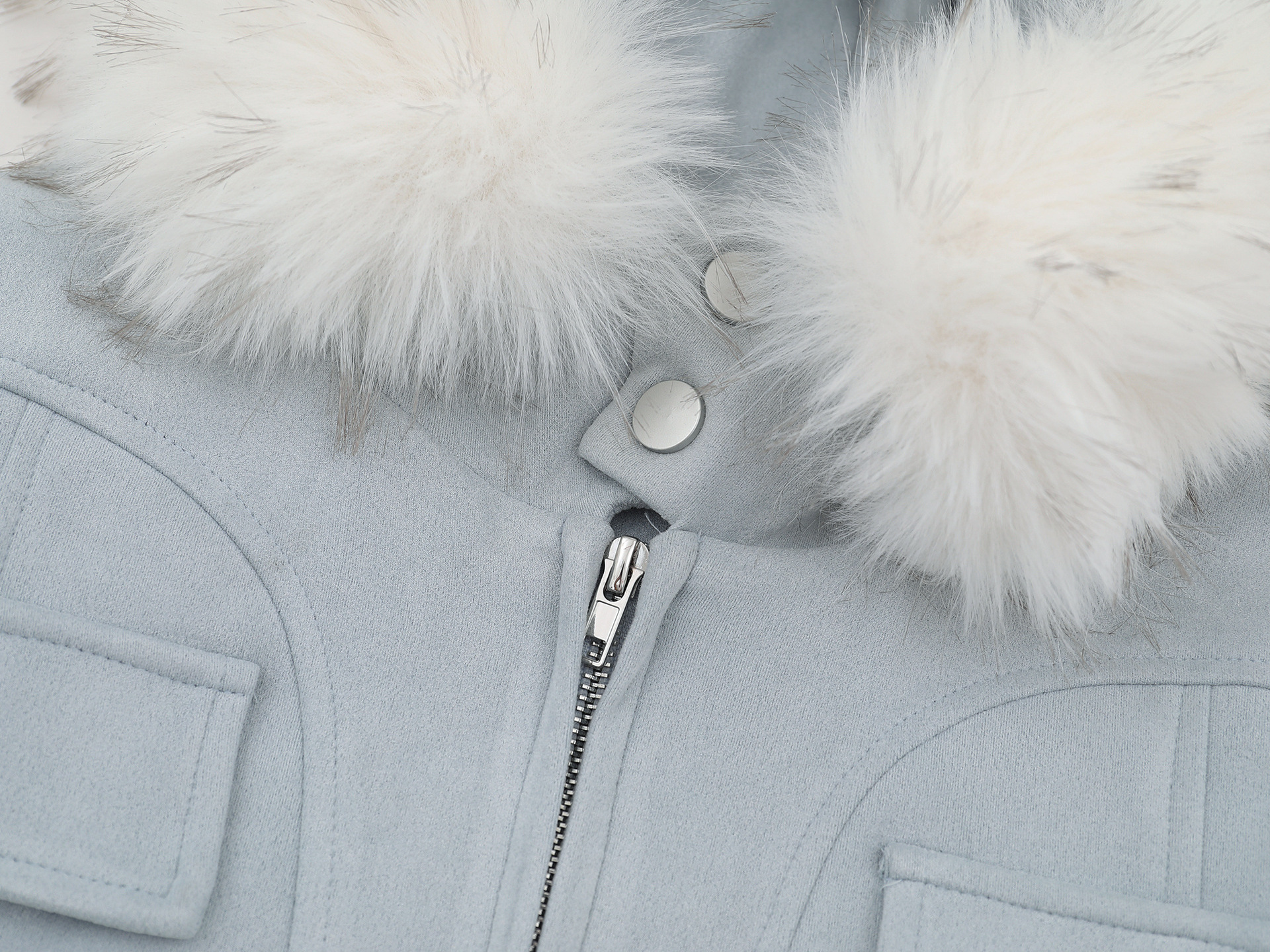 取り外しファー付きポケットデザインジップアップジャケット/2color/cm0043