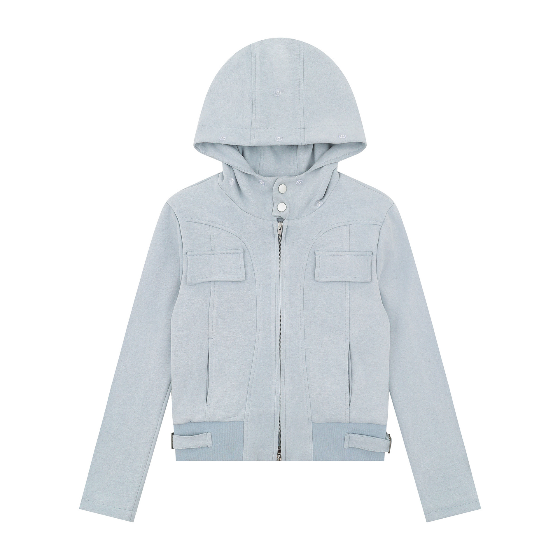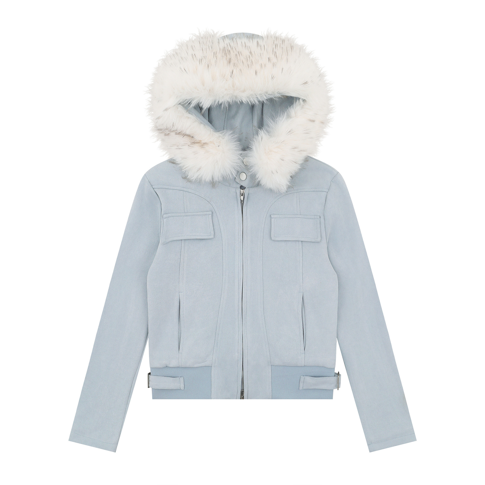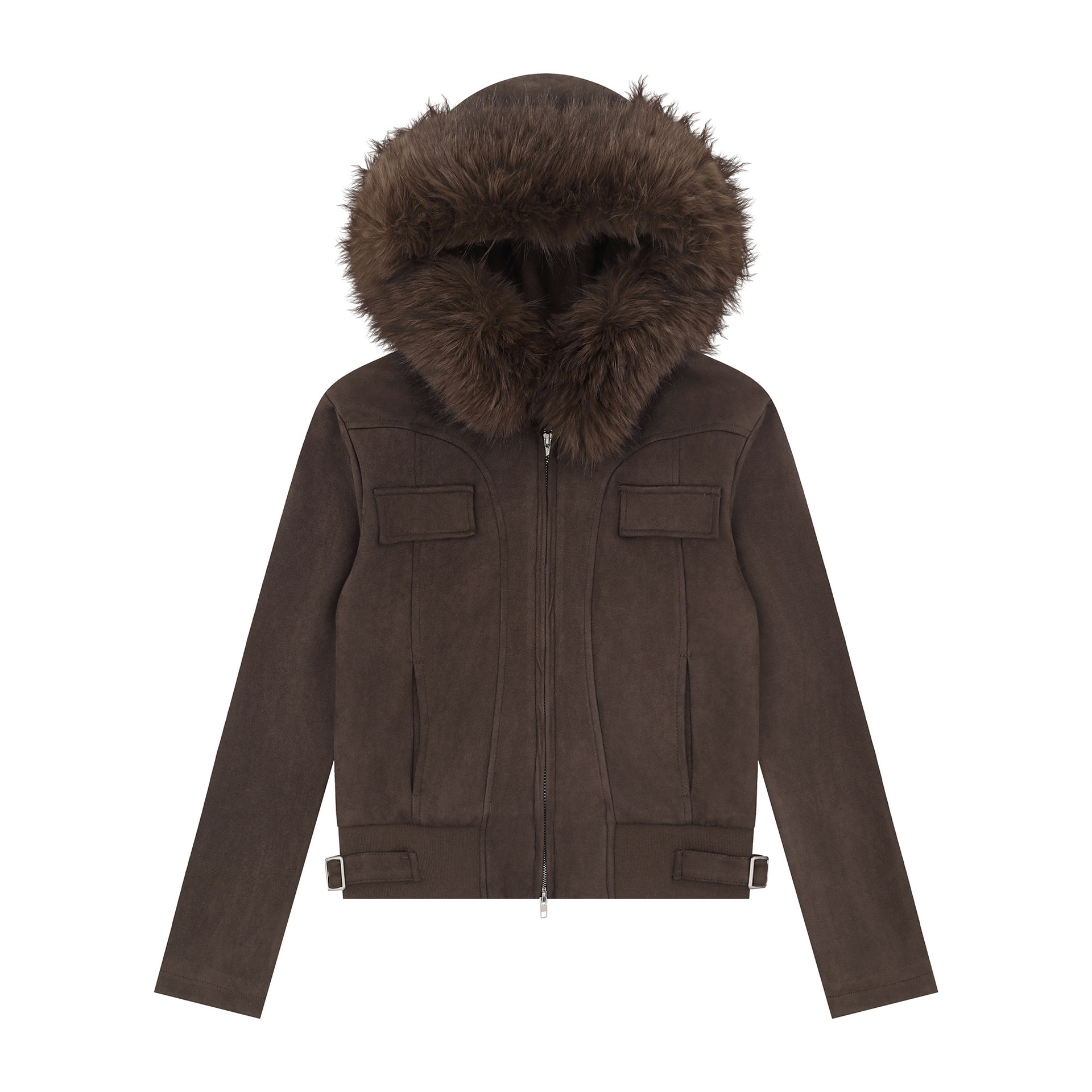 取り外しファー付きポケットデザインジップアップジャケット/2color/cm0043
