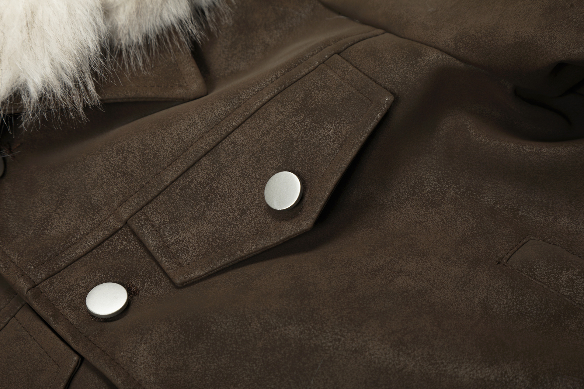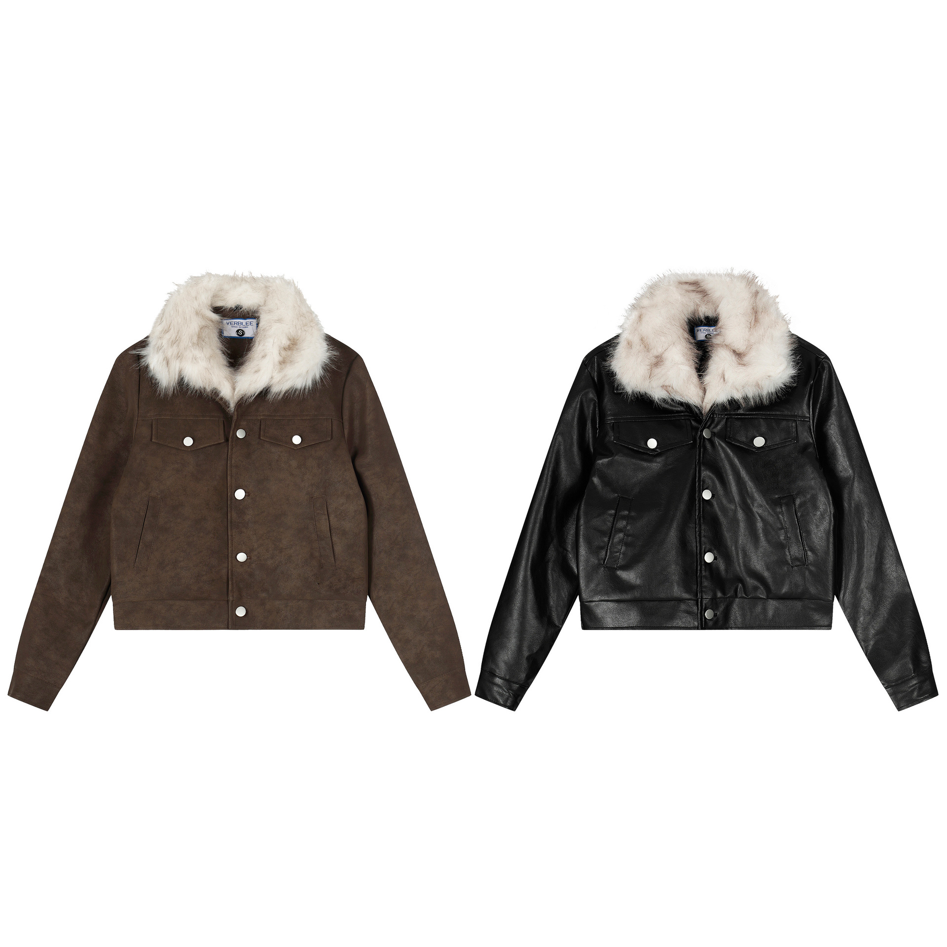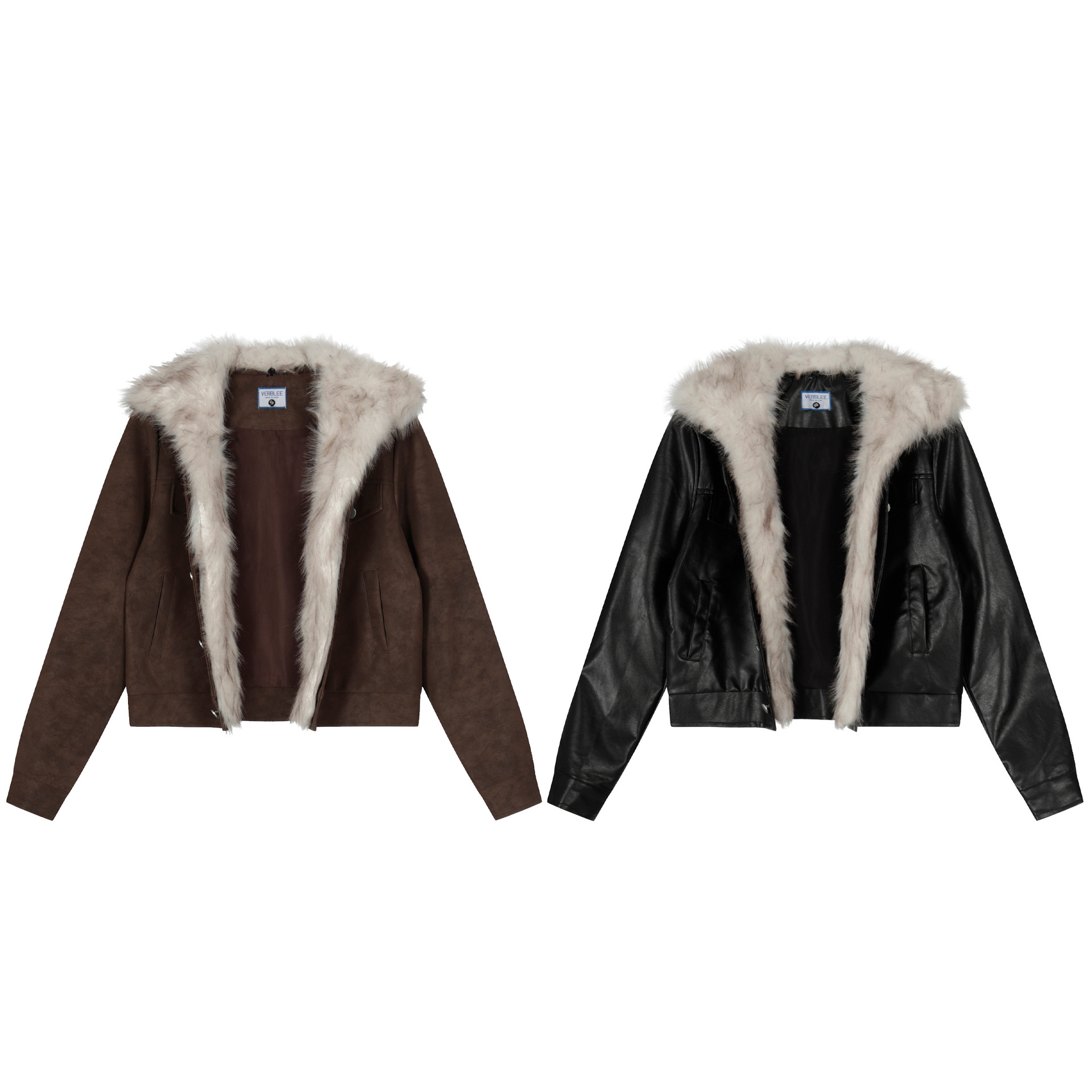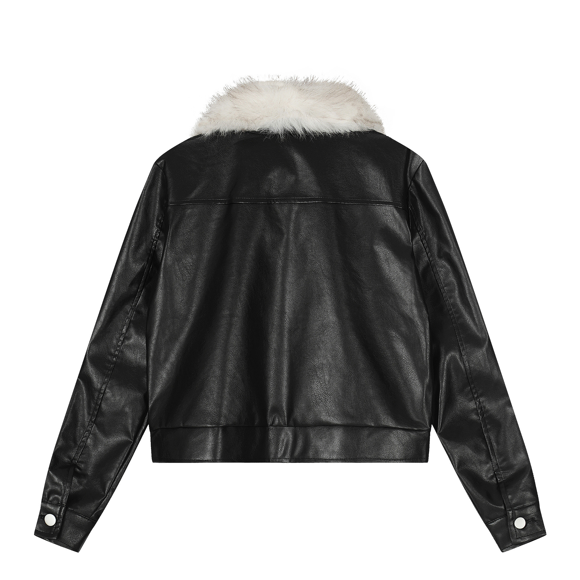 ファー付きフェイクレザーダブルポケットデザインジャケット/2color/cm0044