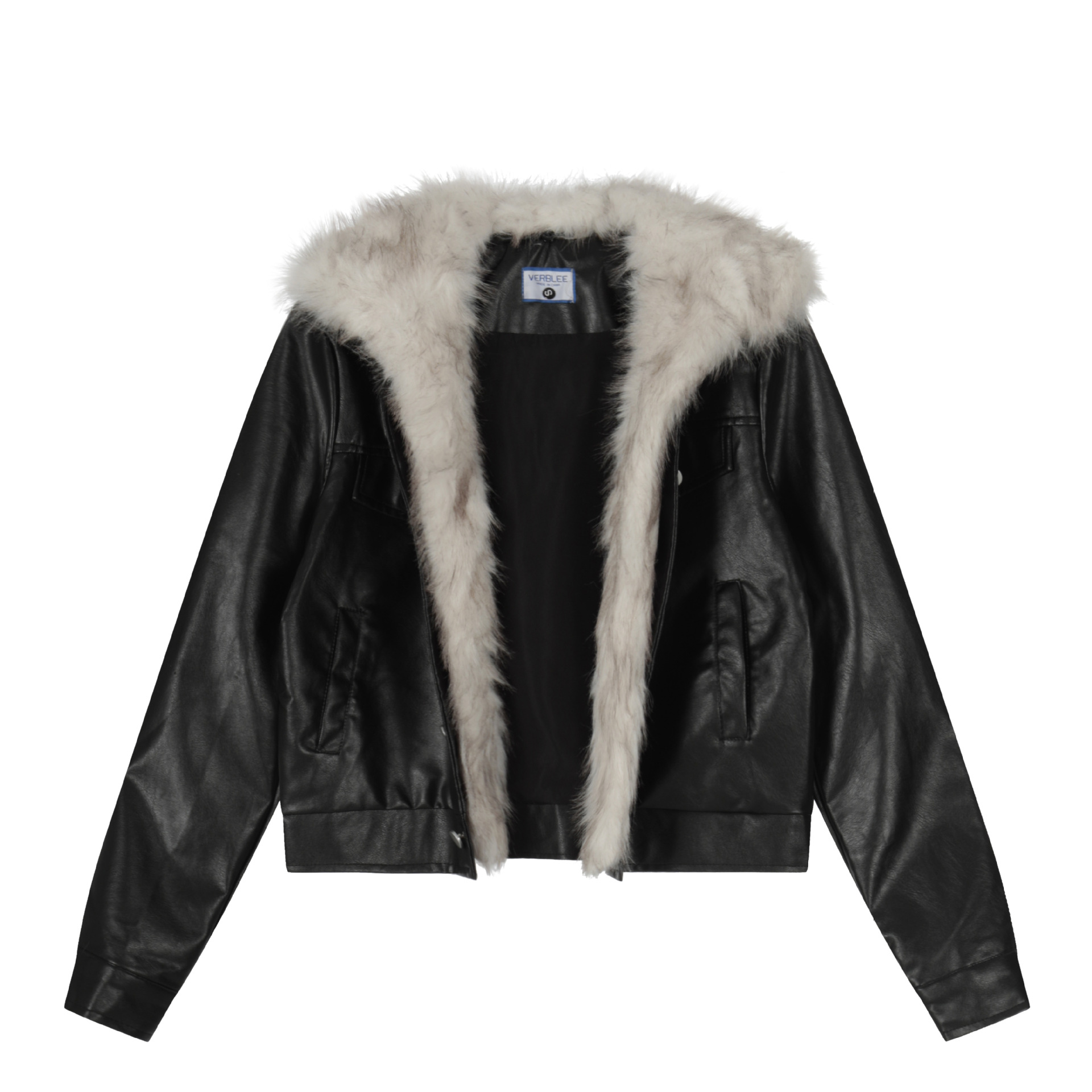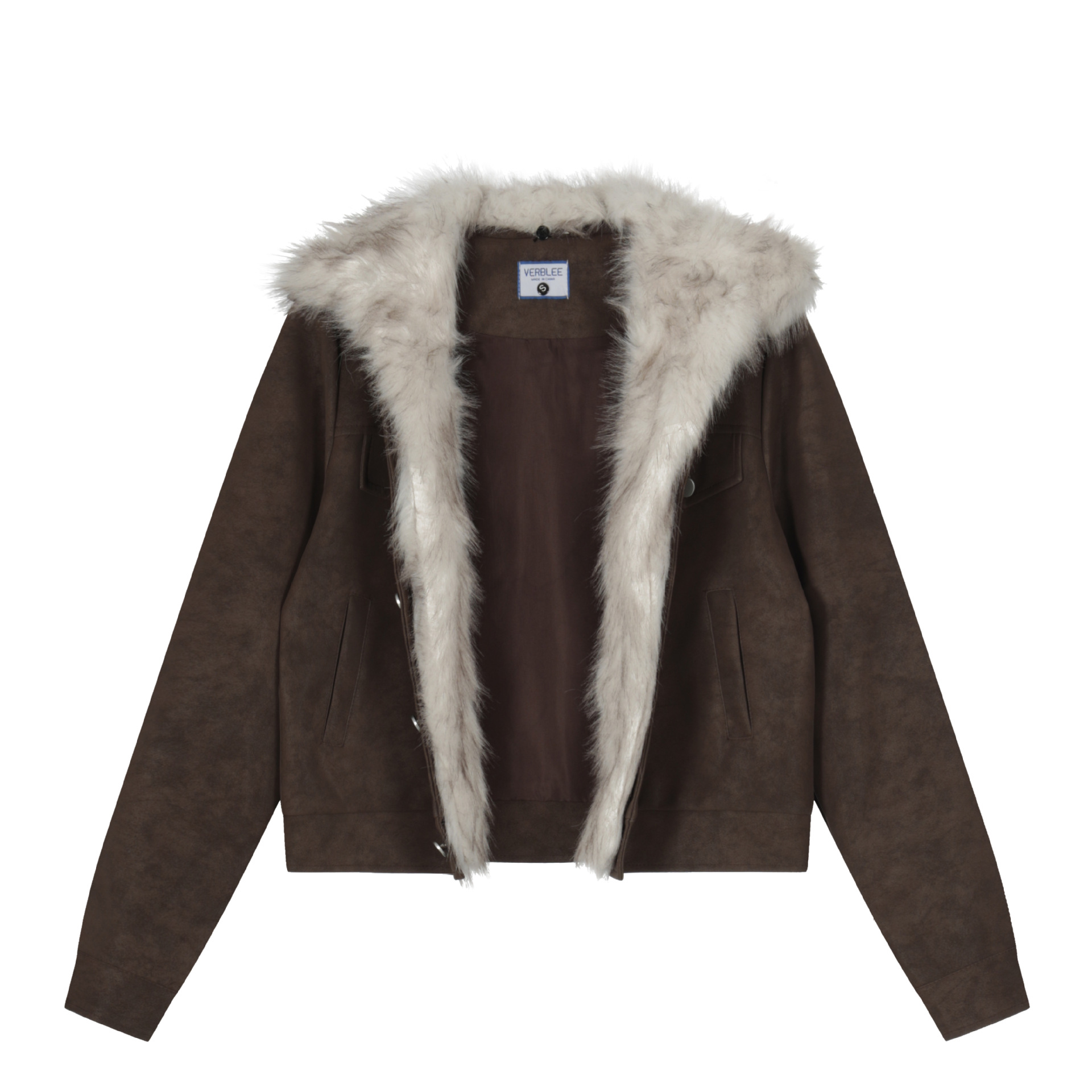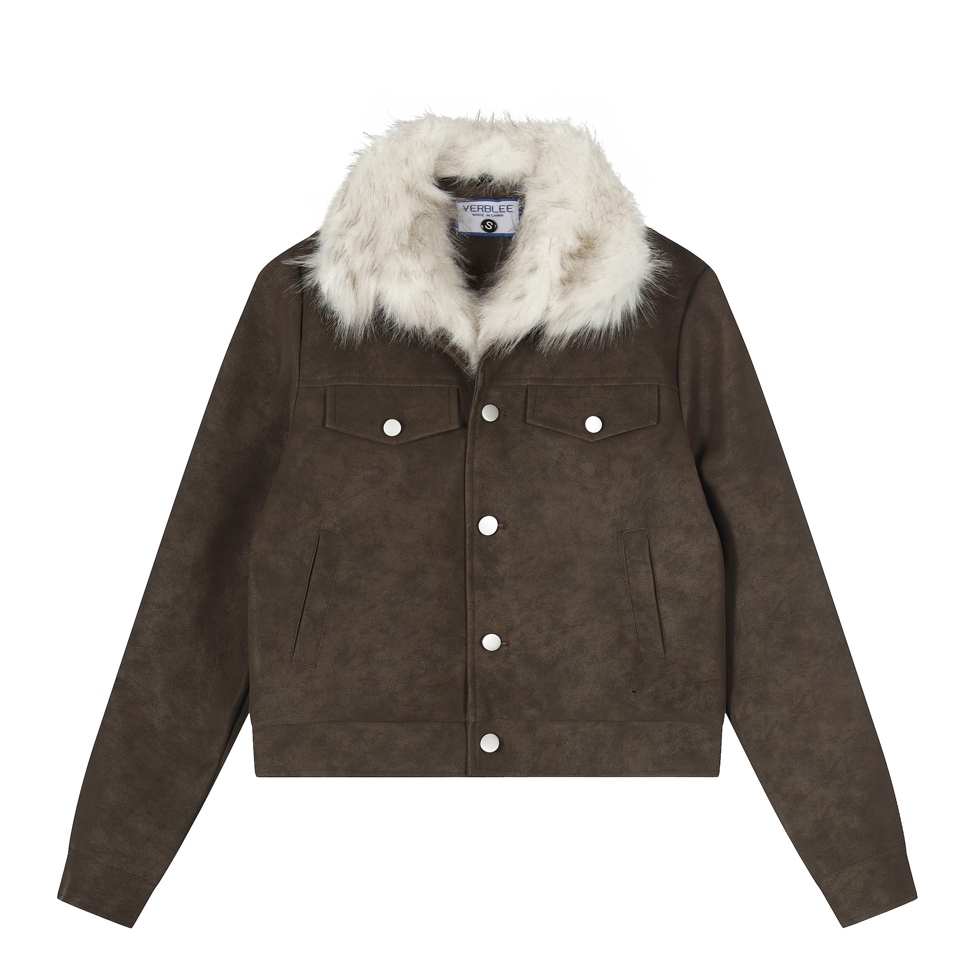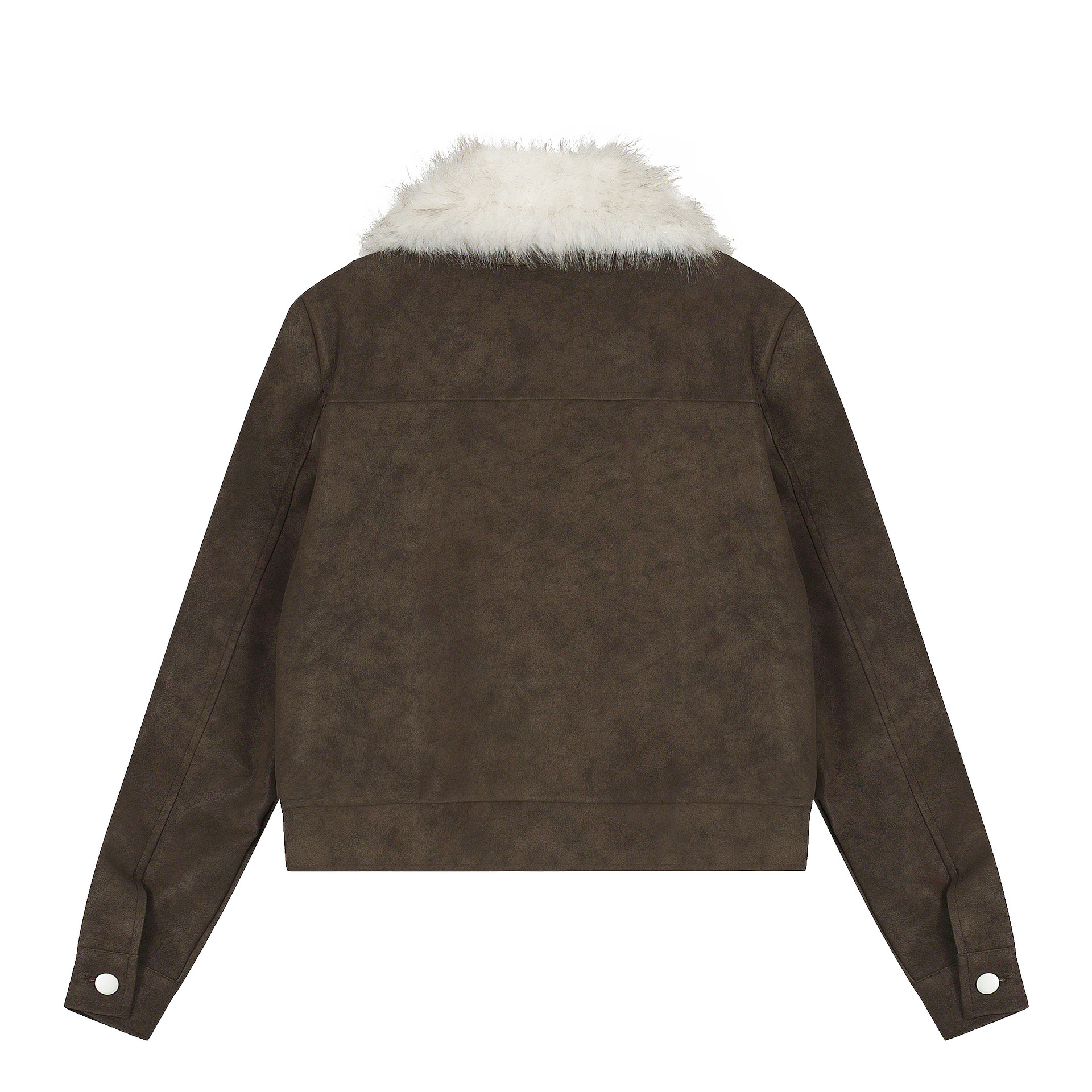 ファー付きフェイクレザーダブルポケットデザインジャケット/2color/cm0044