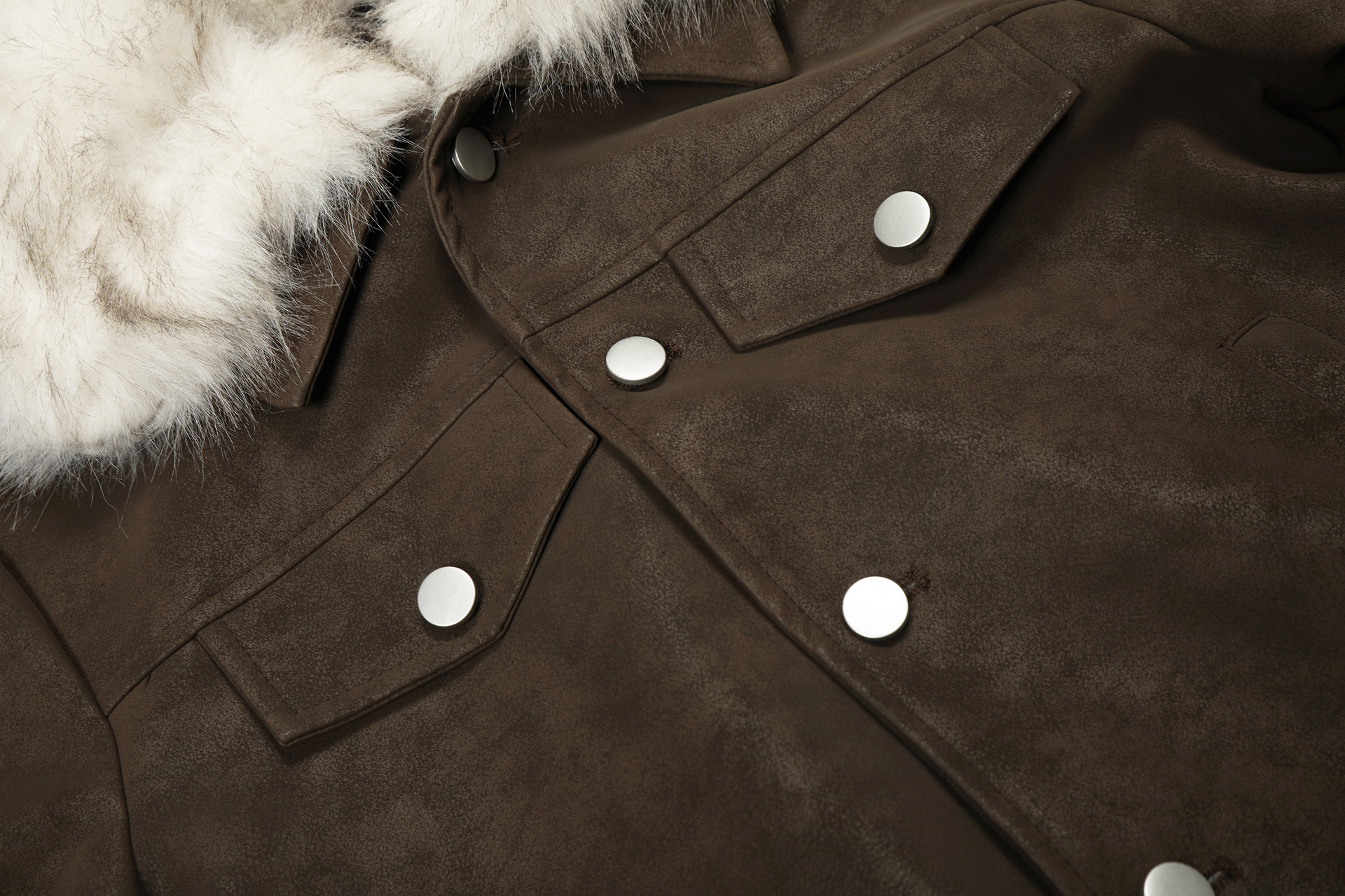 おしゃれを楽しむ女性にぴったりなファー付きフェイクレザーダブルポケットデザインジャケットは、デイリーコーデにクールさと温かみをプラスするアイテムです!ふわふわのファーとフェイクレザーのコンビネーションが、秋冬のスタイルに洗練された印象を与えます。このジャケットを取り入れて、心弾むスタイルをぜひ楽しんでください。
