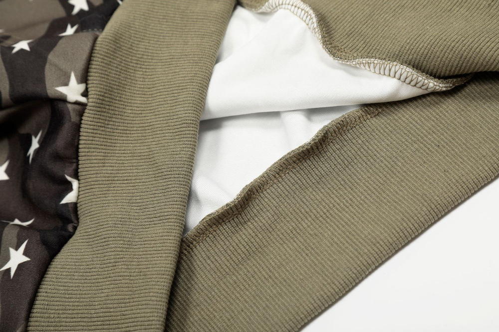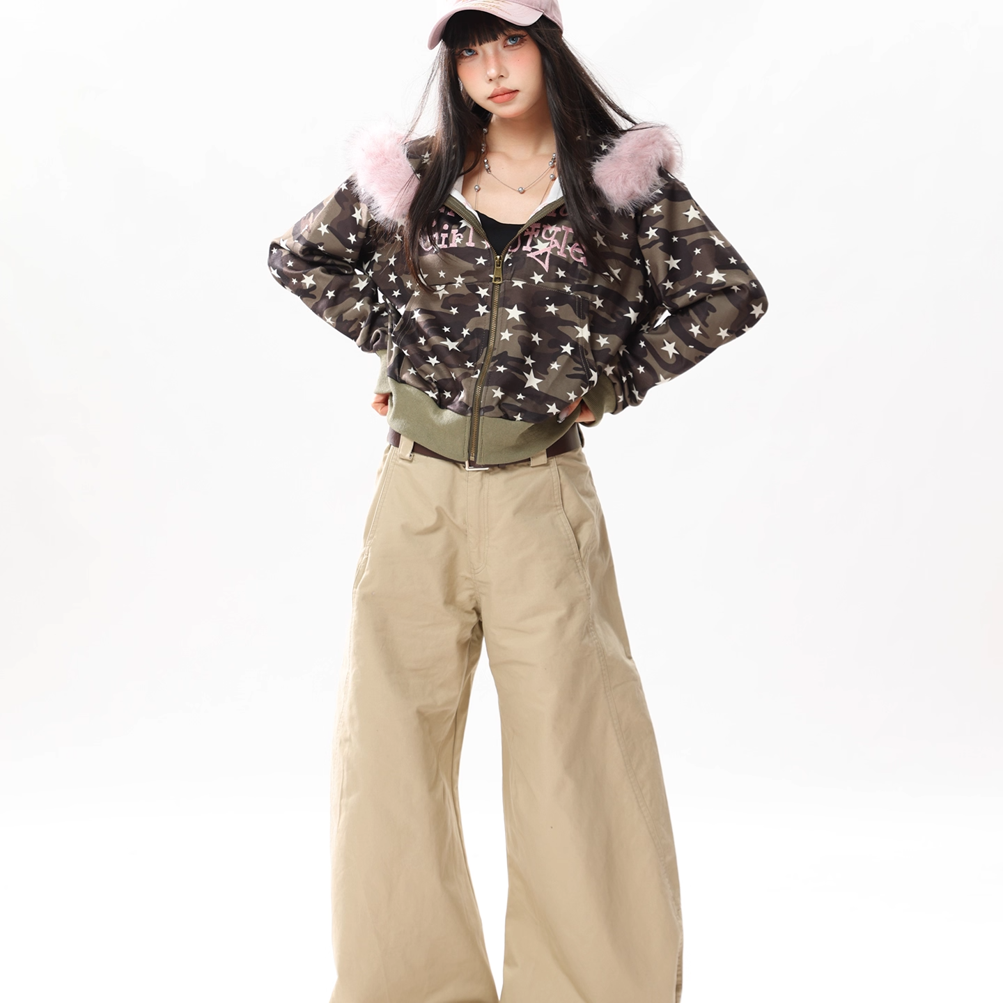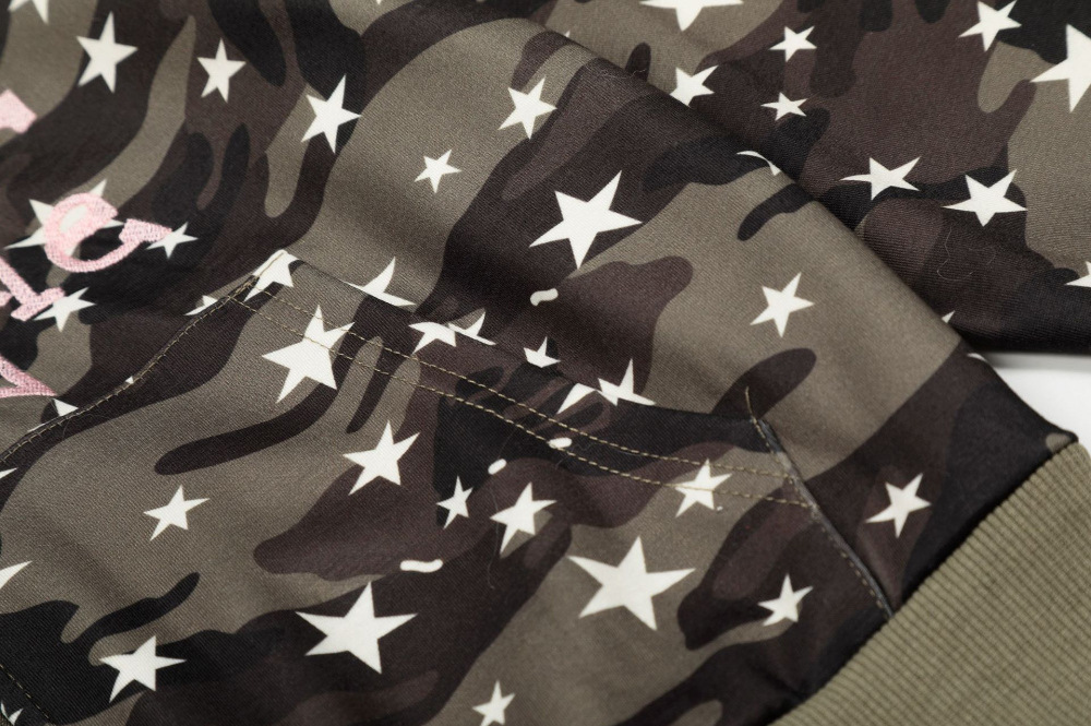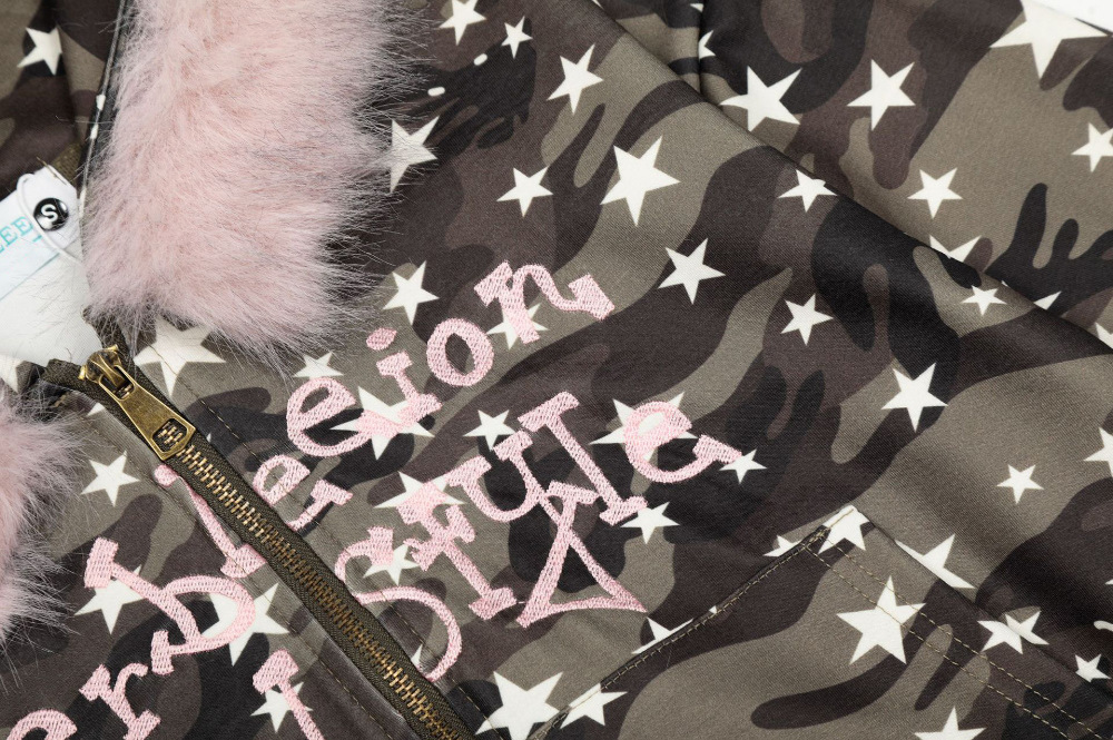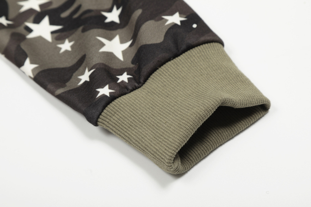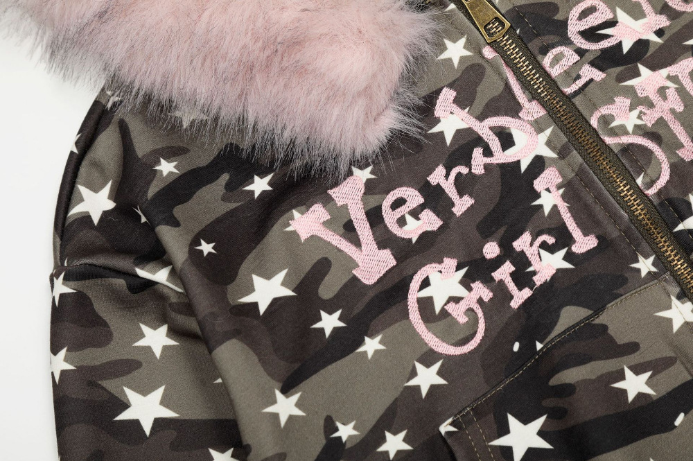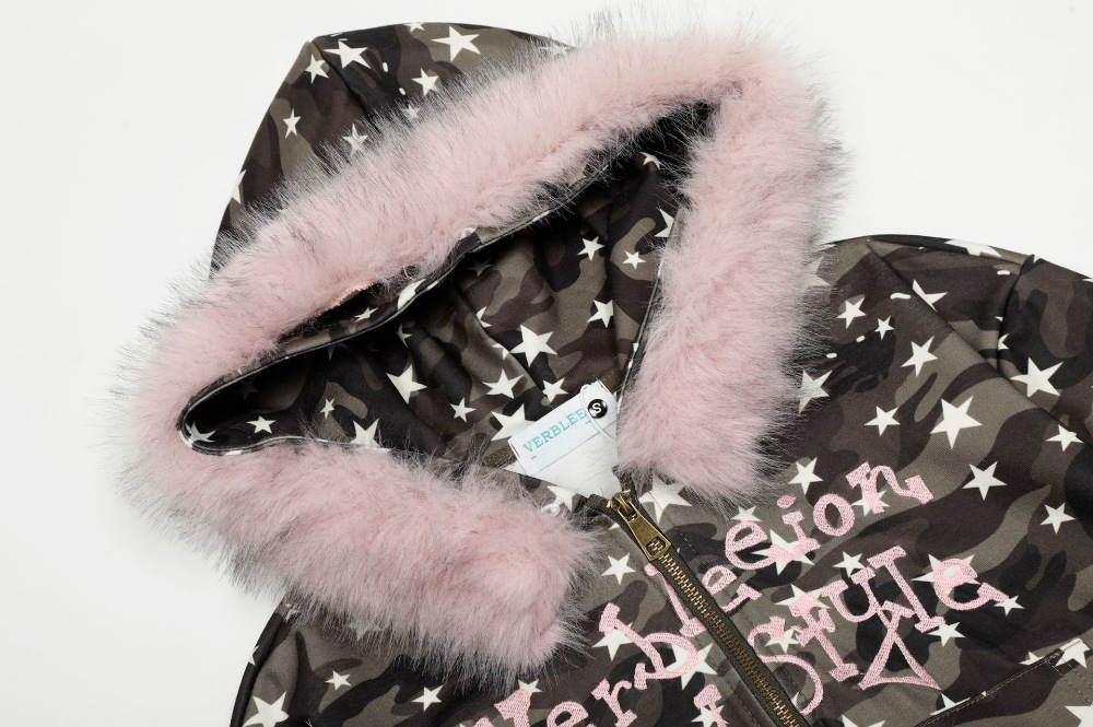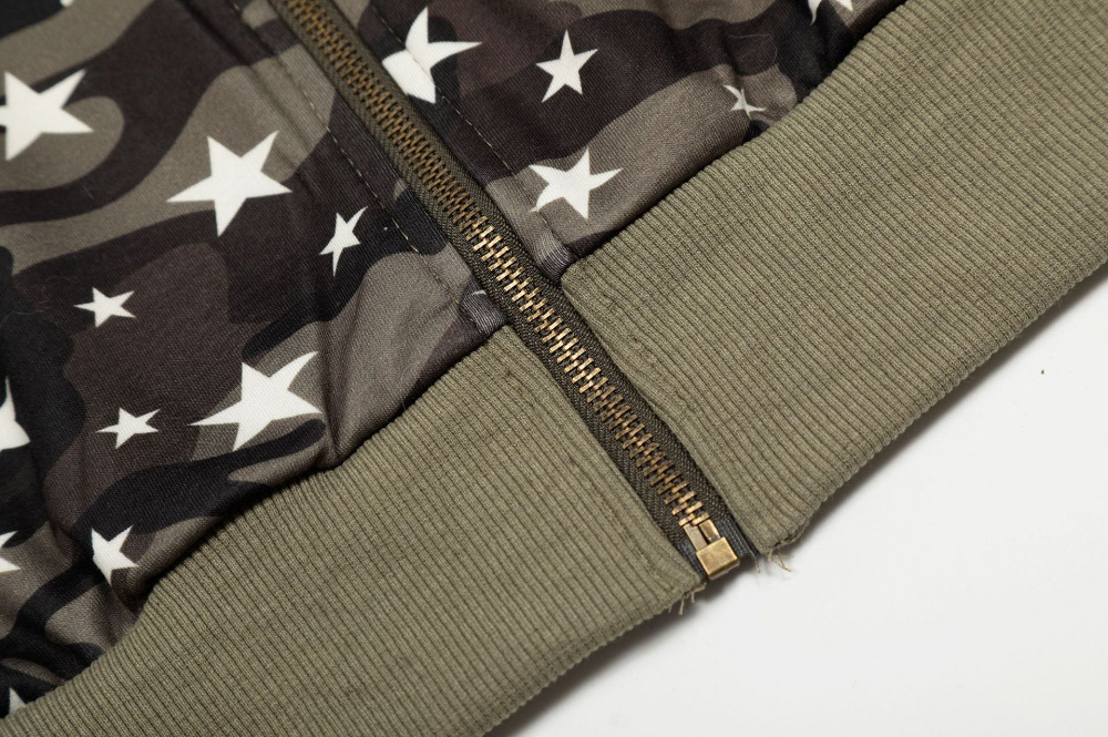 ファー付き迷彩スタープリントジップアップフードパーカー/cm0049