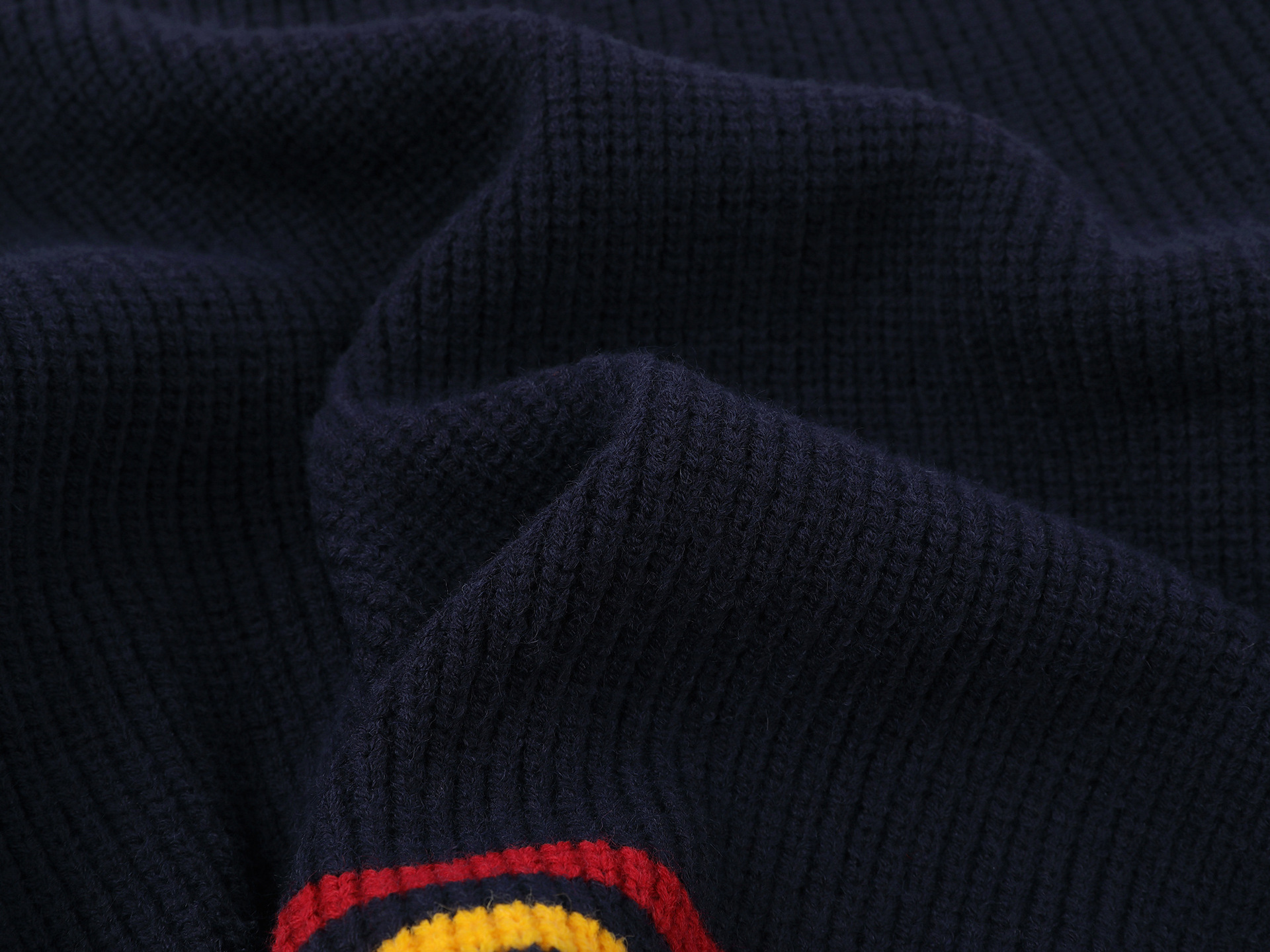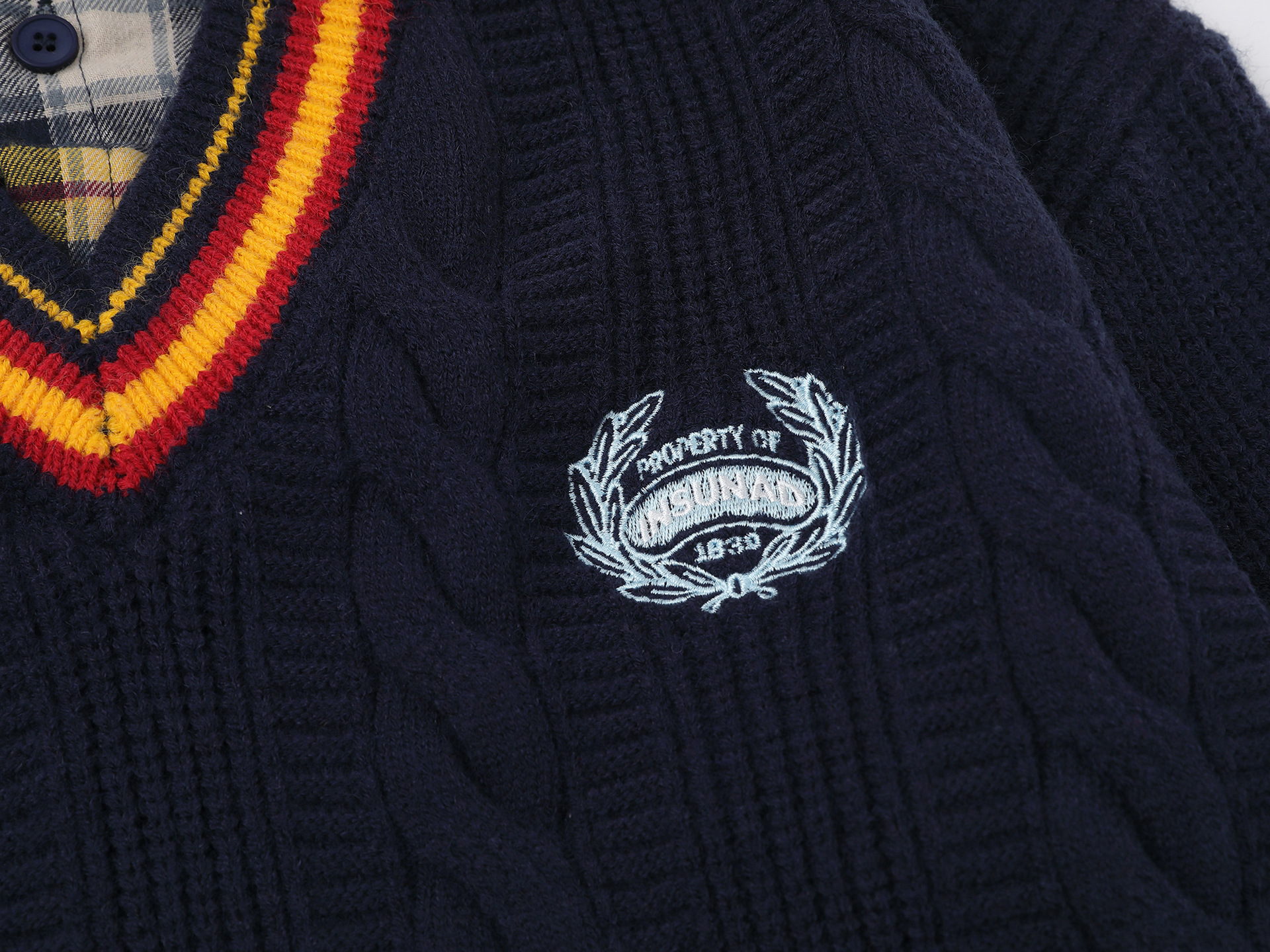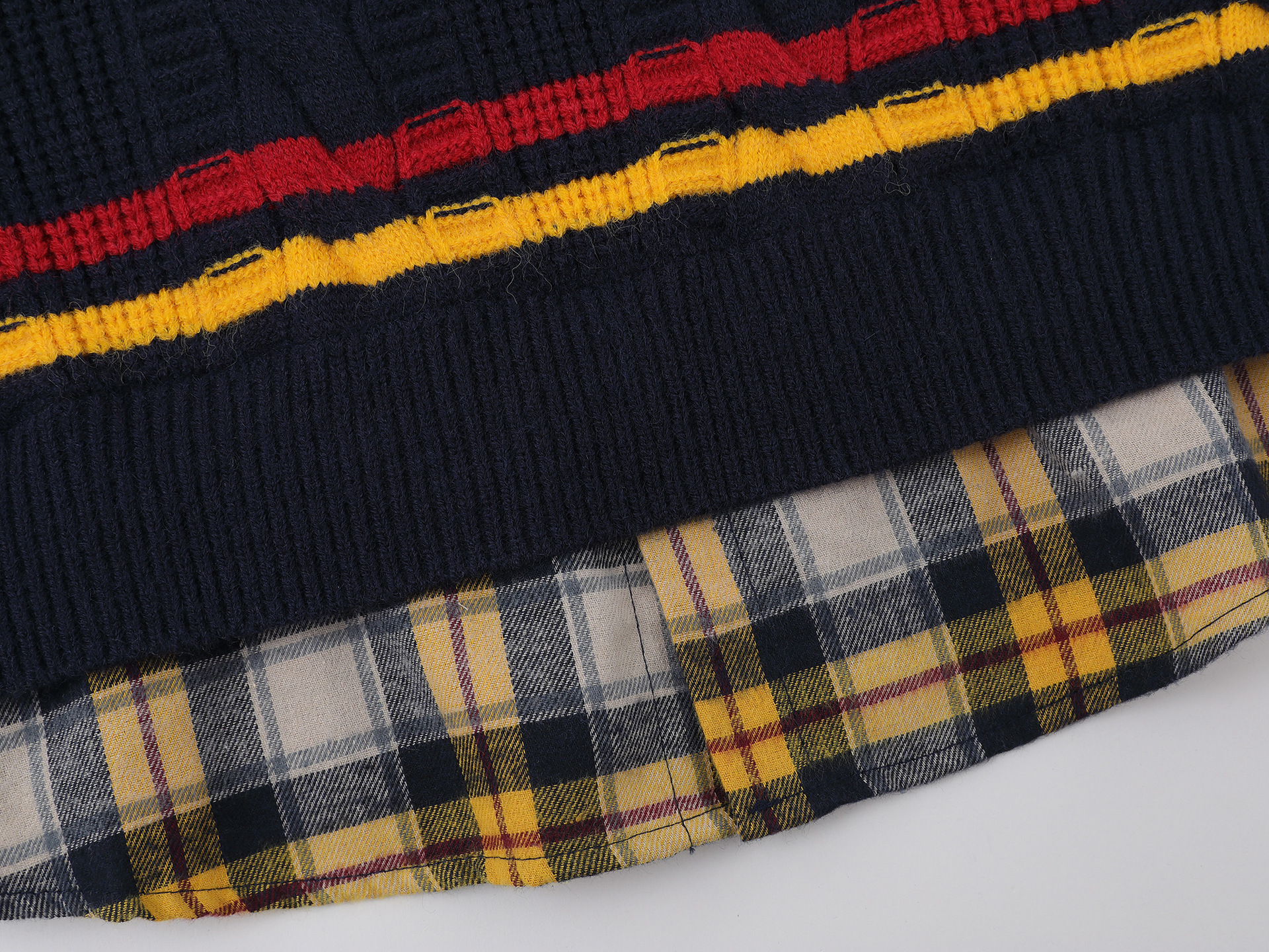 シャツフェイクレイヤード/ラインネック/ワンポイントケーブル編みデザインニット/cm0057