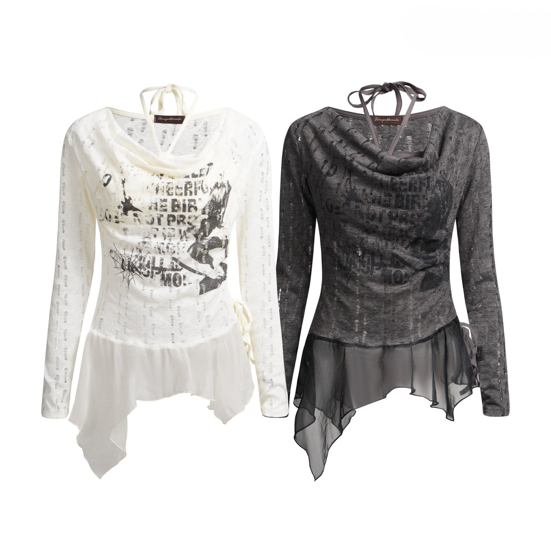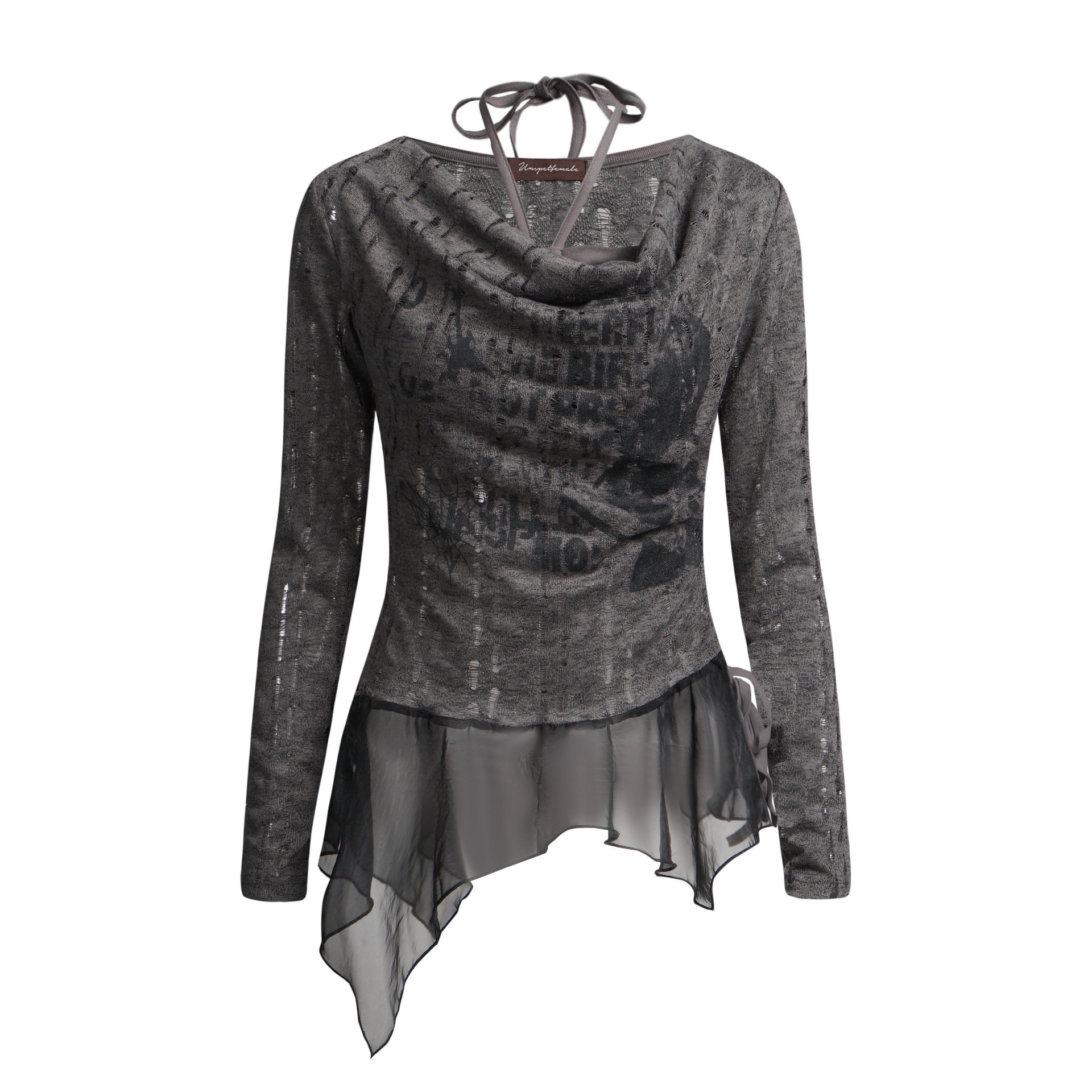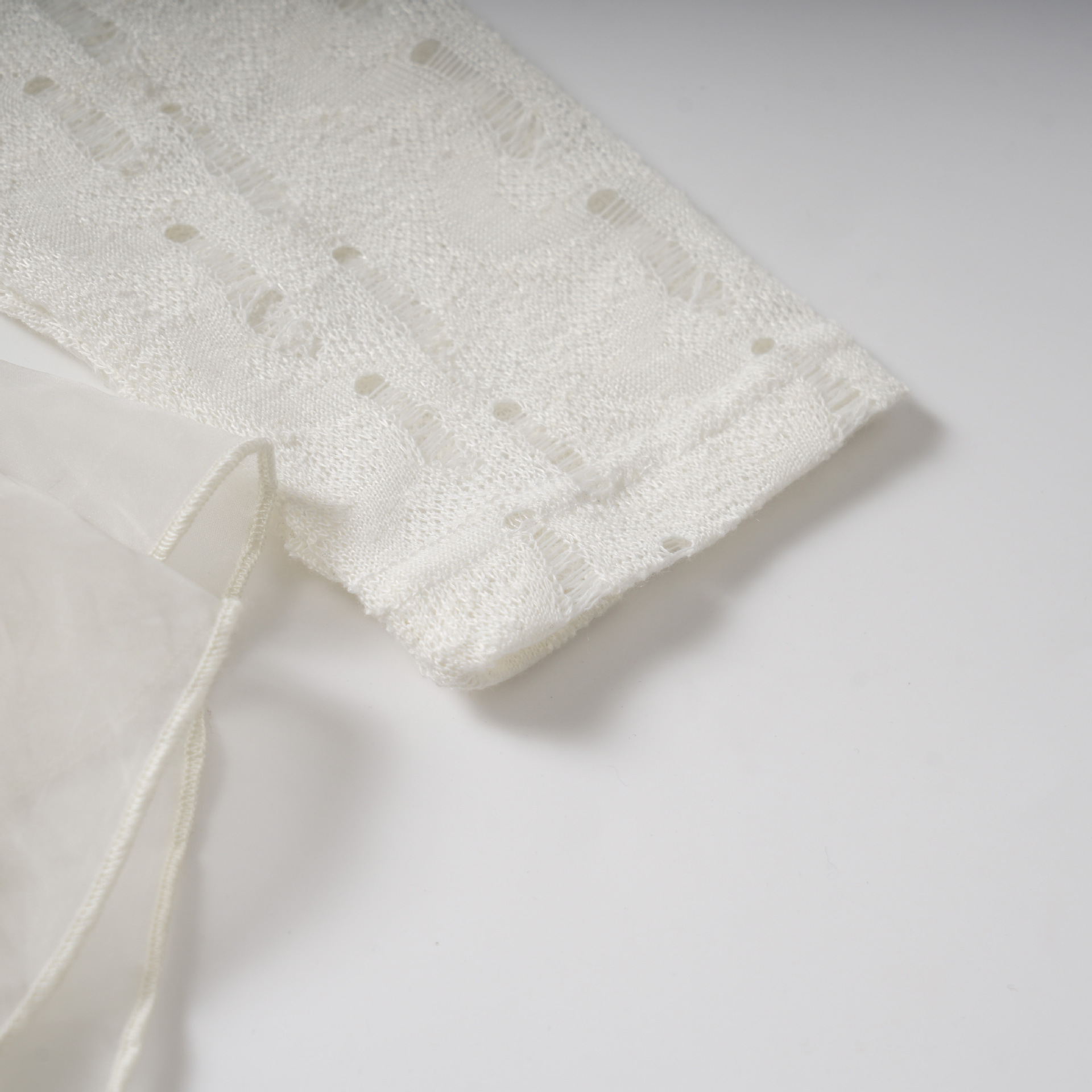 ヴィンテージデザインメッシュダメージ加工長袖トップス/2color/cm0059