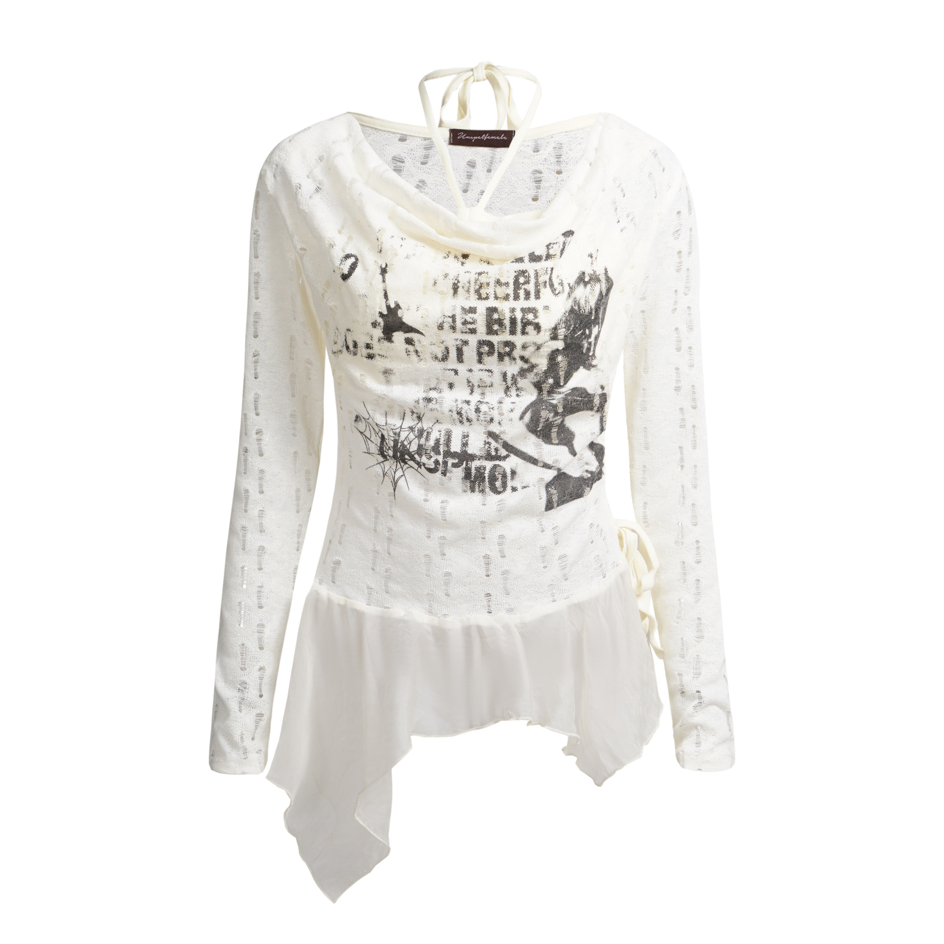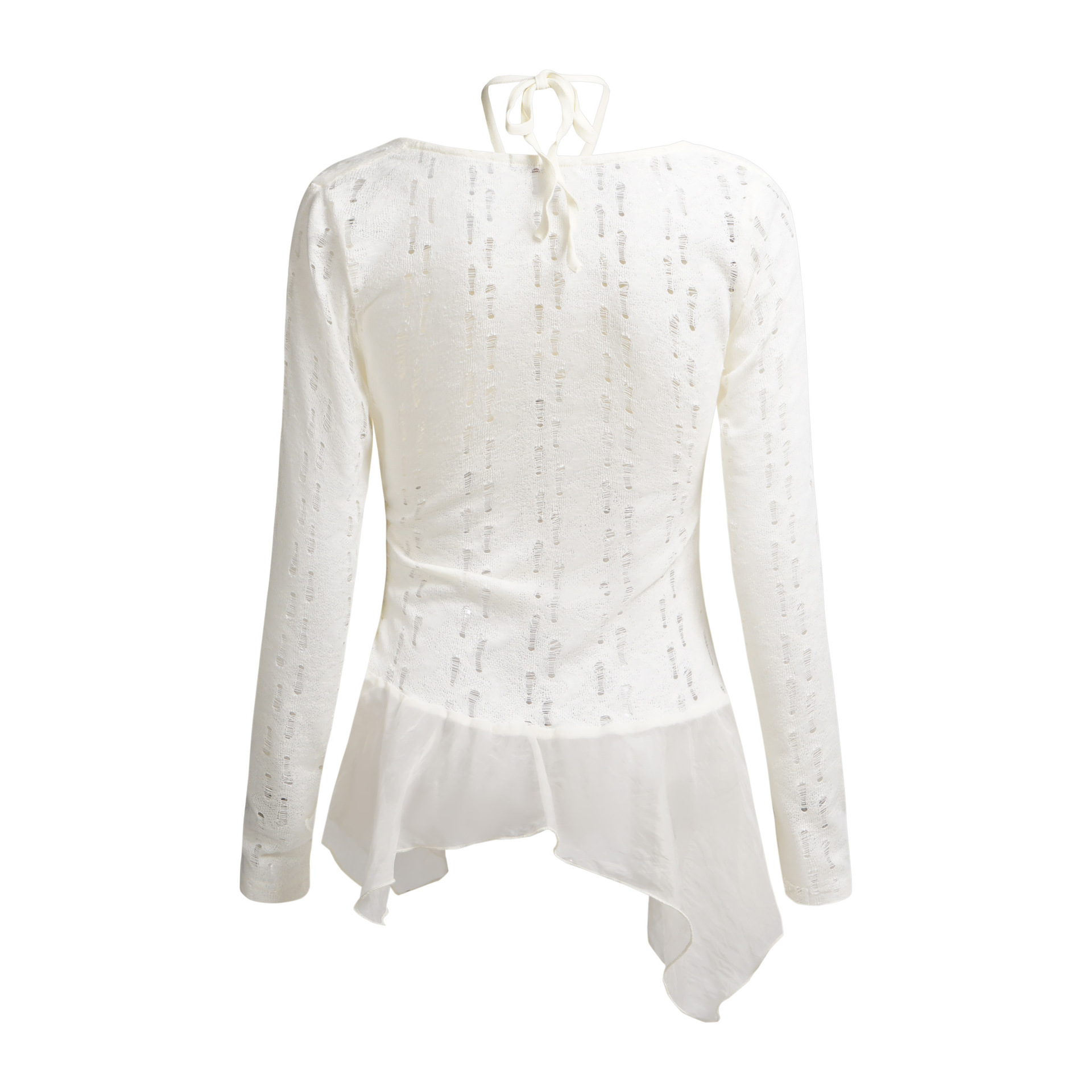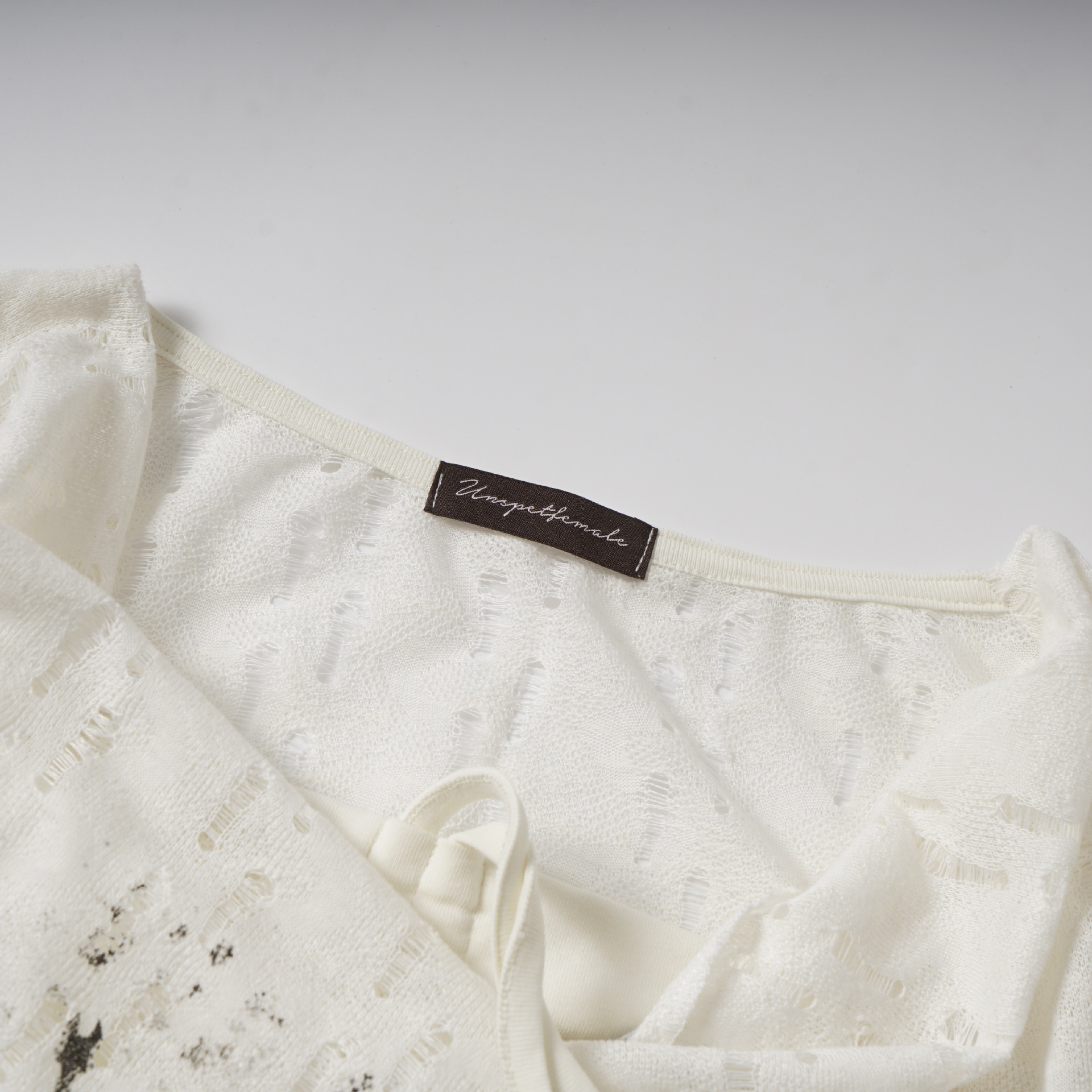 ヴィンテージデザインメッシュダメージ加工長袖トップス/2color/cm0059