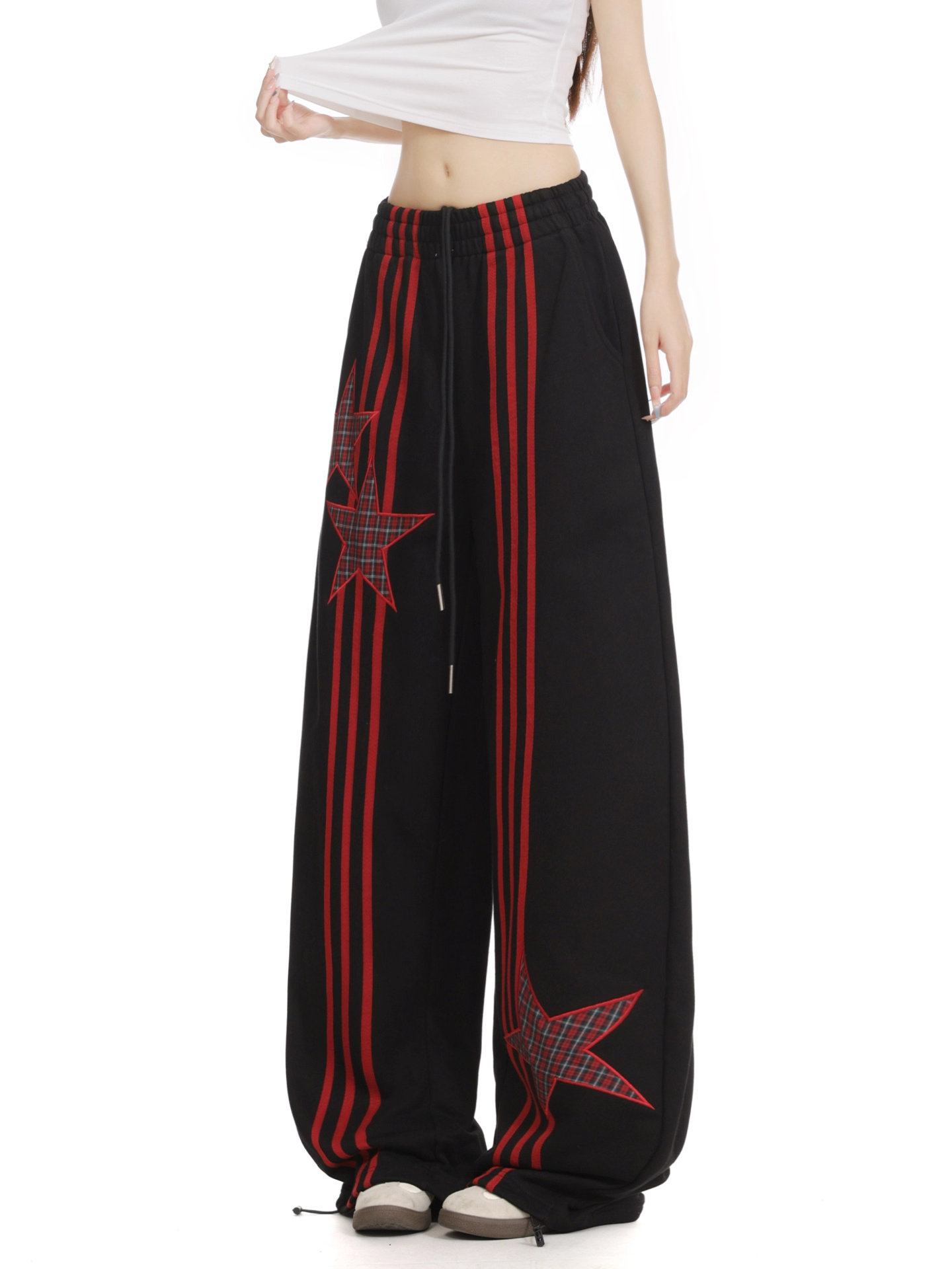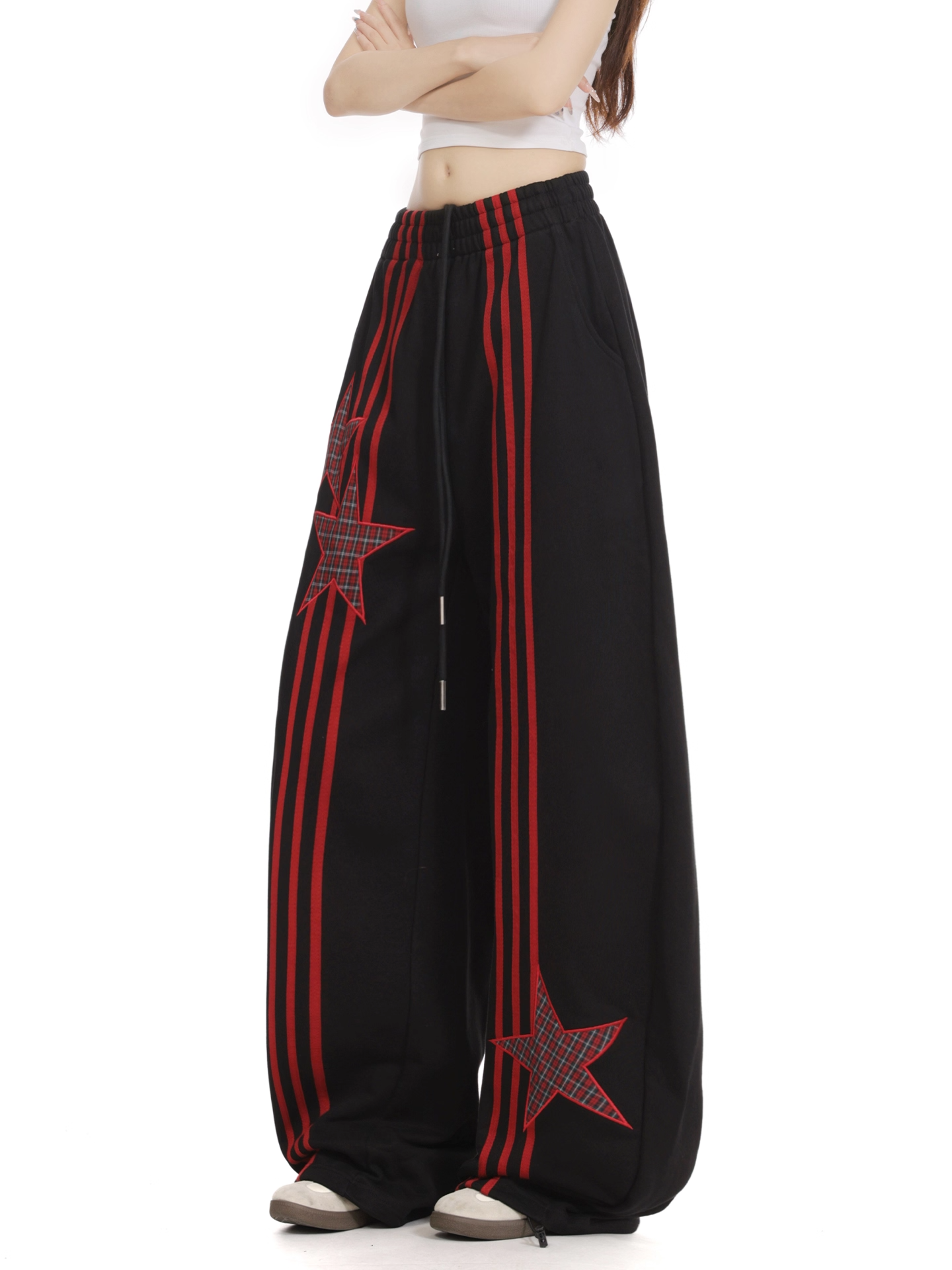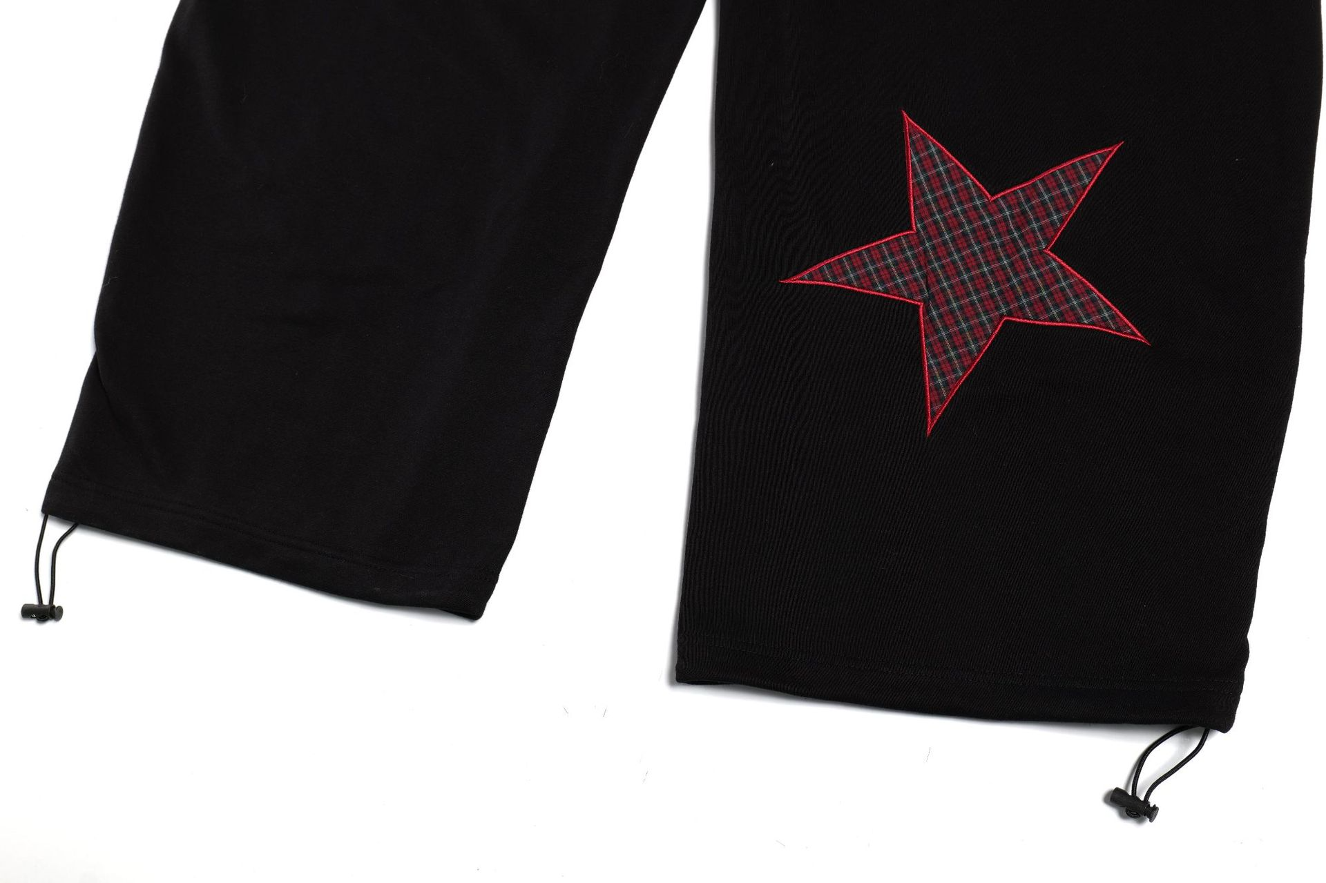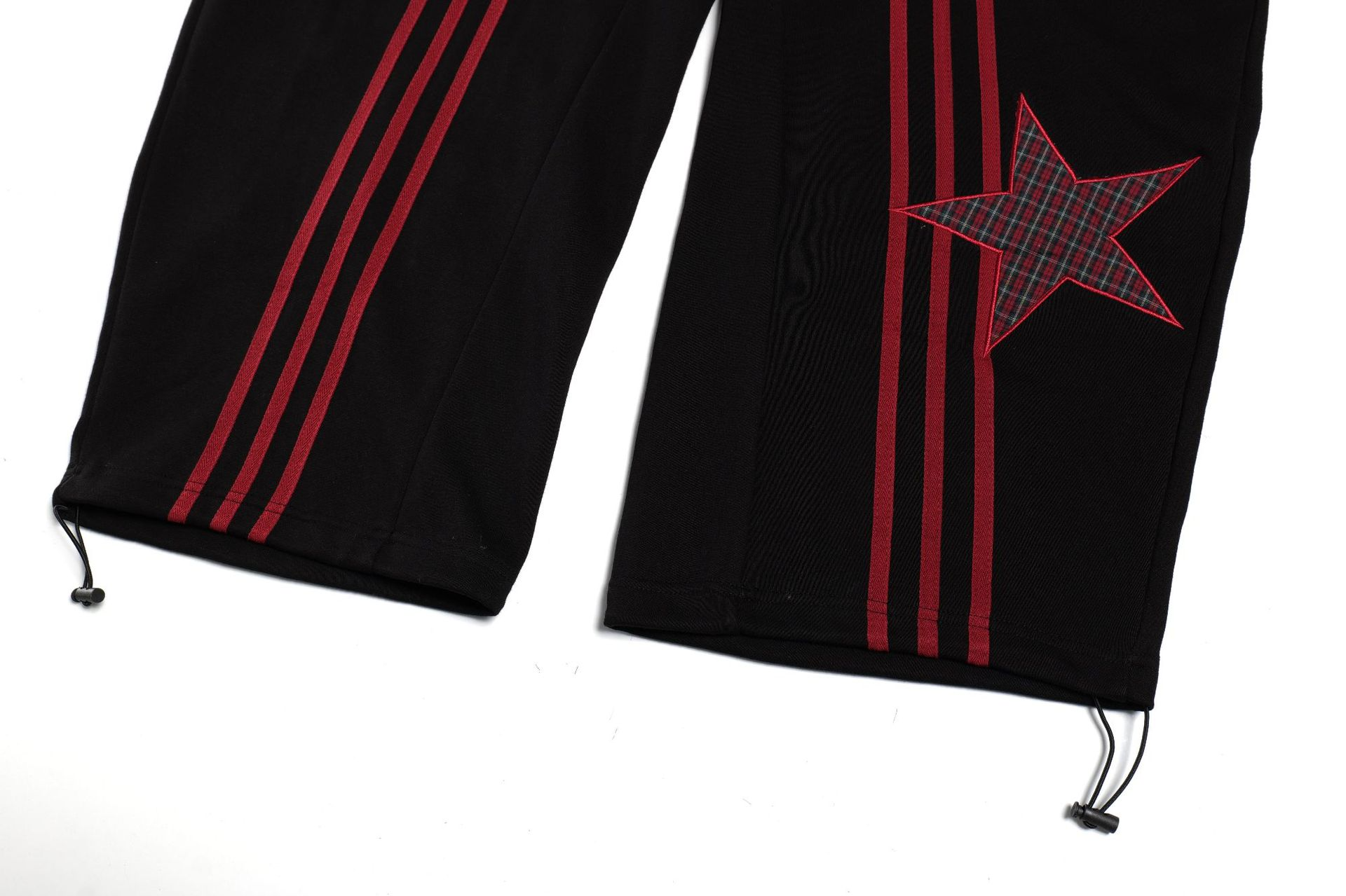 レッドラインとスターデザインが特徴的なパンツです。モダンで洗練されたディテールが、カジュアルなスタイリングから大人っぽいコーディネートまで幅広く対応します。上質な素材感と丁寧な仕上がりで、日常使いから特別な場面まで活躍するアイテム。赤と星のコントラストが視線を引き、個性的な装いを演出できます。