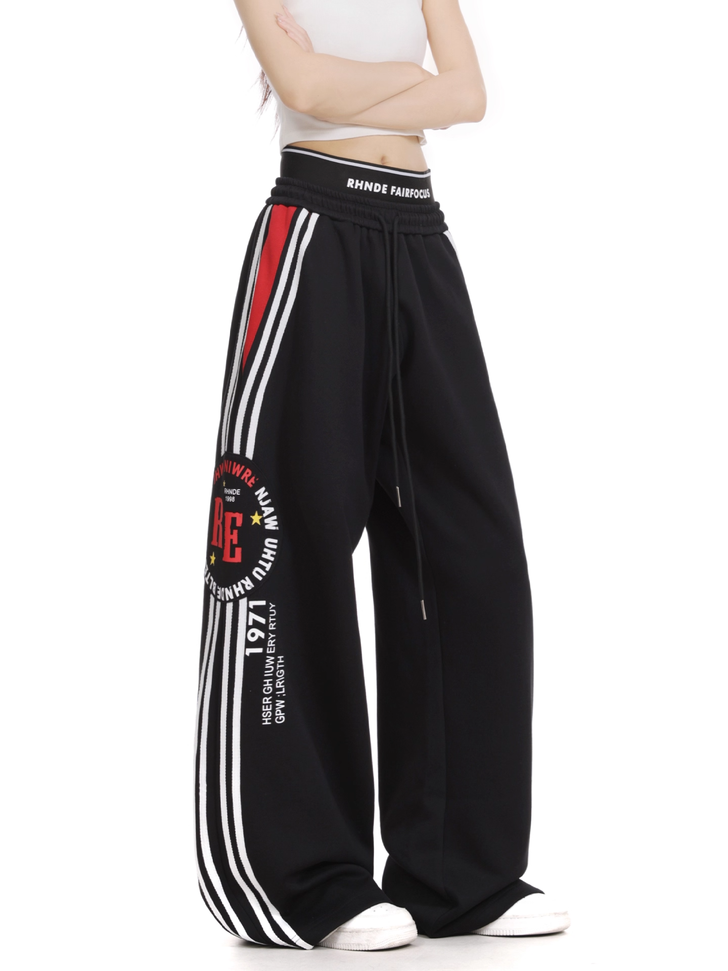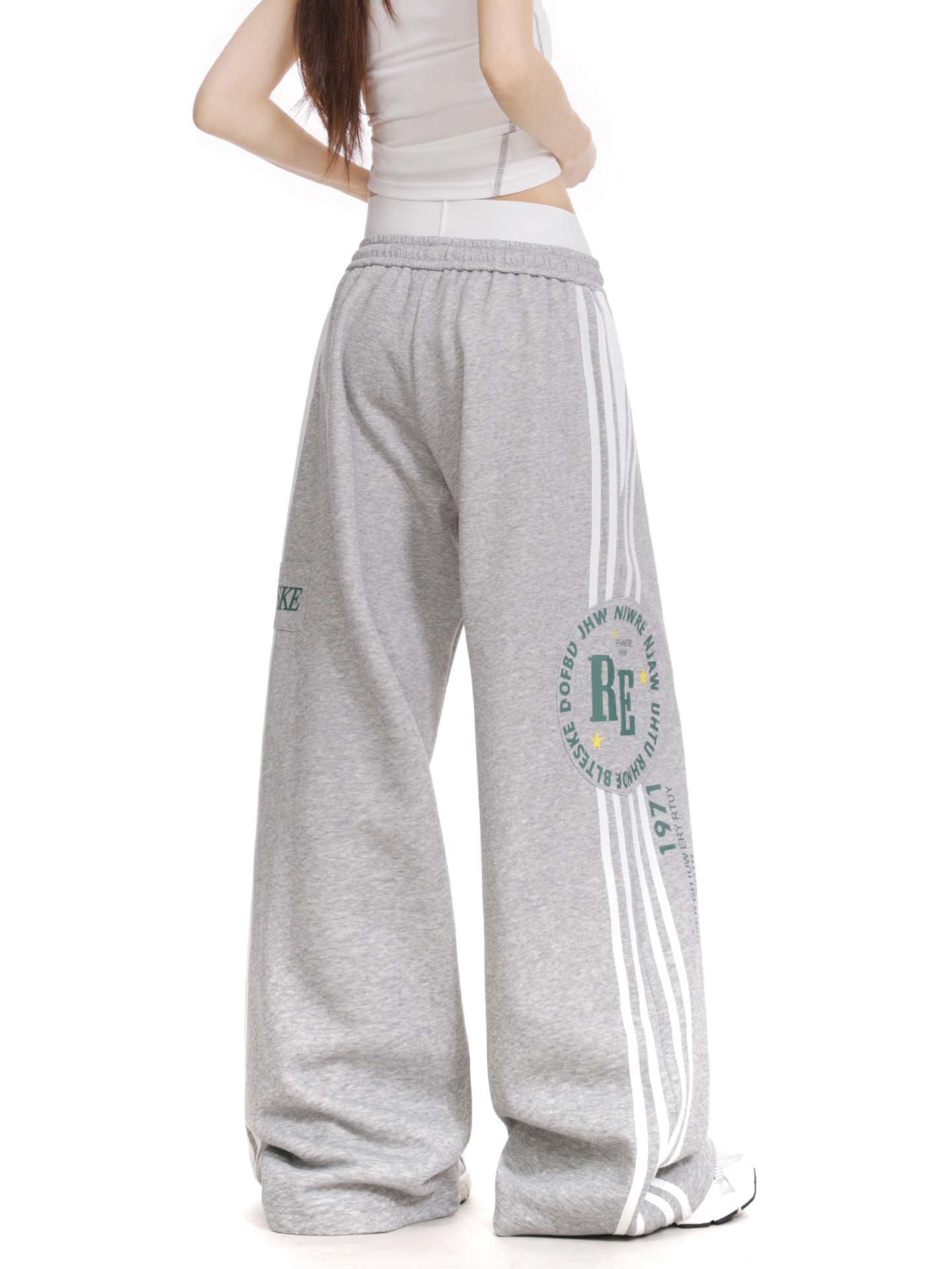 BIGロゴ/ラインワイドパンツ 大きなロゴデザインとサイドラインが特徴的なワイドシルエットパンツ。ゆったりとした着心地で、モダンなストリートスタイルを演出します。素材は耐久性に優れ、日常使いから特別な場面まで幅広く対応。シンプルながらインパクトのあるデザインで、様々なトップスとの相性も良好です。