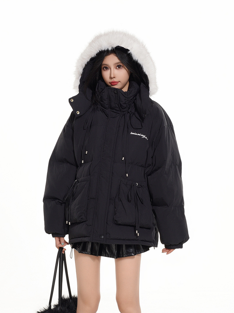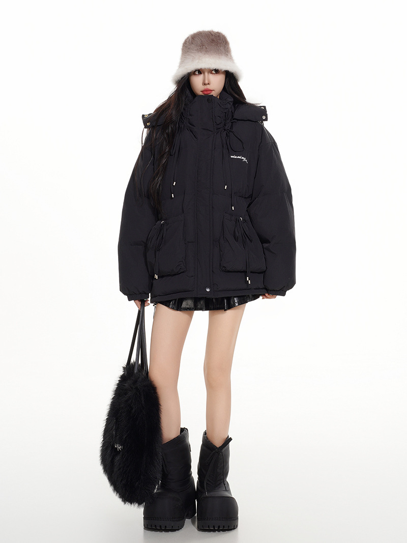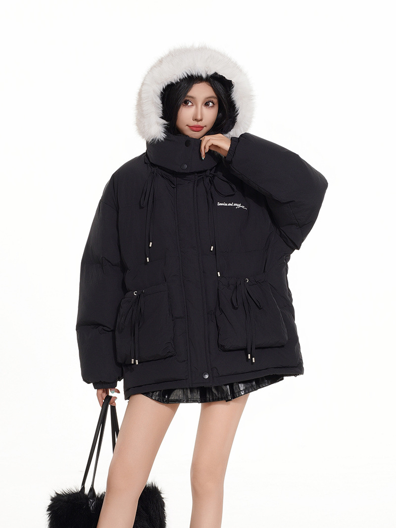 BIGポケットリボンデザインパファージャケット/2color/cm0079