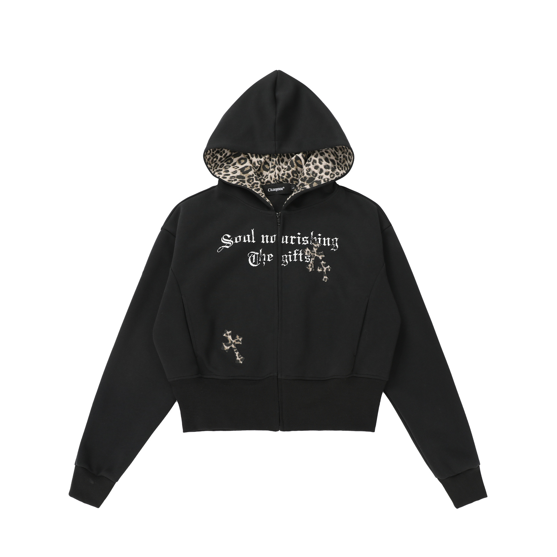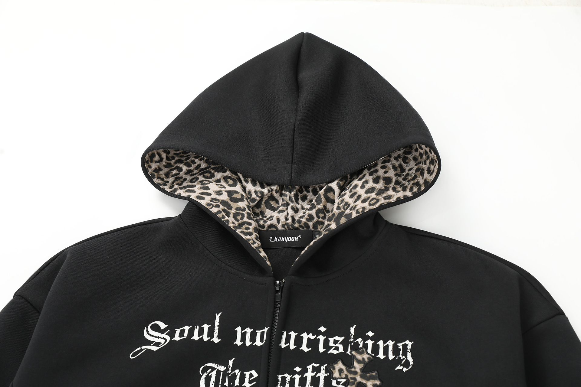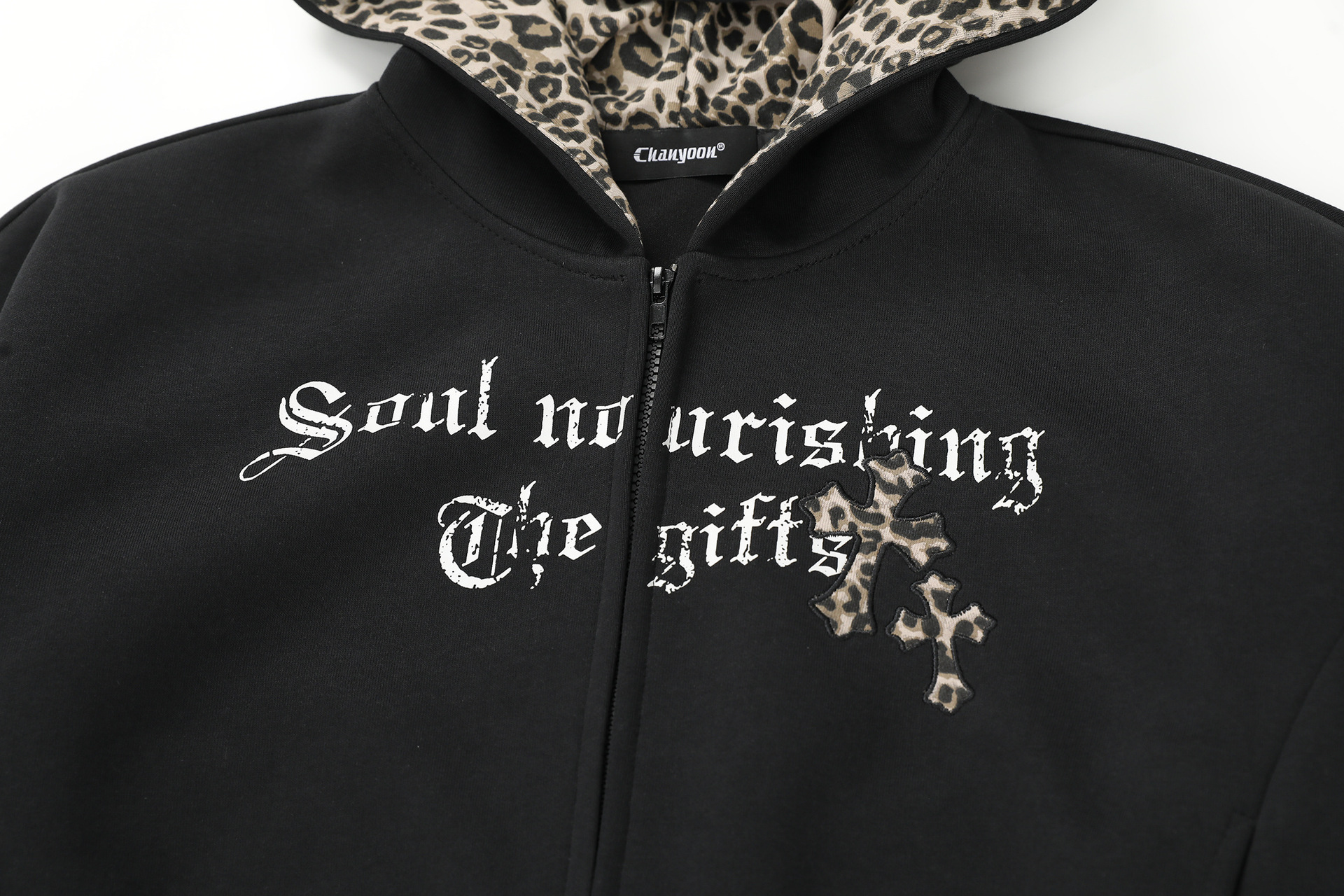 クロスレオパード柄ジップアップパーカー/2color/cm0080