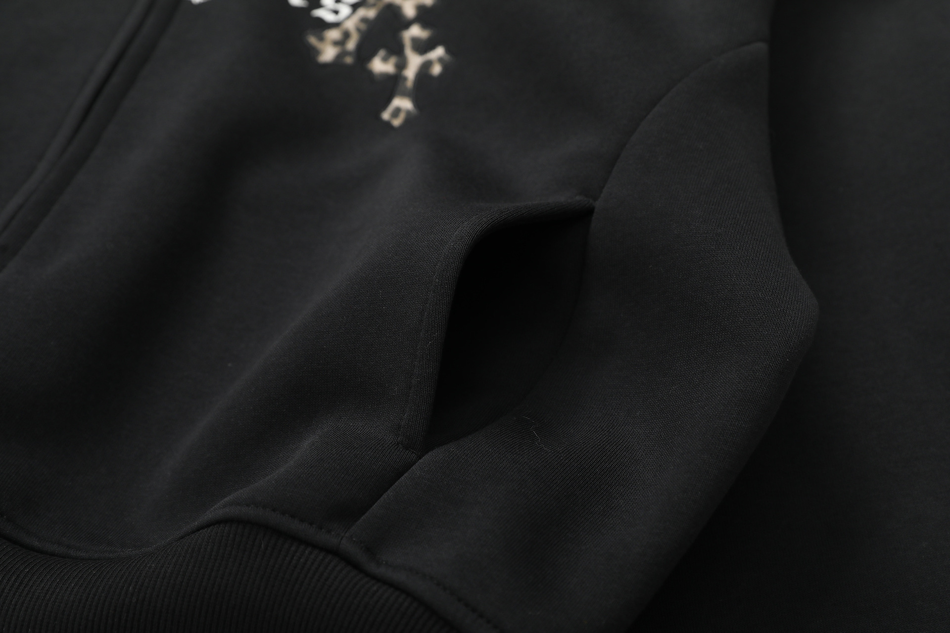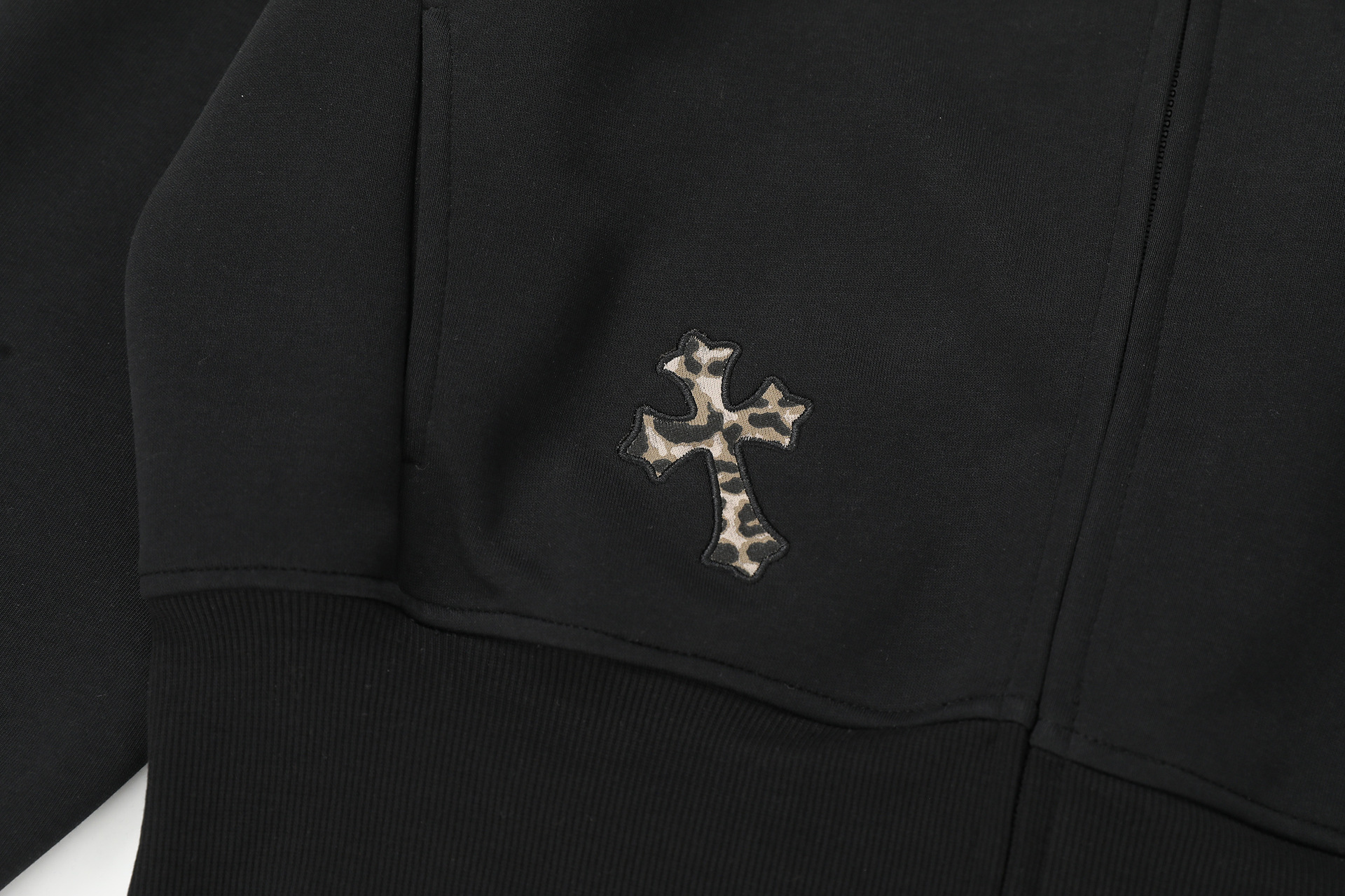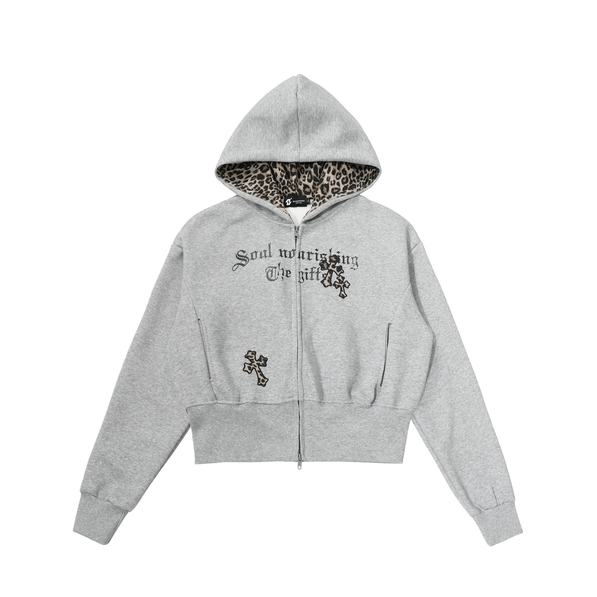 クロスレオパード柄ジップアップパーカー/2color/cm0080