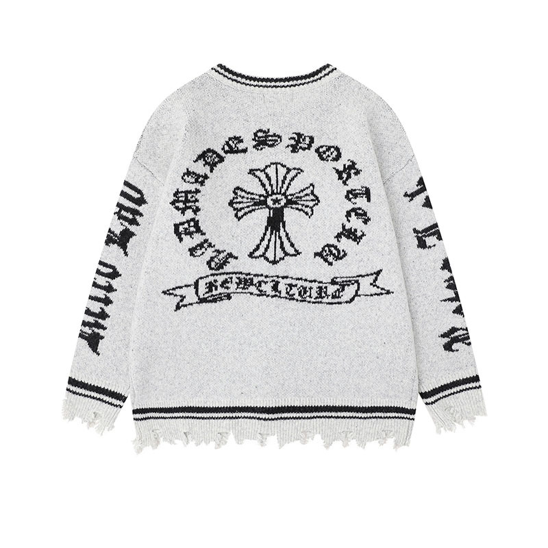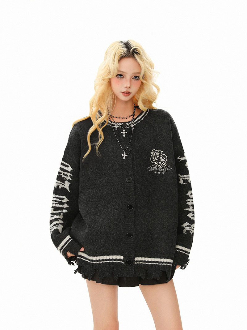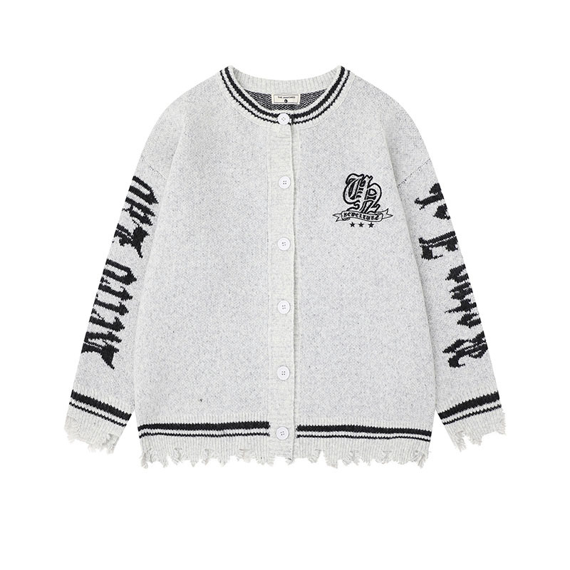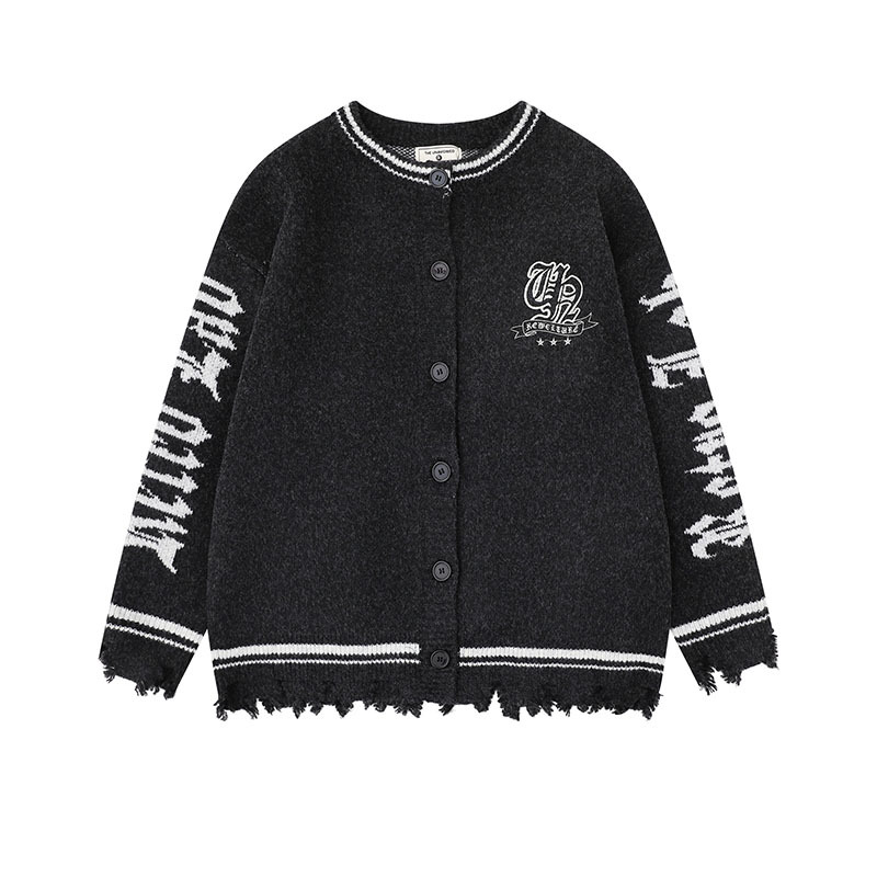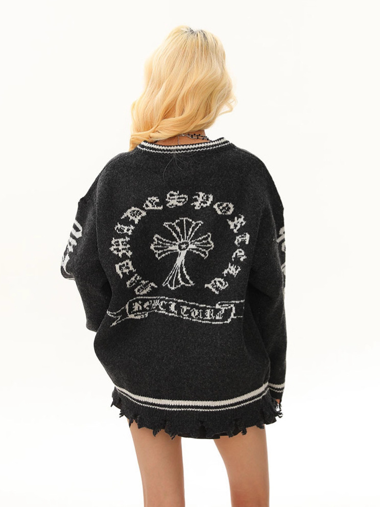 クロスデザインダメージ加工ニットカーディガン/2color/cm0084