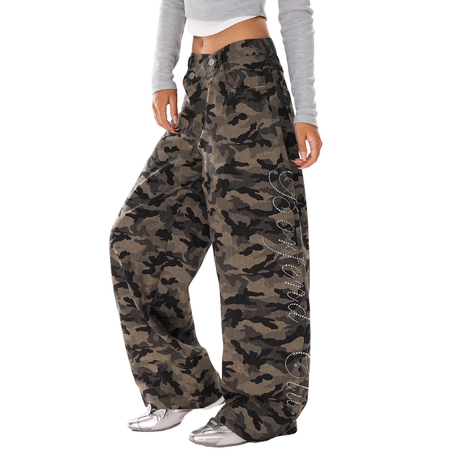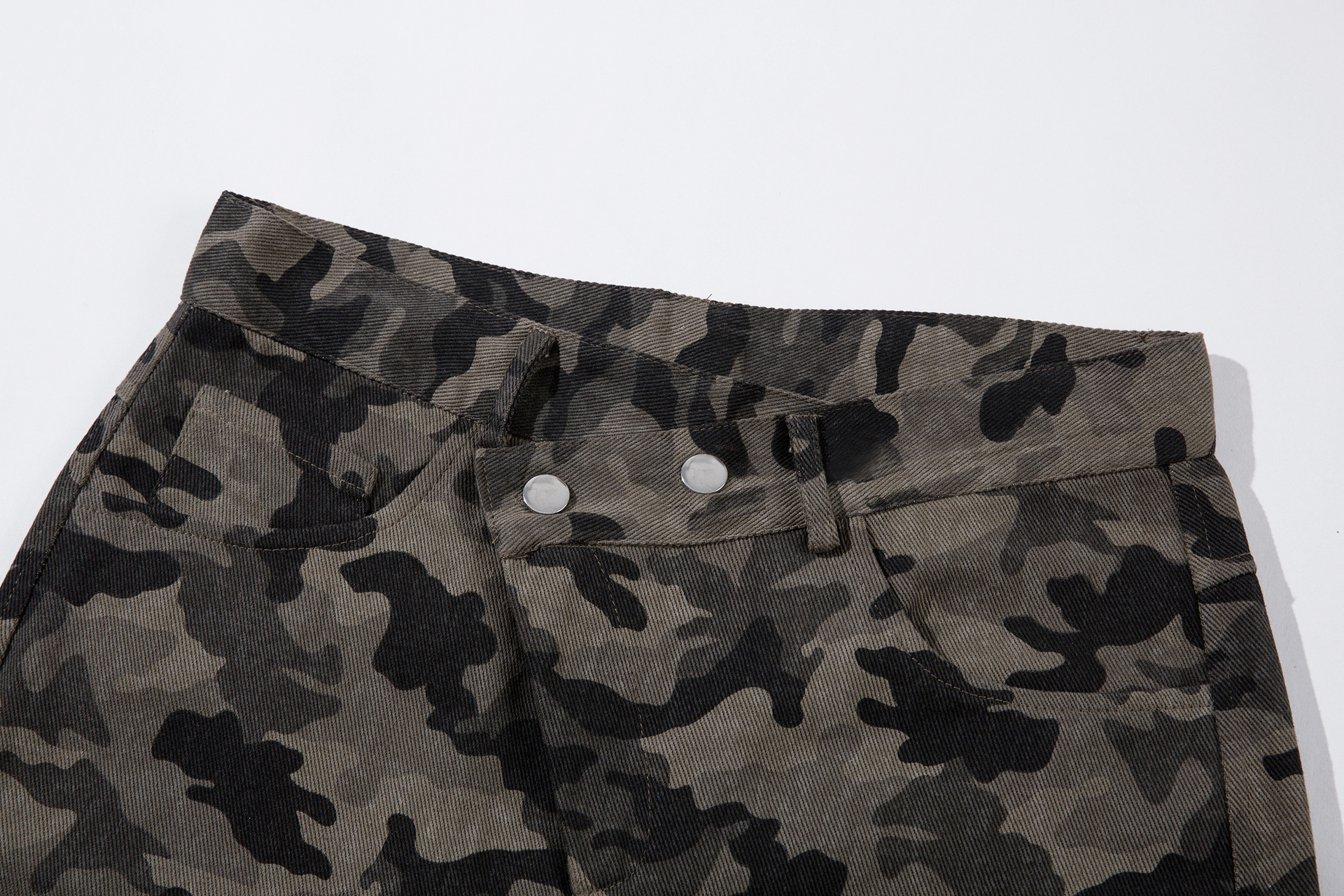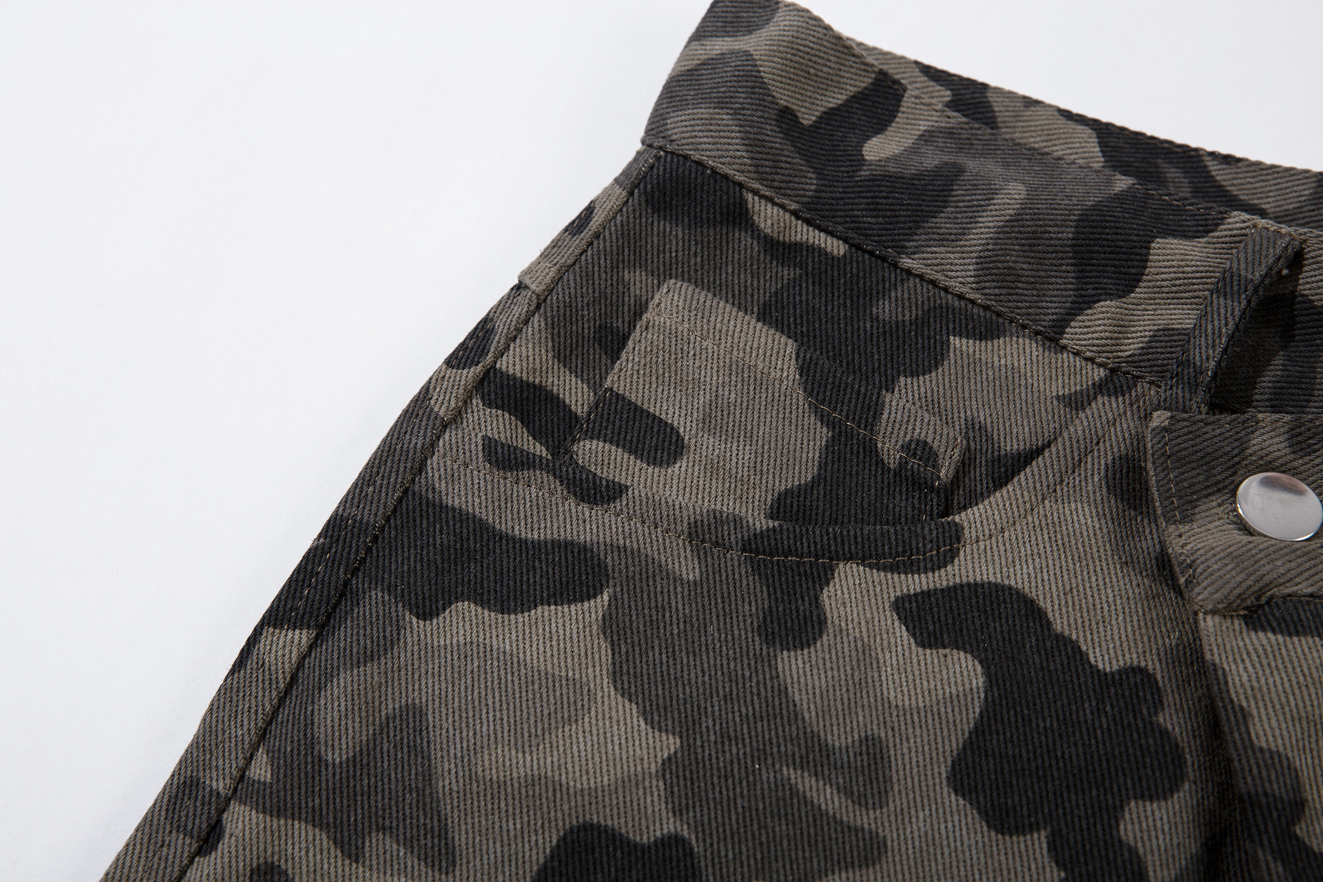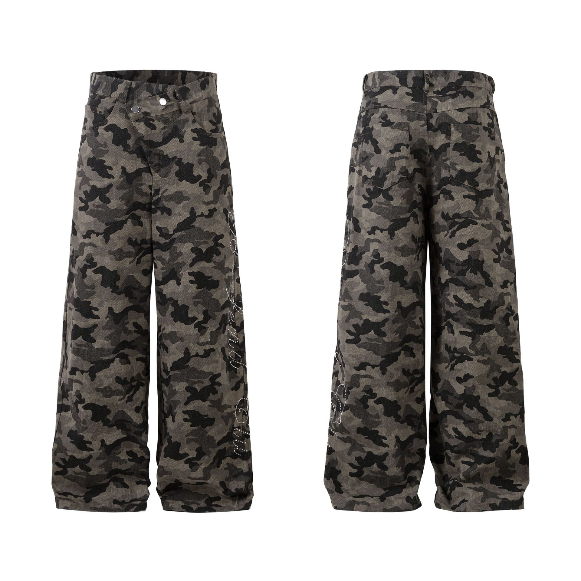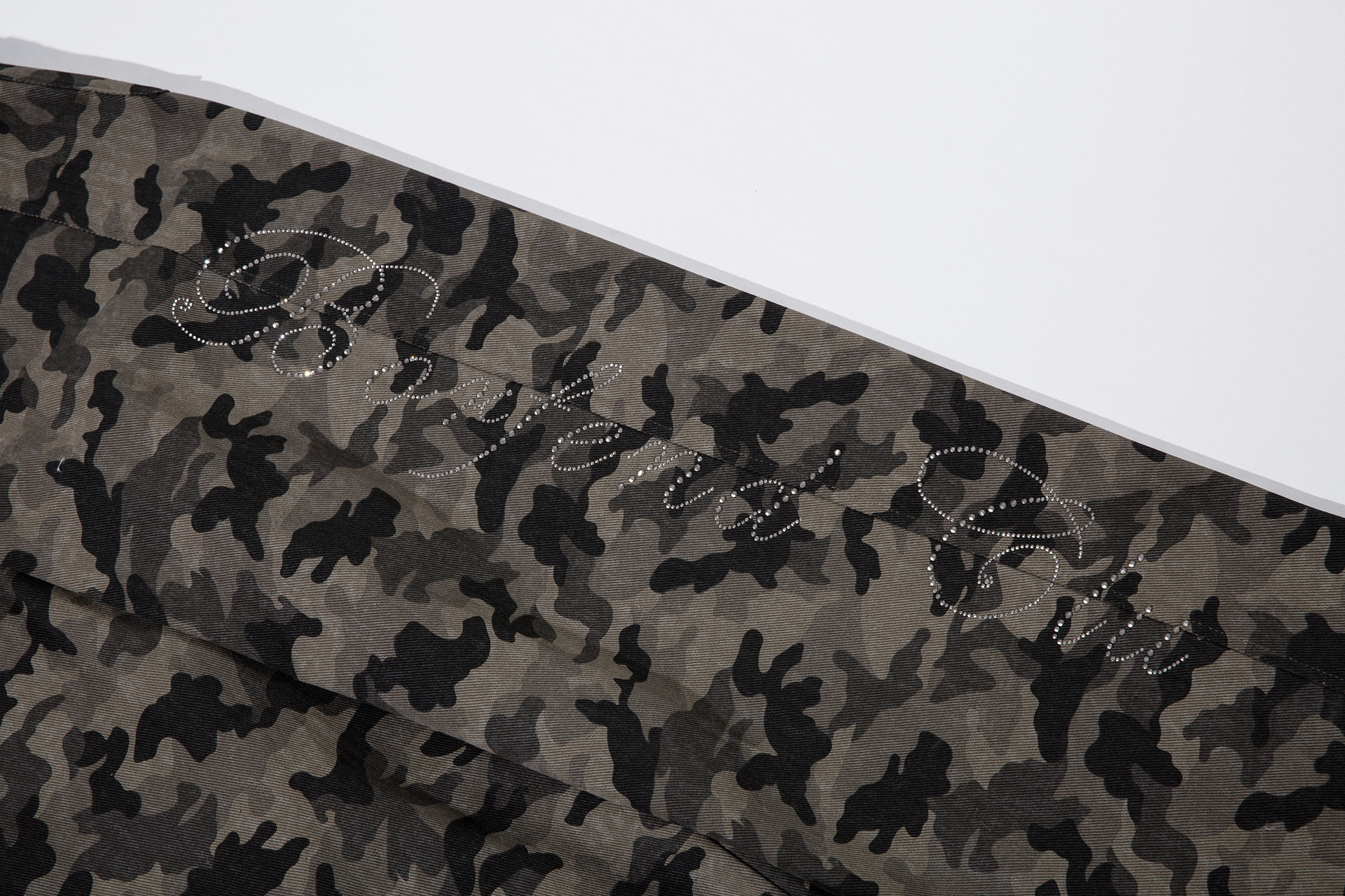 カモフラ柄ビジューアルファベットデザインデニムパンツ/cm0091