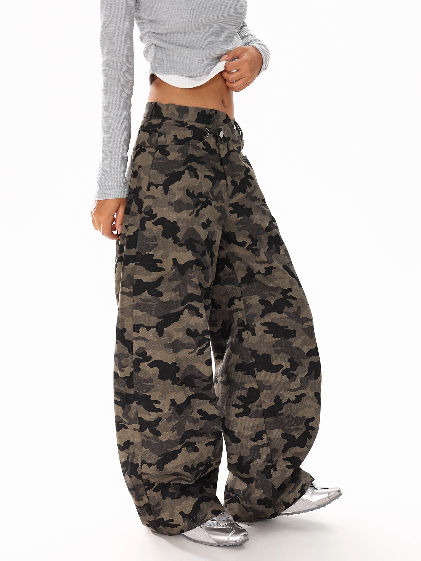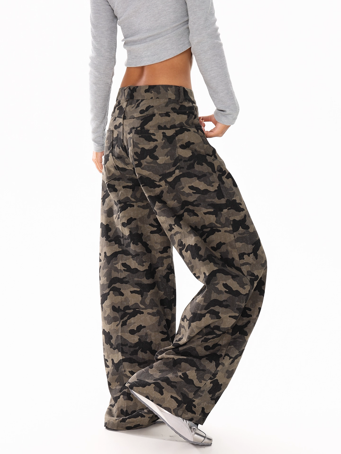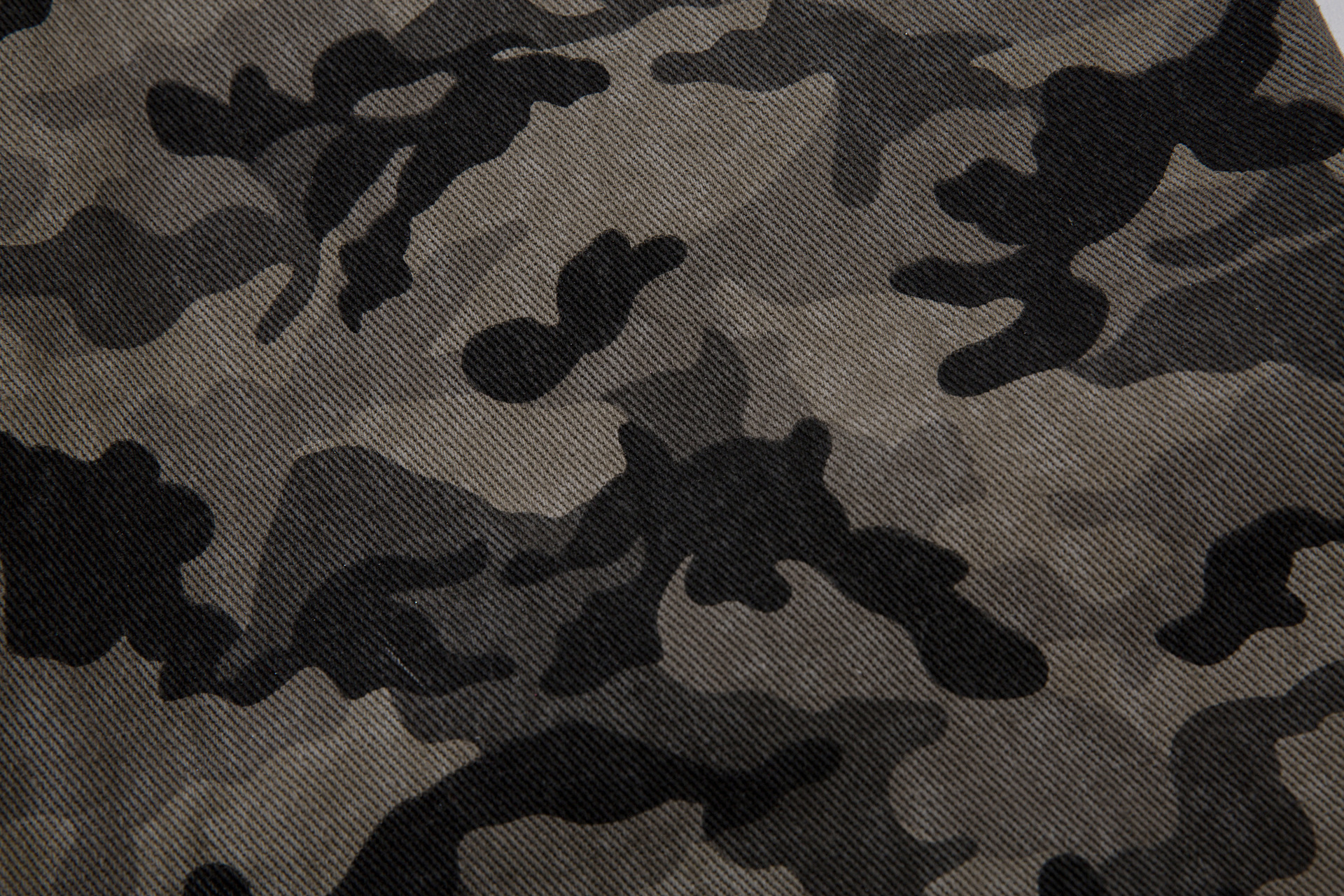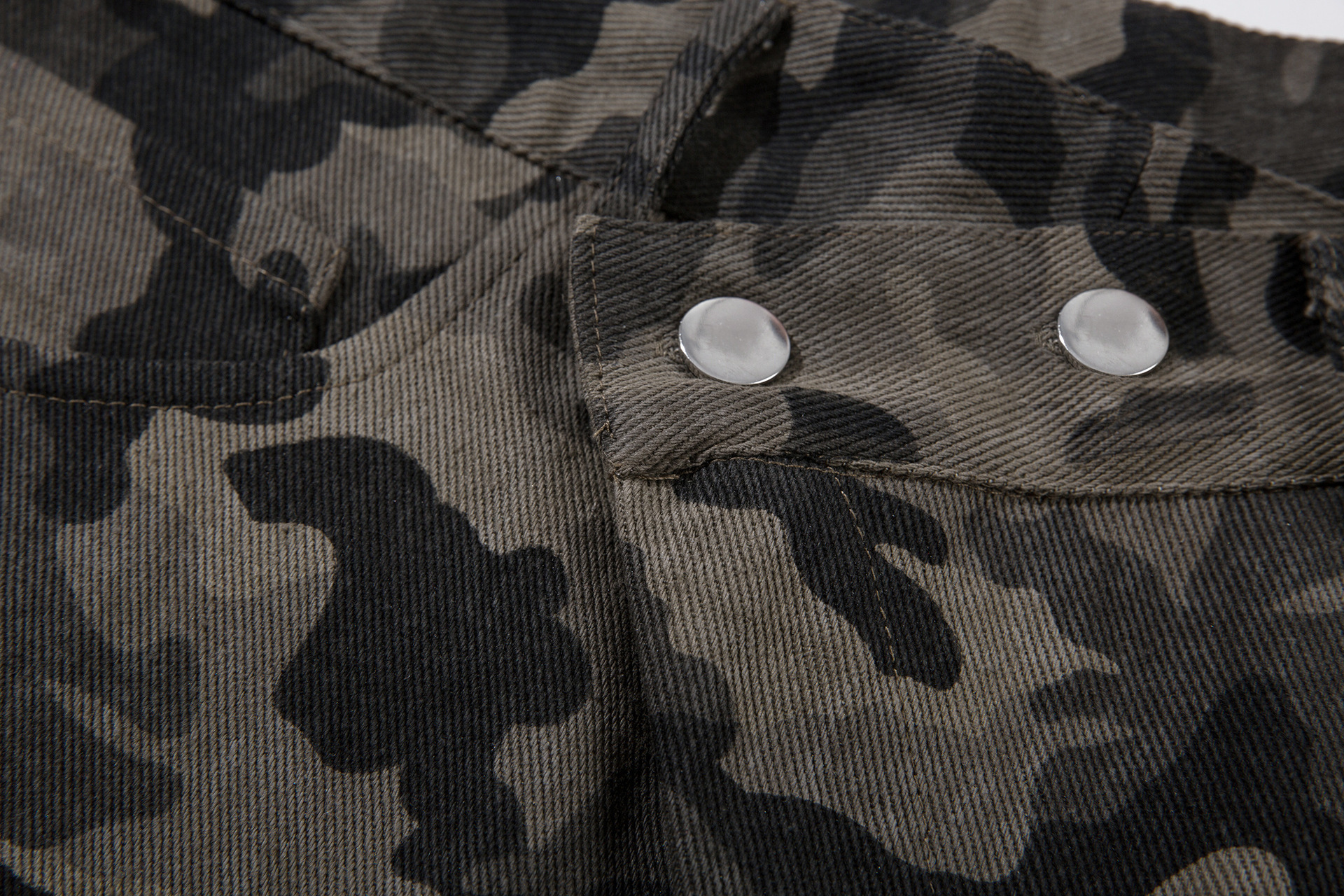 カモフラ柄ビジューアルファベットデザインデニムパンツ/cm0091