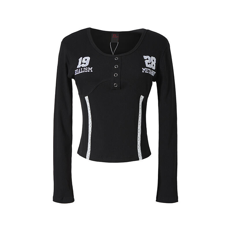レースラインスポーティー/ナンバー刺繍長袖Tシャツ/2color/cm0099