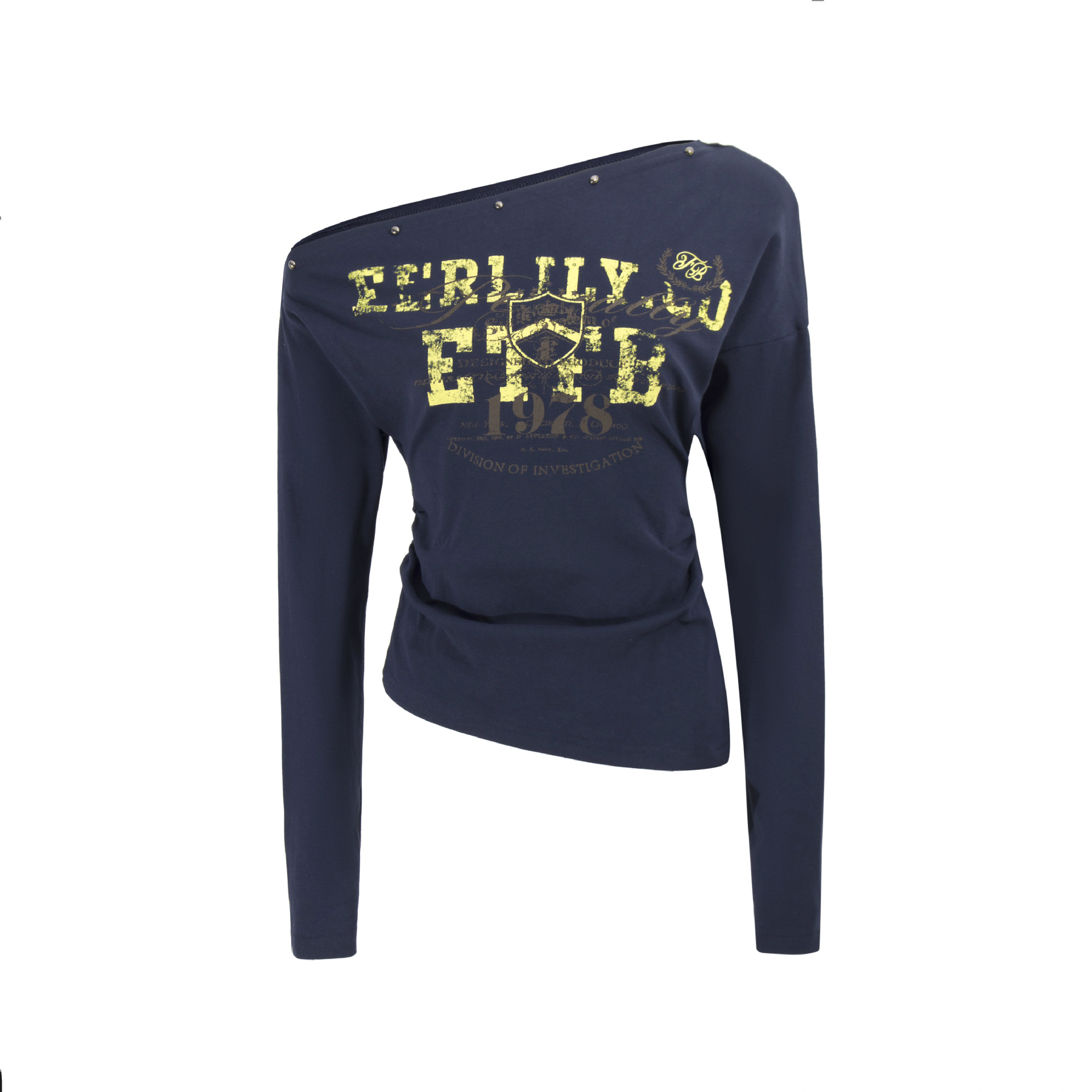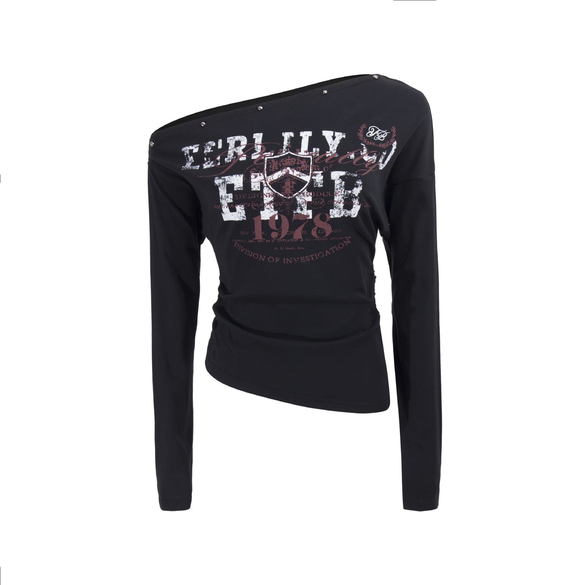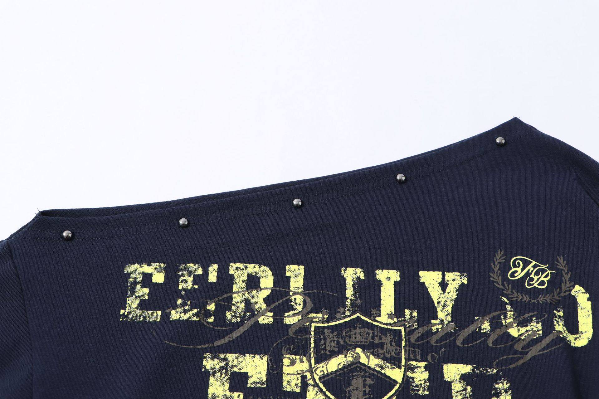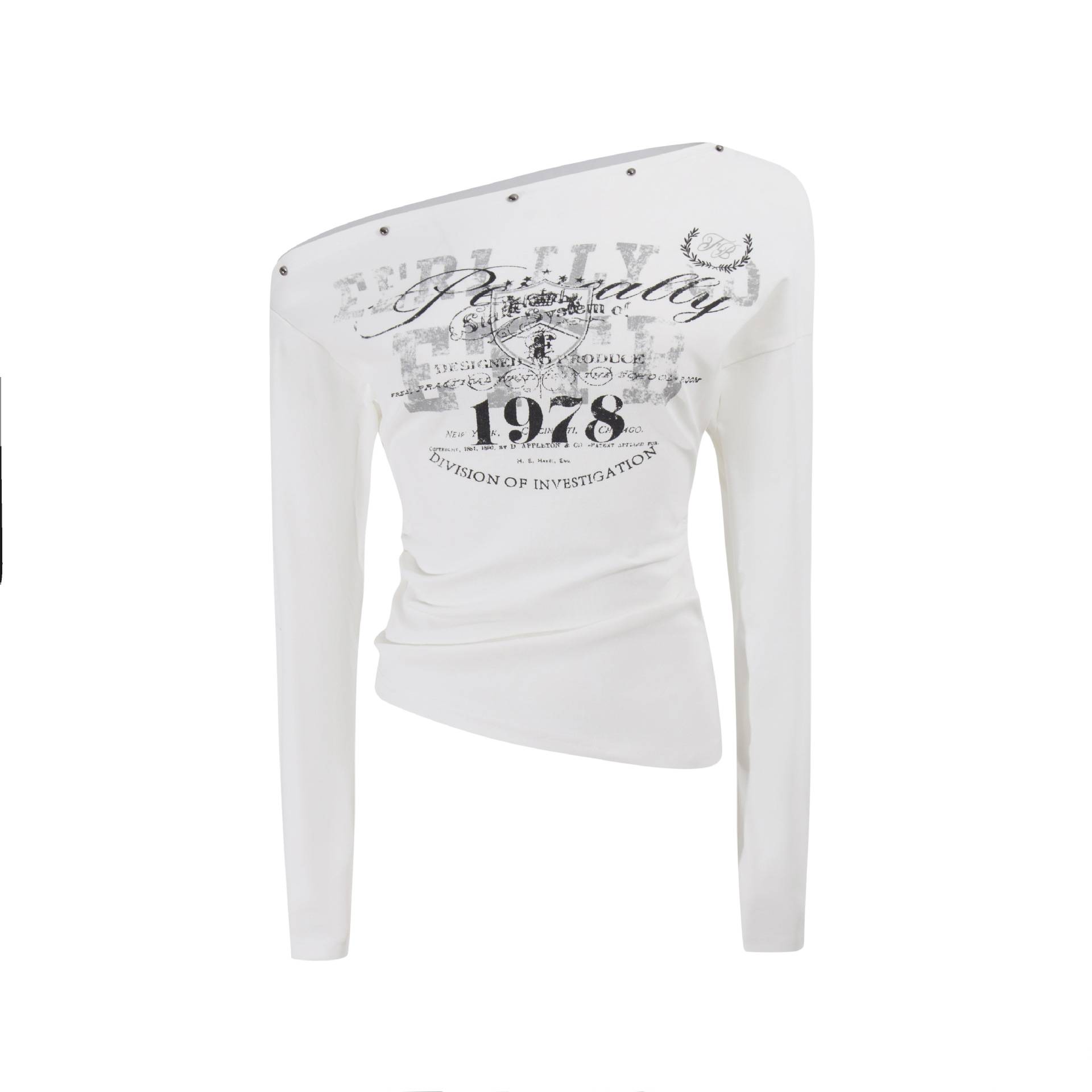 スタッズ付きアシメオフショルダーTシャツ/3color/cm0104