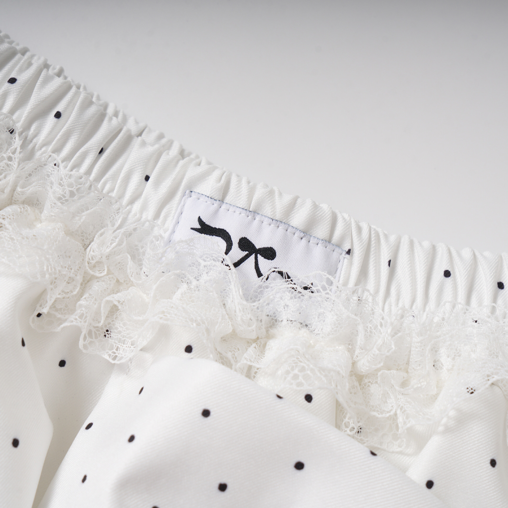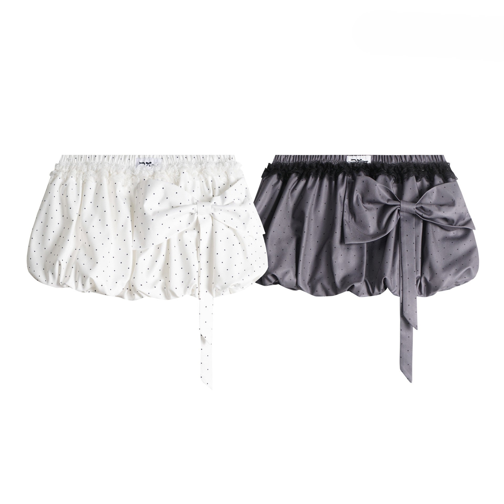 リボンデザインバブルヘム水玉ミニスカート/2color/cm0105