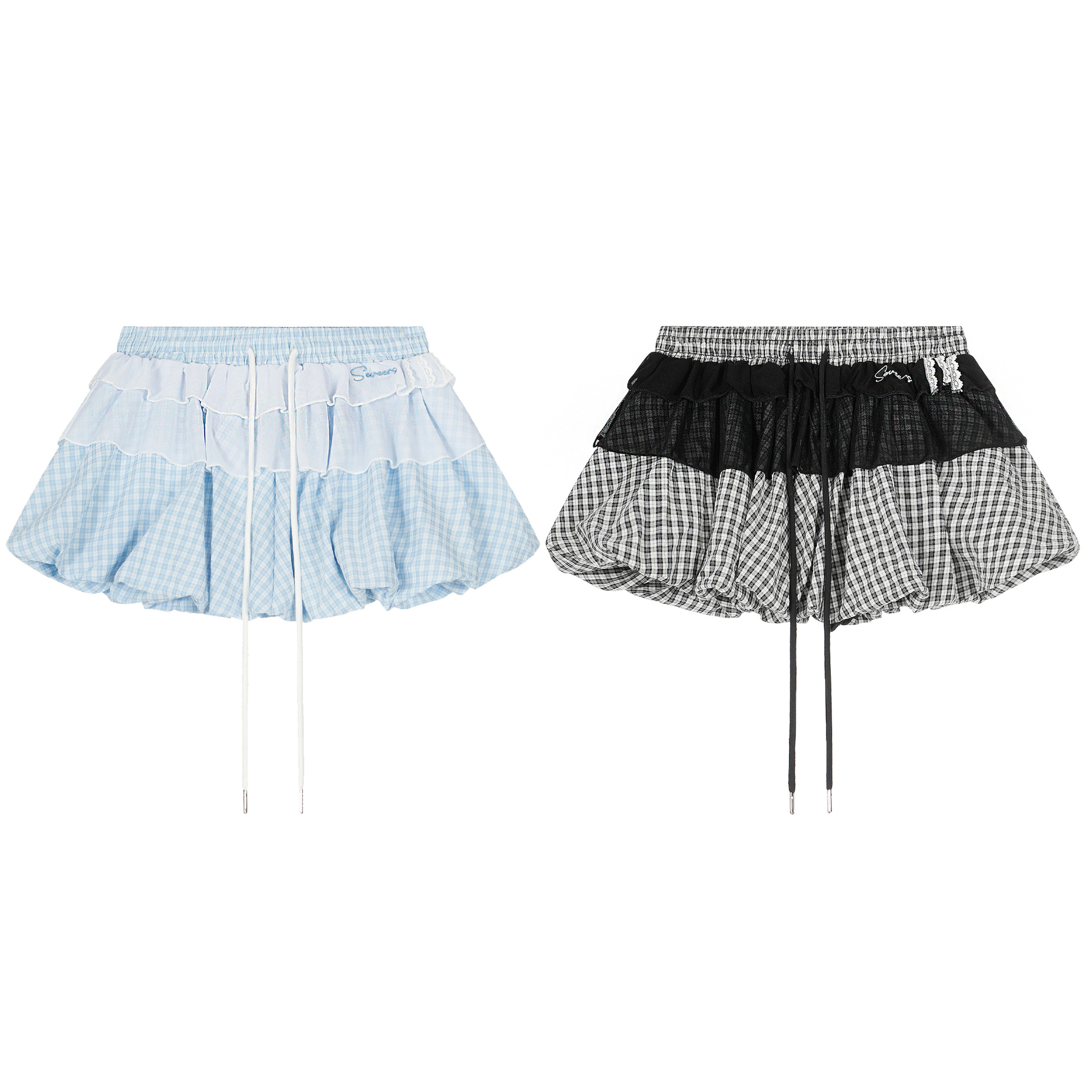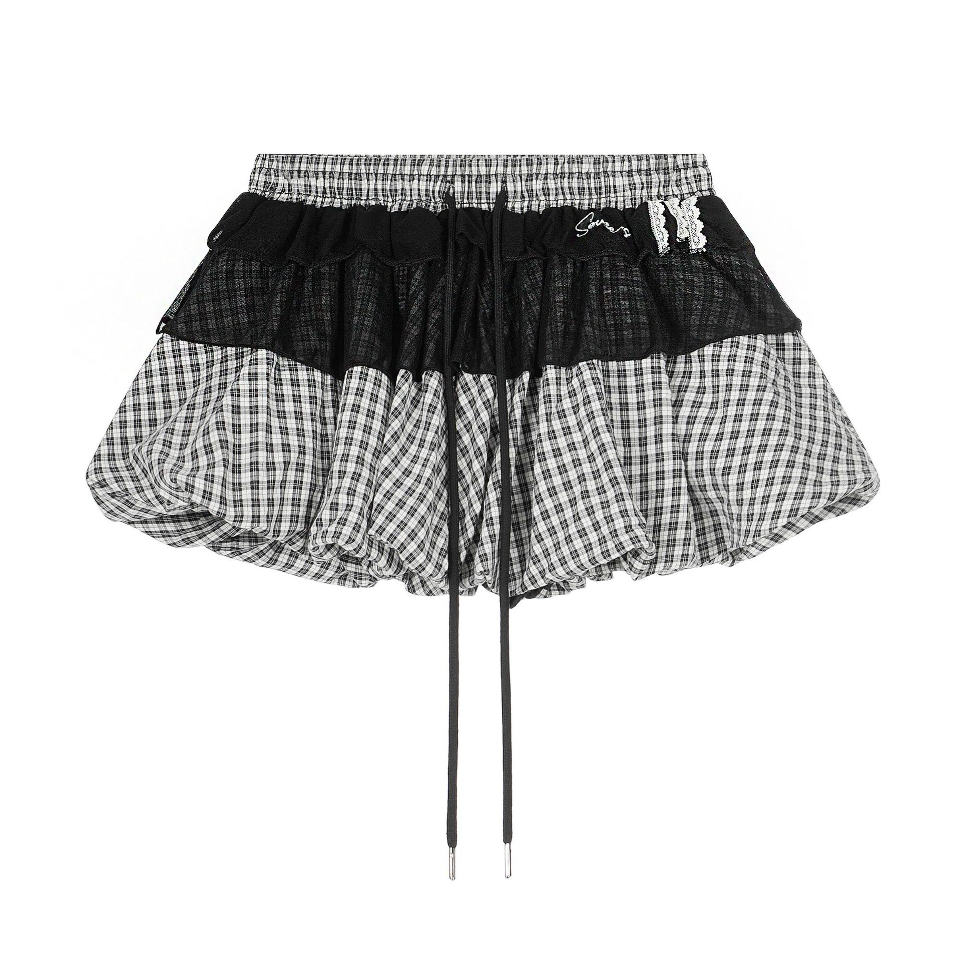 シースルーディテールバブルヘムミニスカート/2color/cm0108