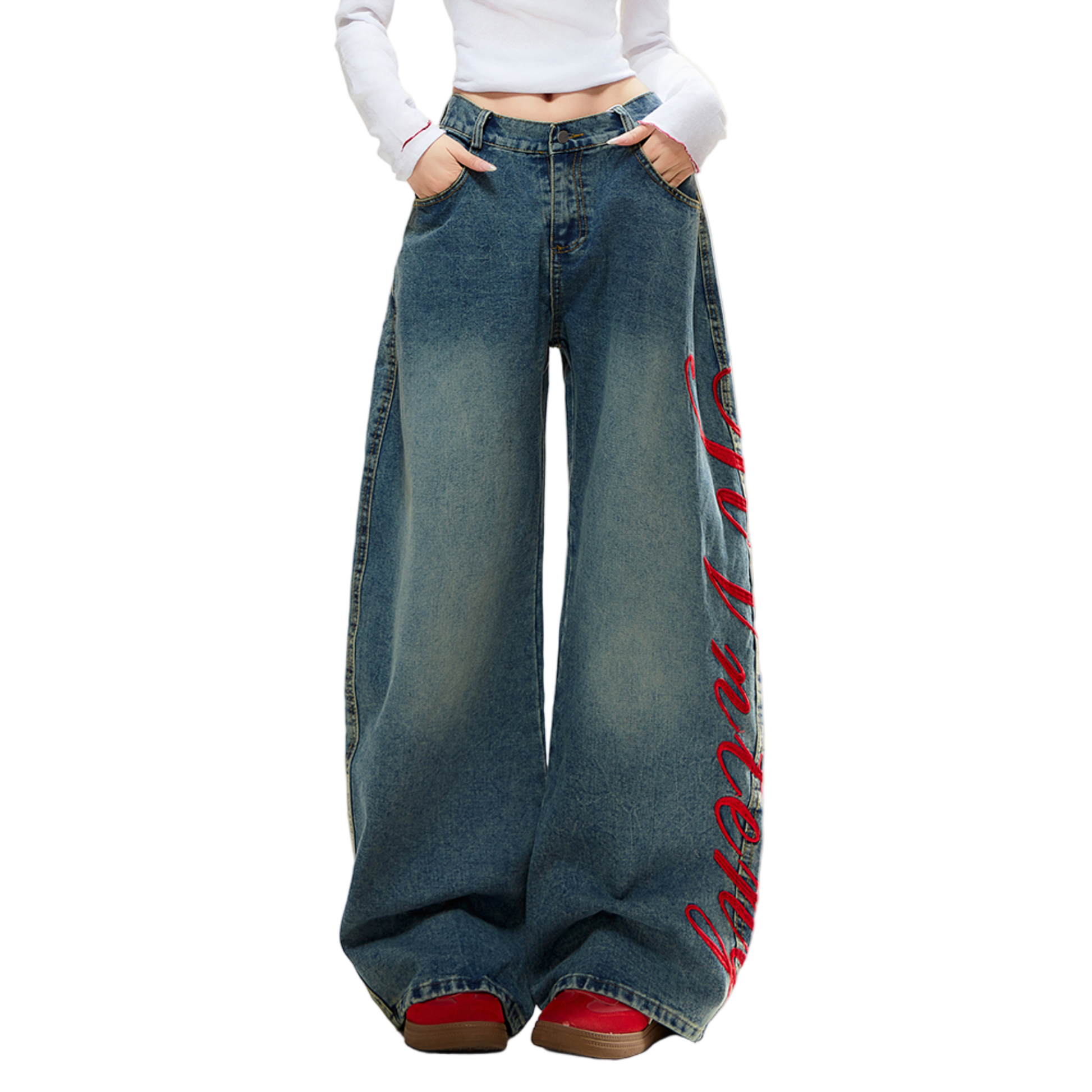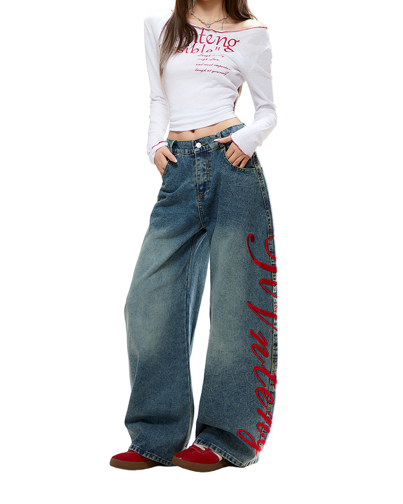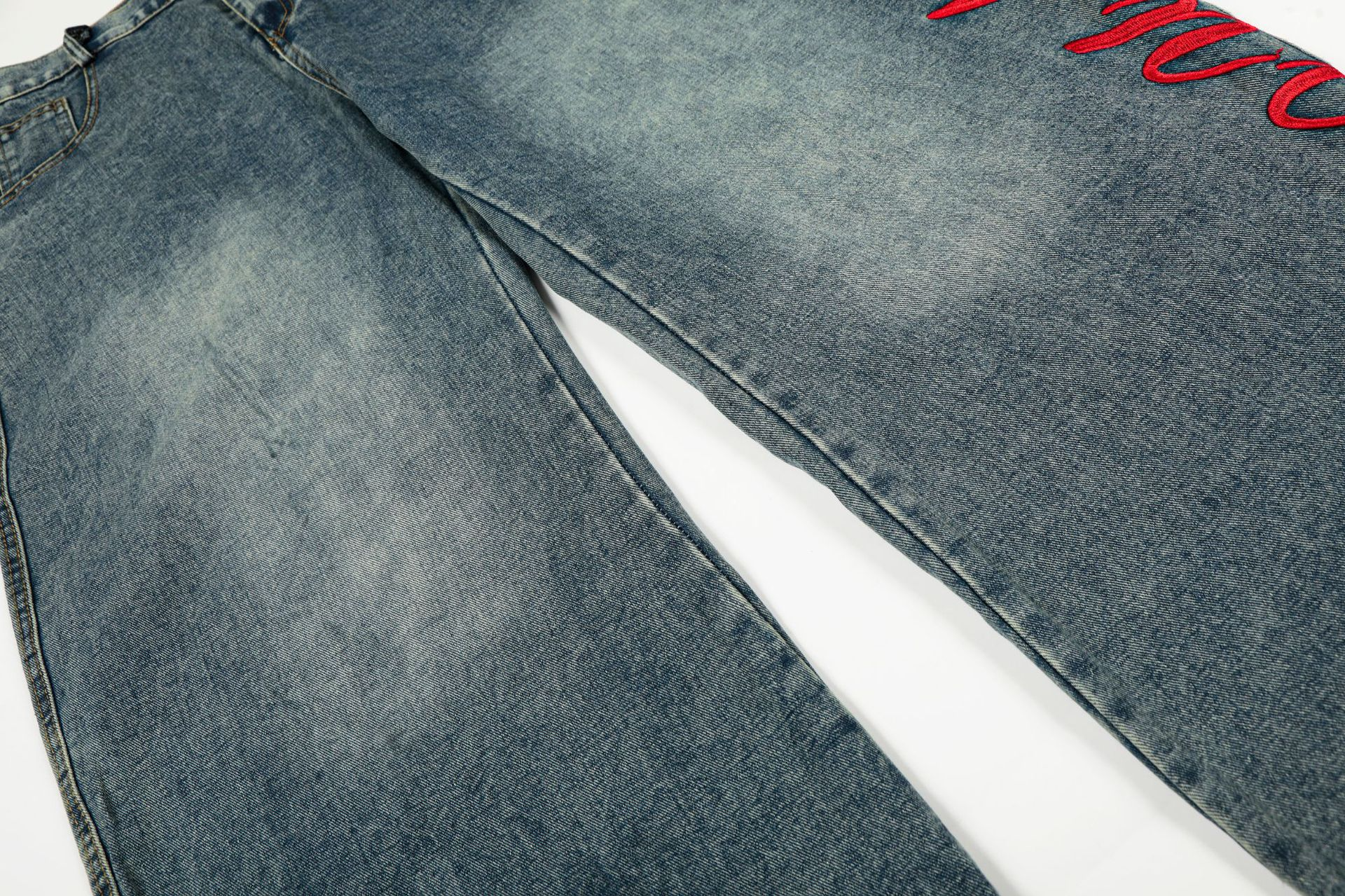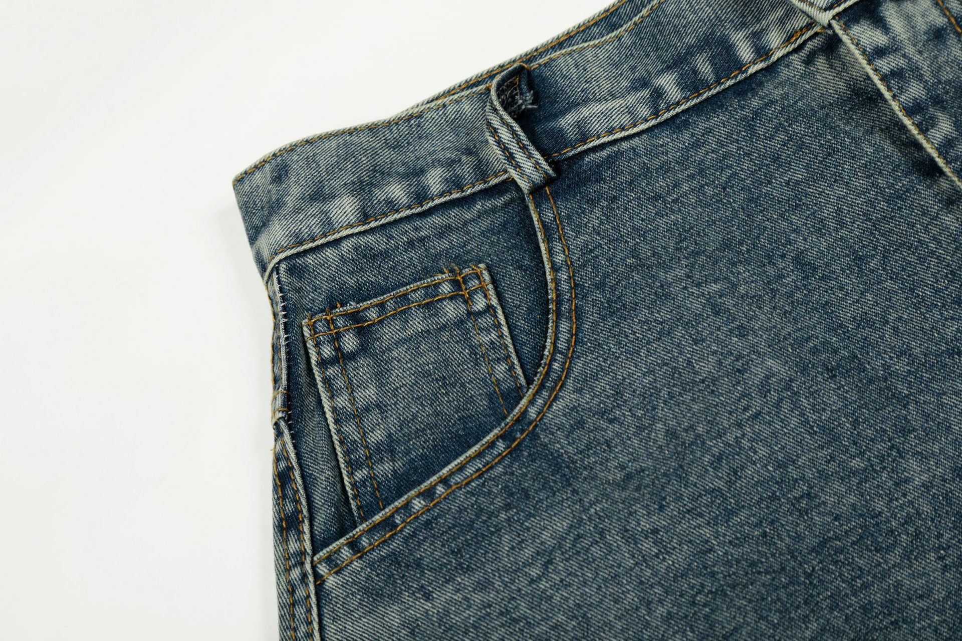 サイド刺繍デザインバックポケットステッチディテールデニムパンツ/cm0120