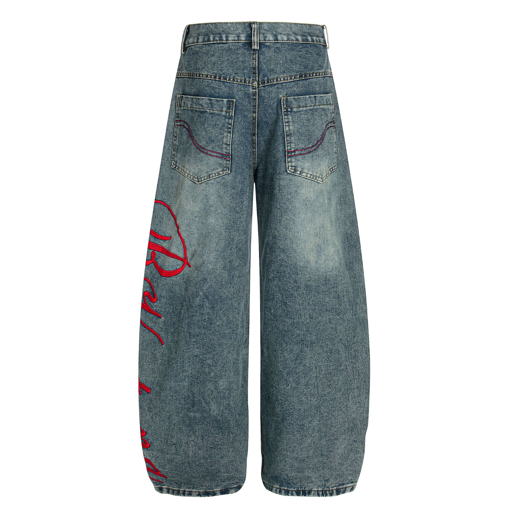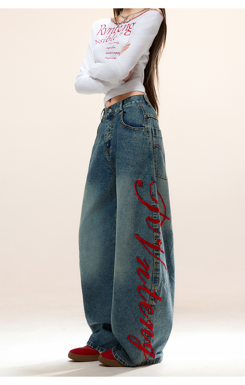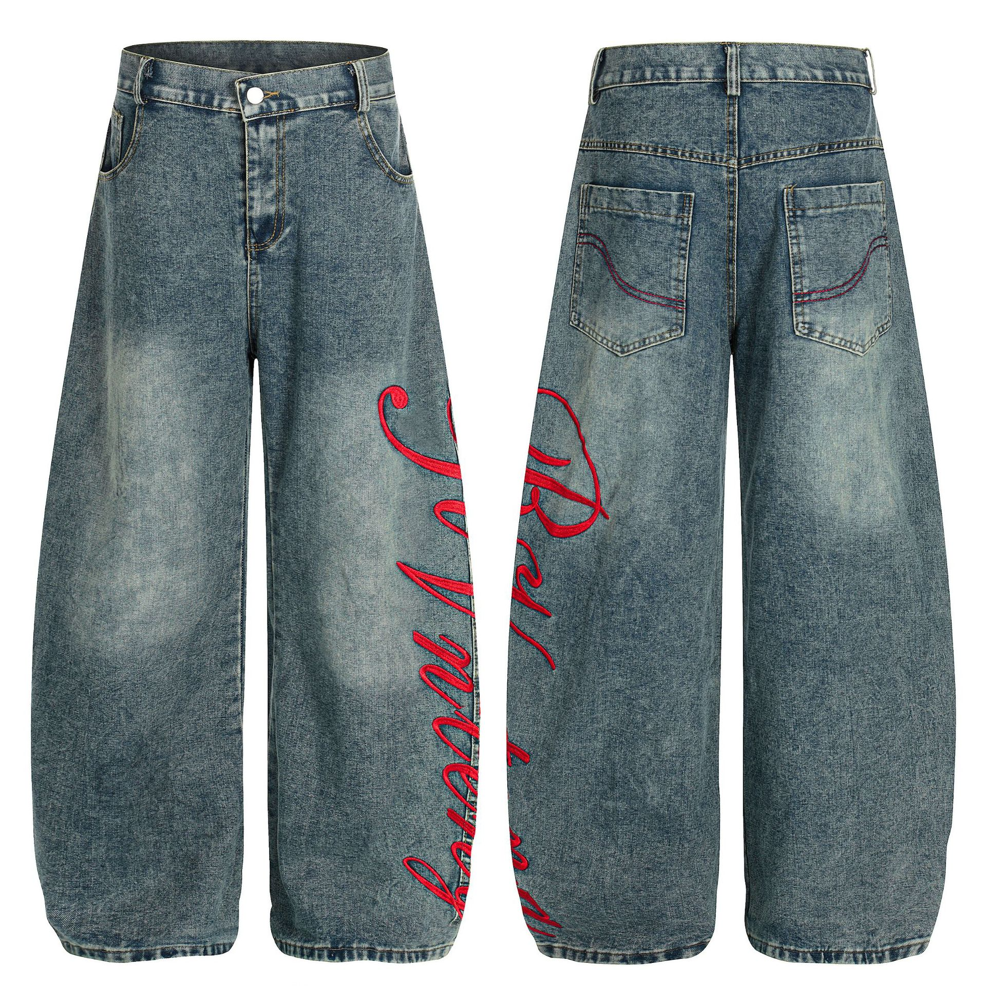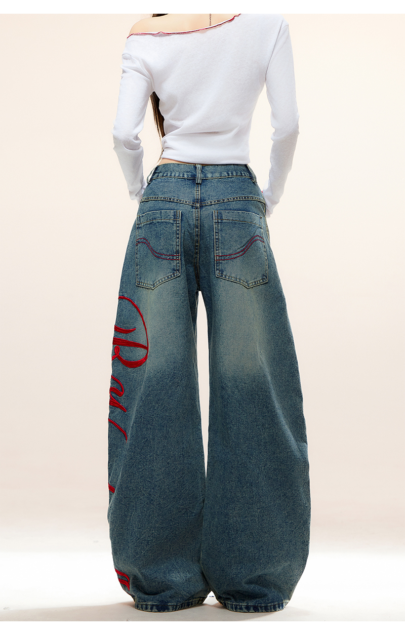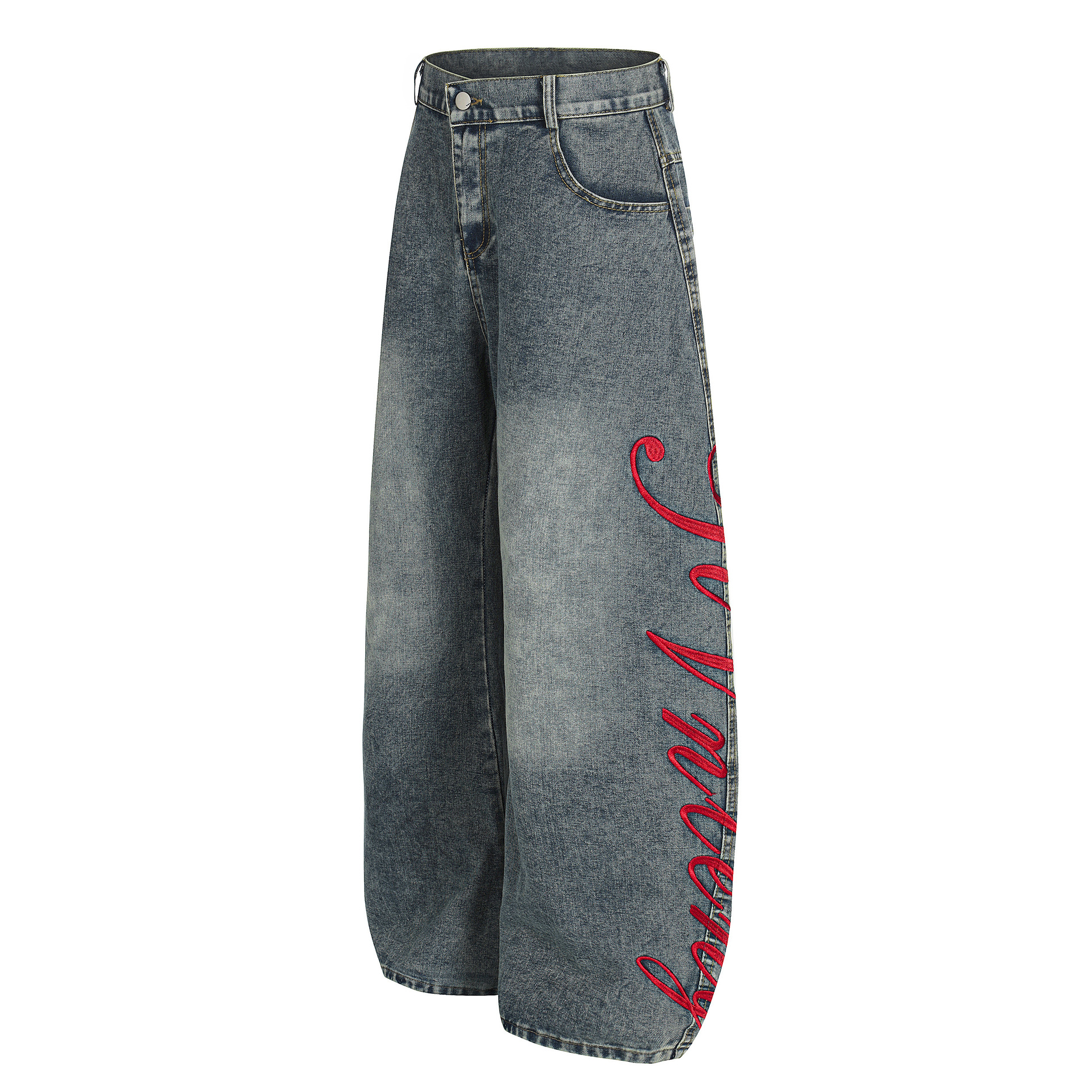 サイド刺繍デザインバックポケットステッチディテールデニムパンツ/cm0120