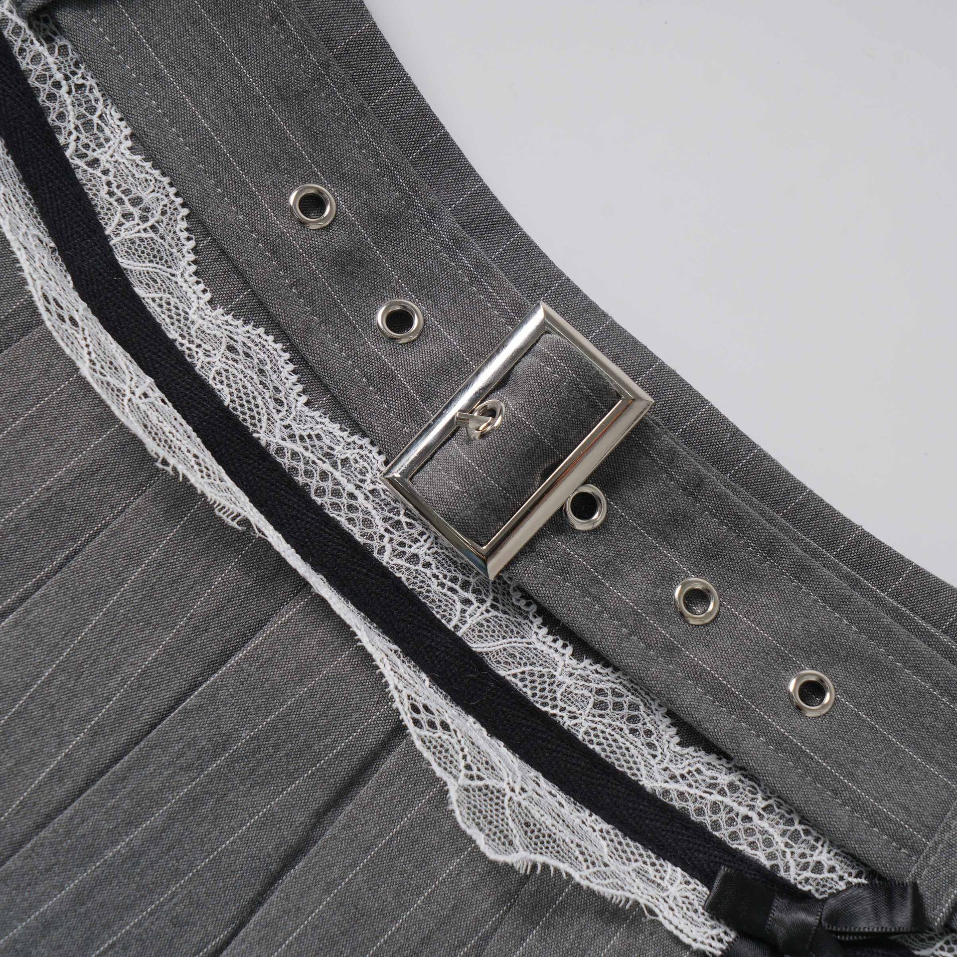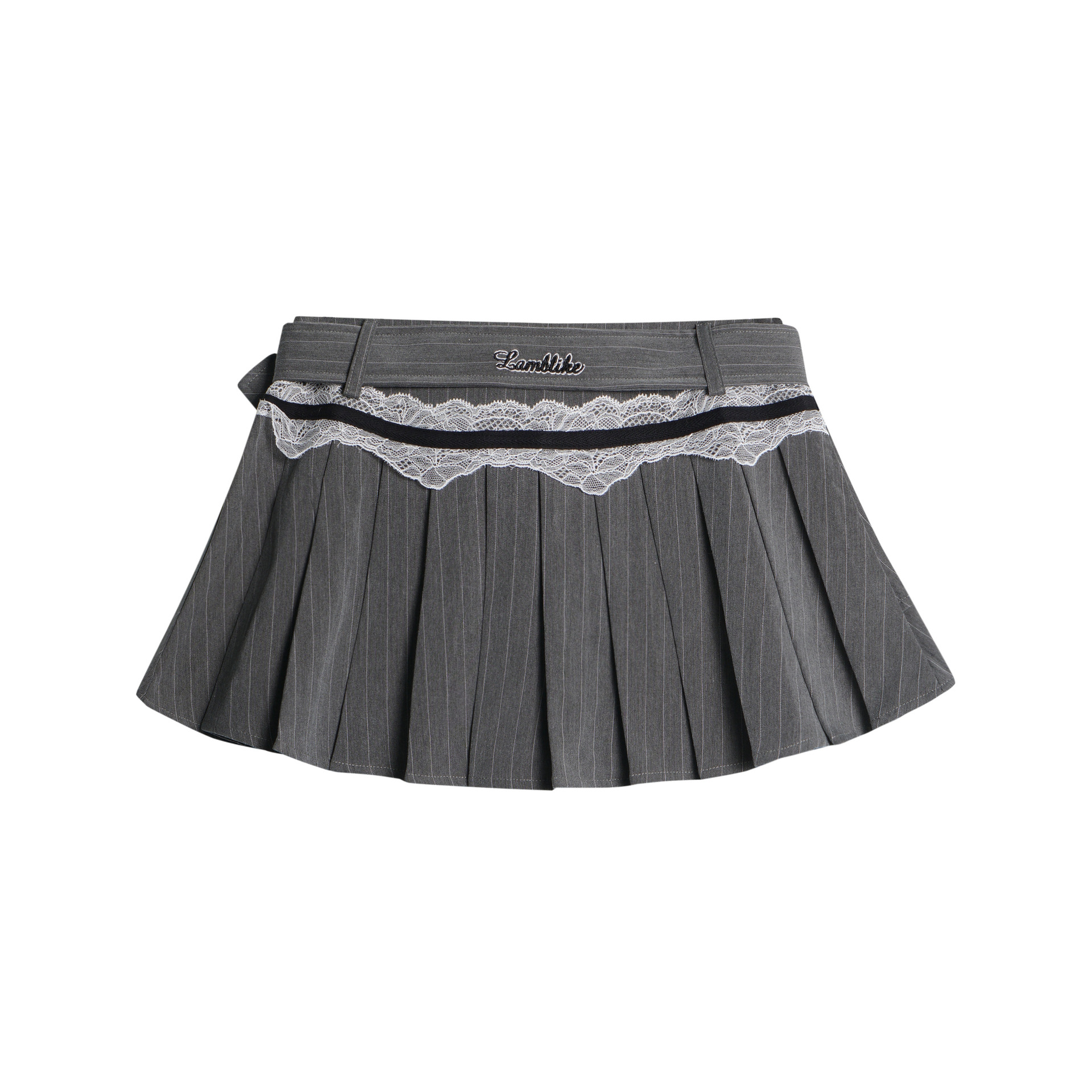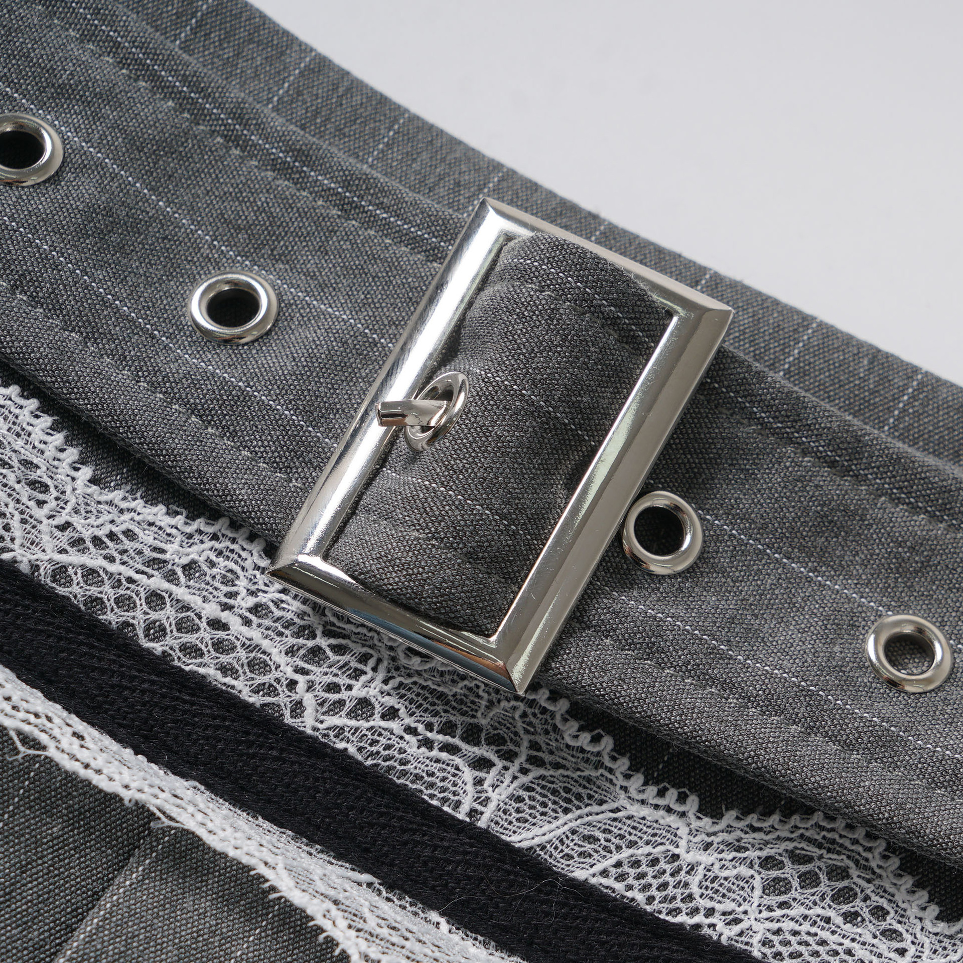 ベルトデザインレースディテールステッチワンポイントロゴミニスカート/cm0121