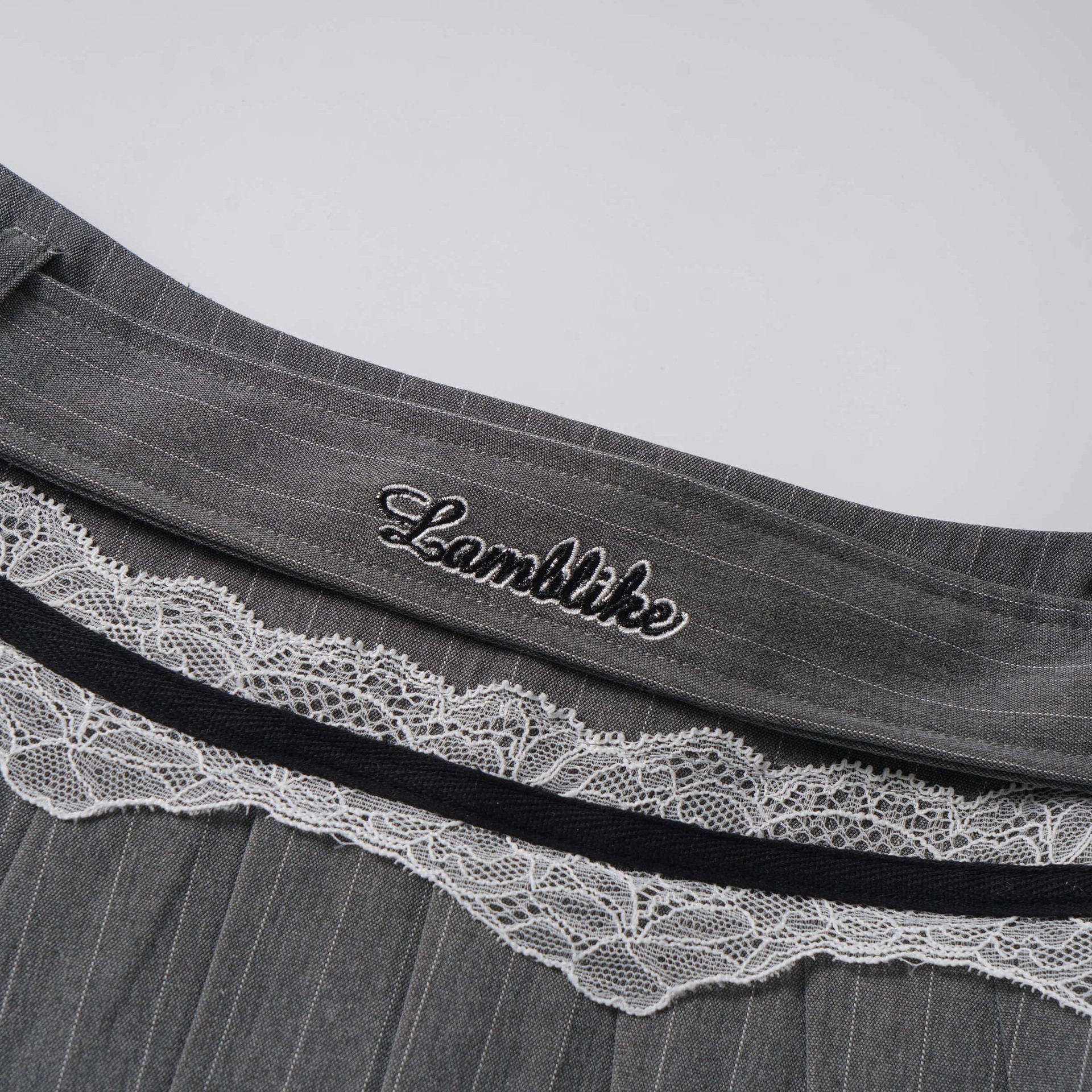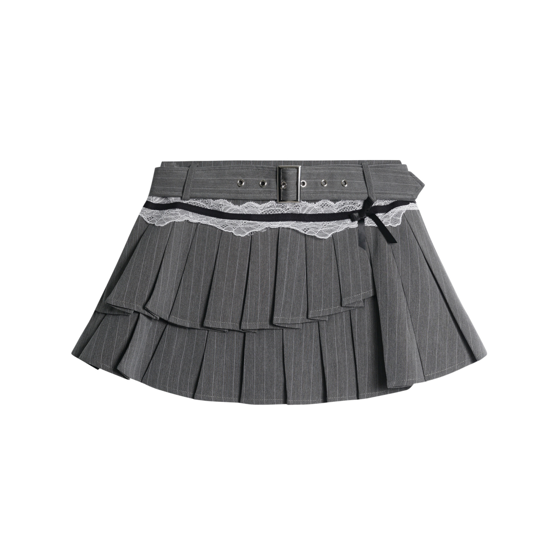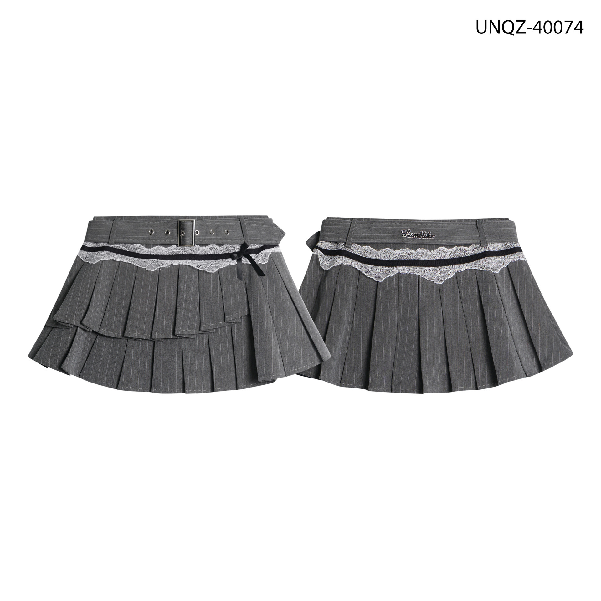 ベルトデザインレースディテールステッチワンポイントロゴミニスカート/cm0121