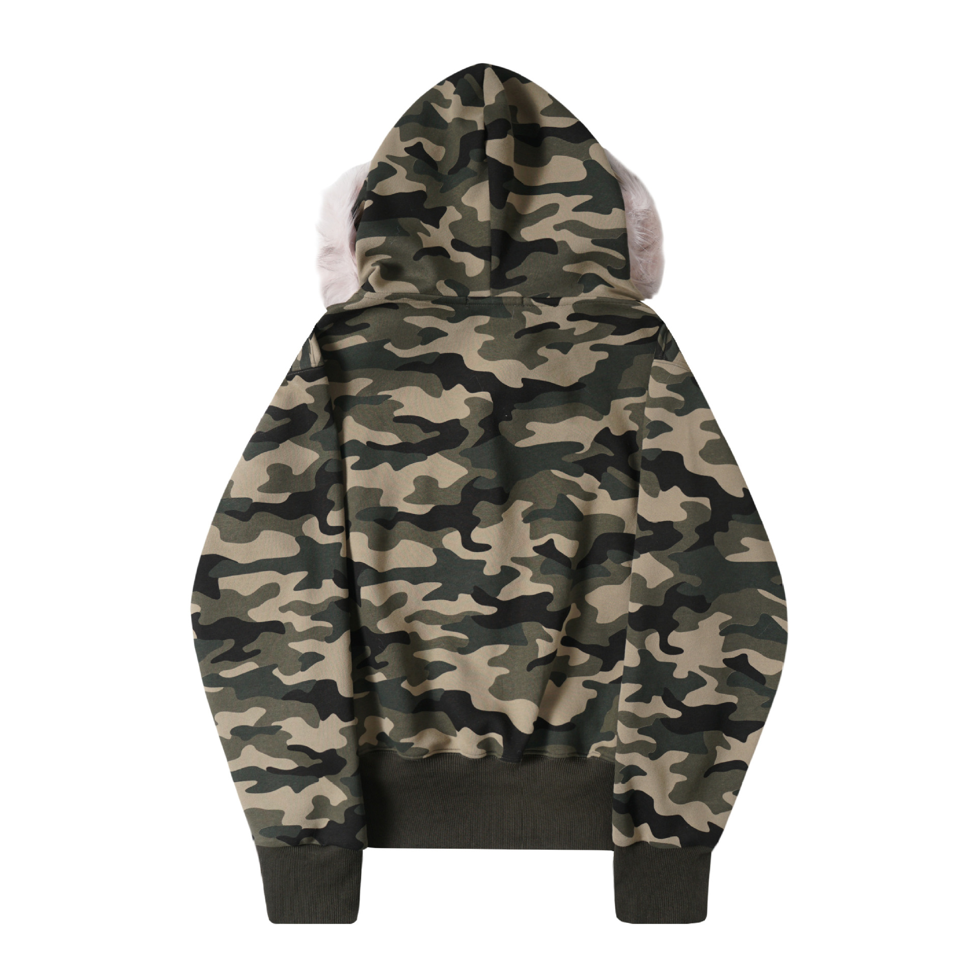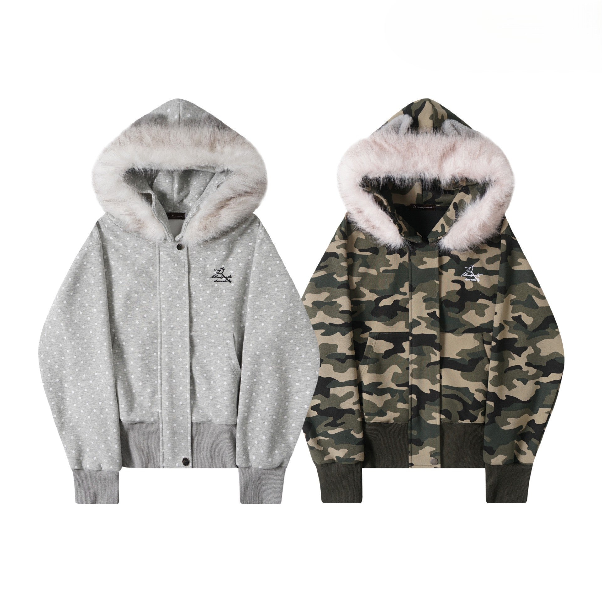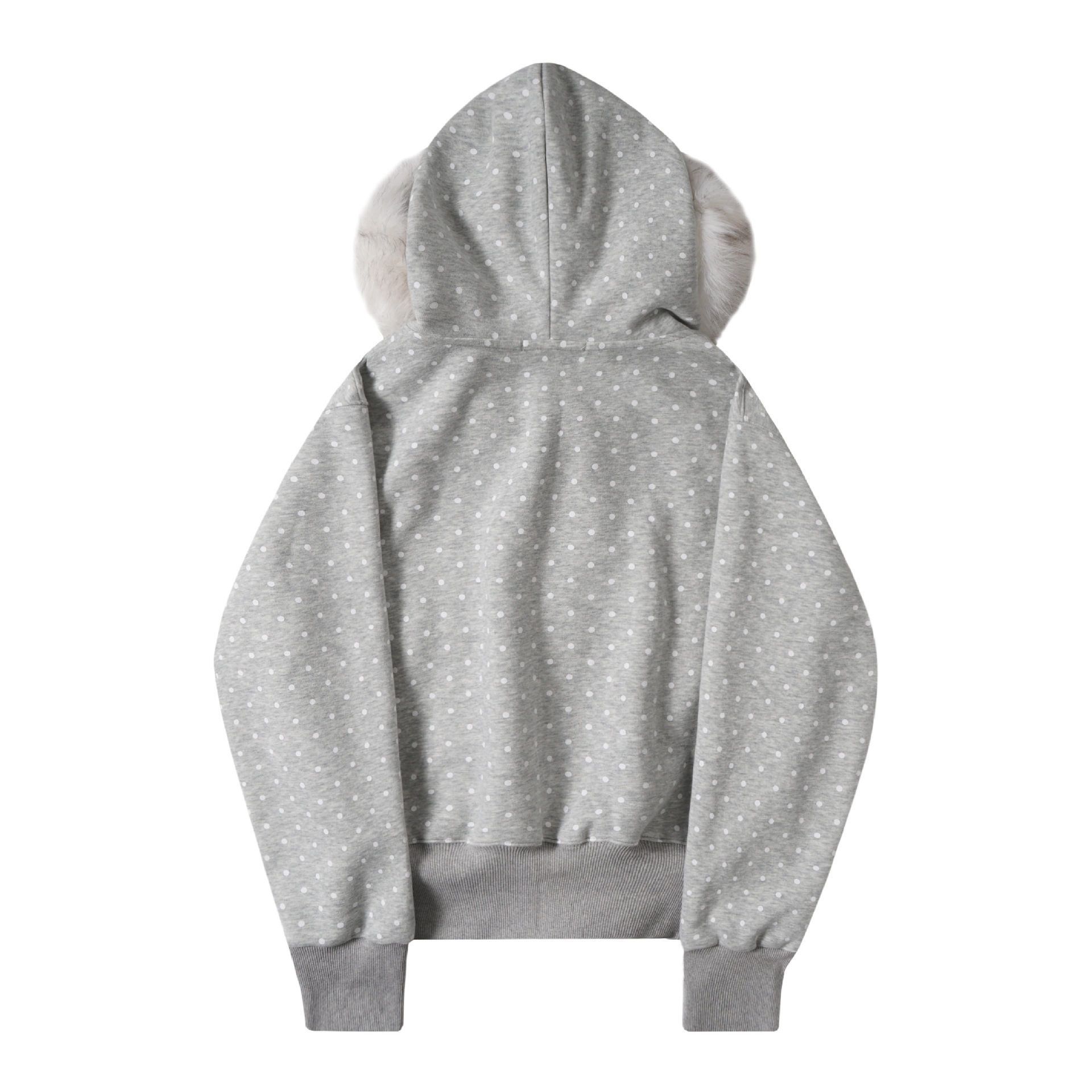 耳付きファーフードワンポイントロゴジップアップパーカー/2color/cm0126