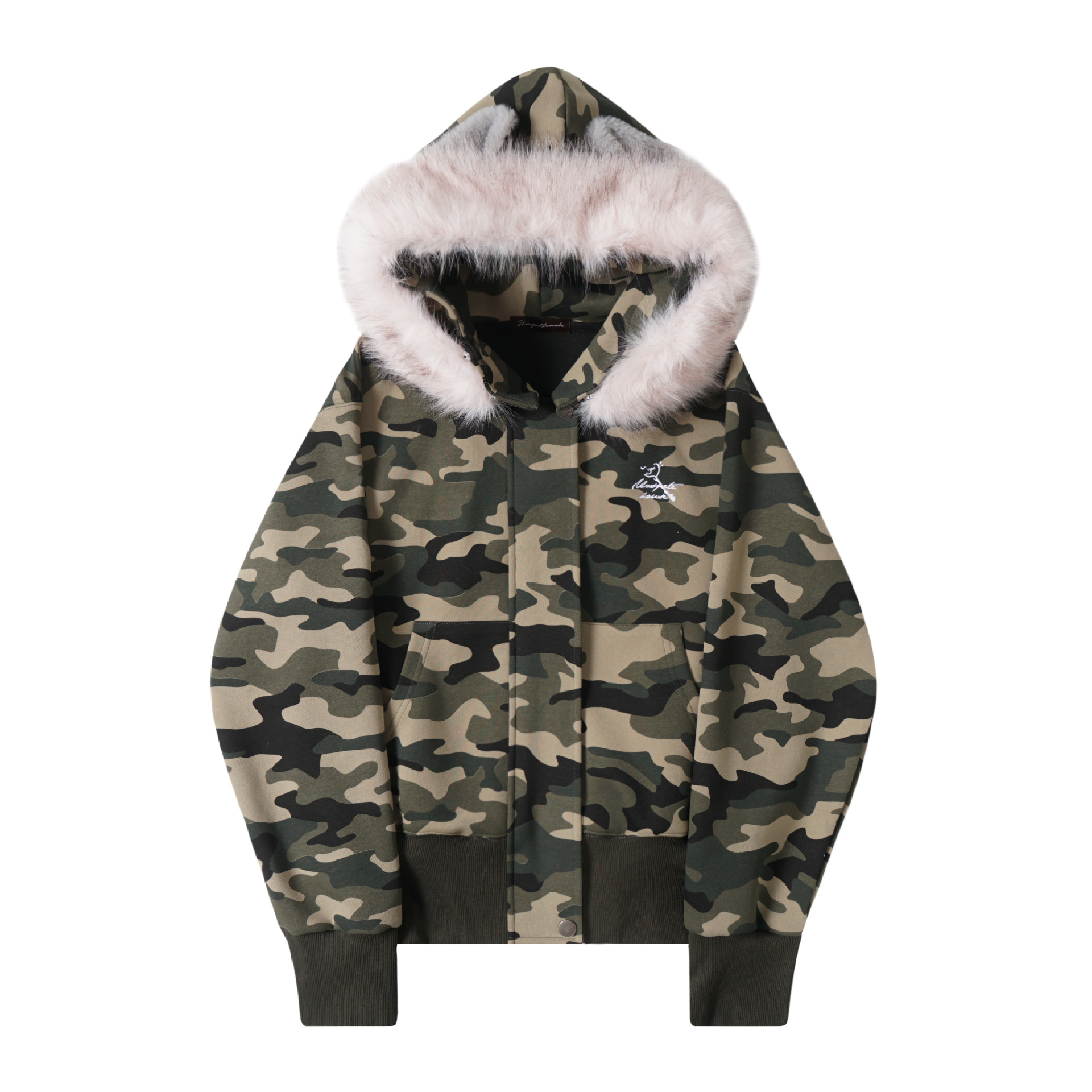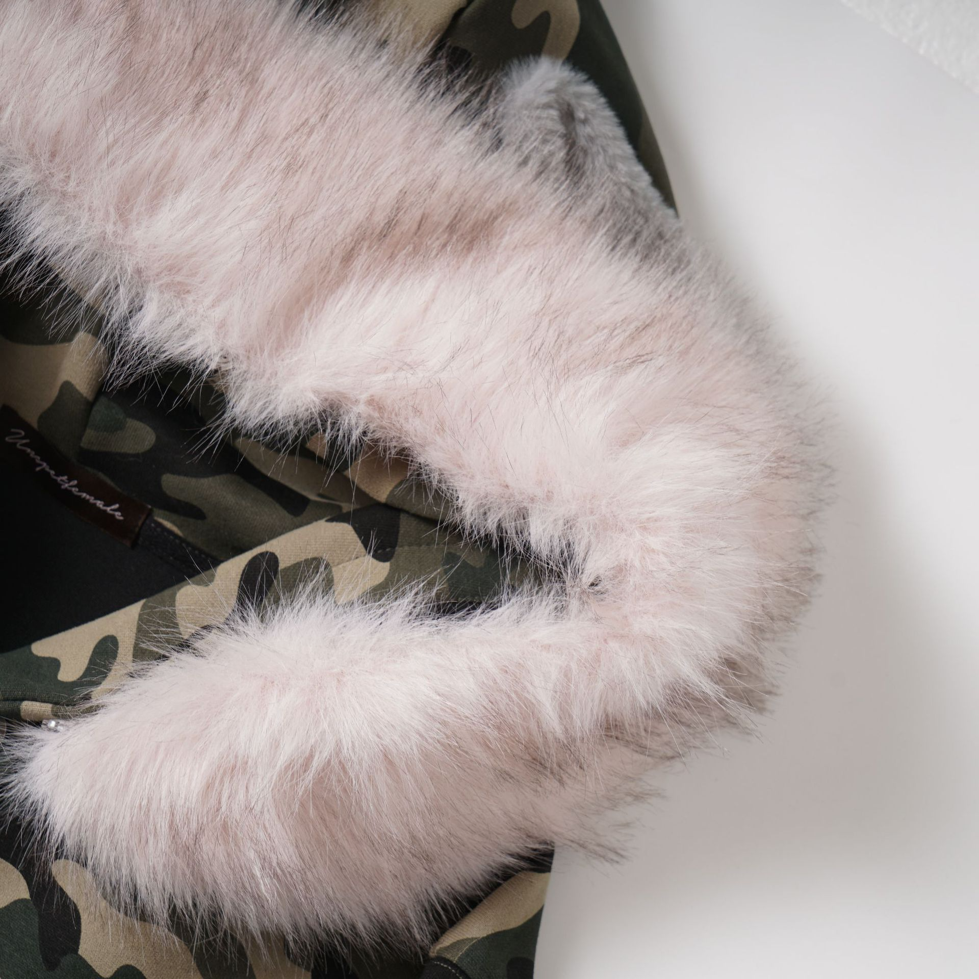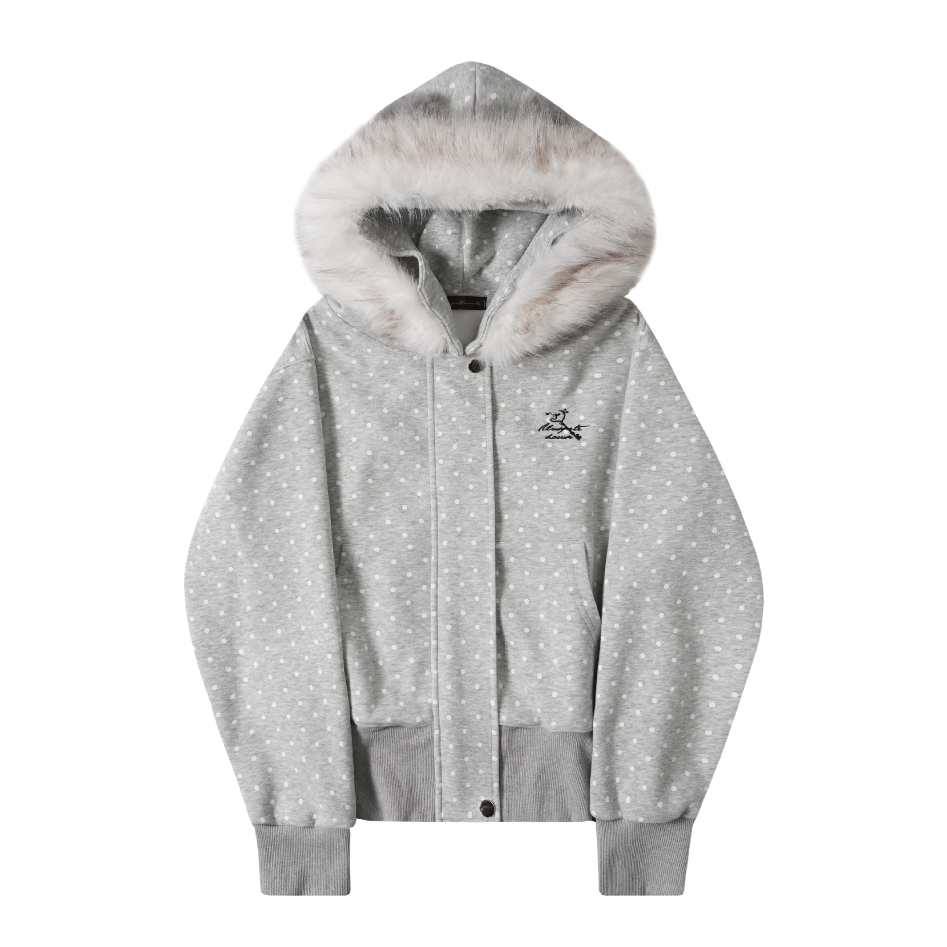 耳付きファーフードワンポイントロゴジップアップパーカー/2color/cm0126