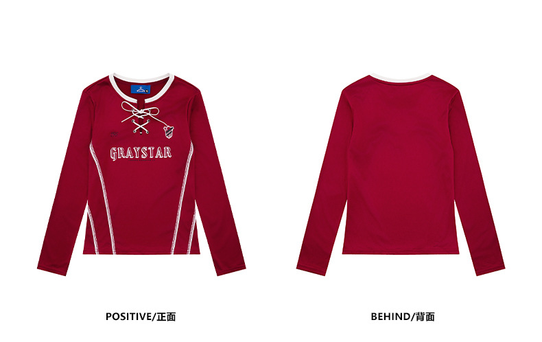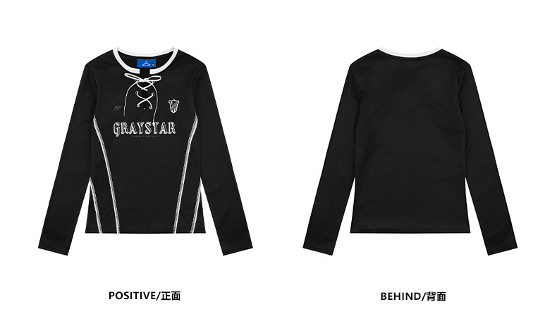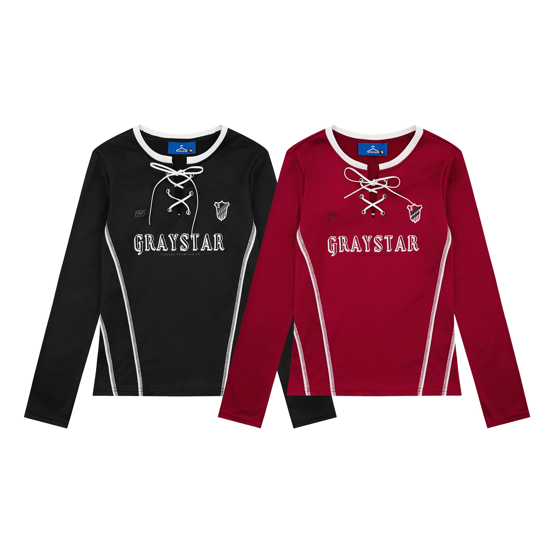 レースアップラインデザイン長袖カットソー/2color/cm0128