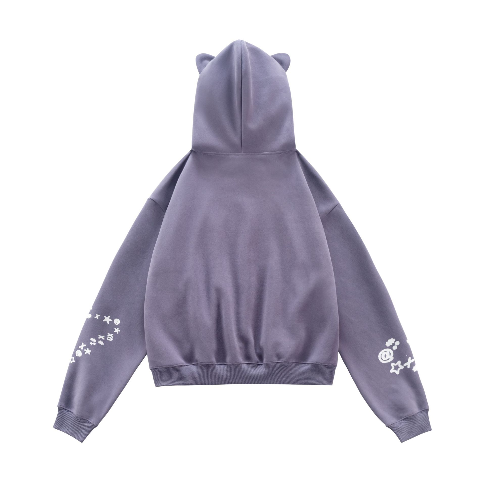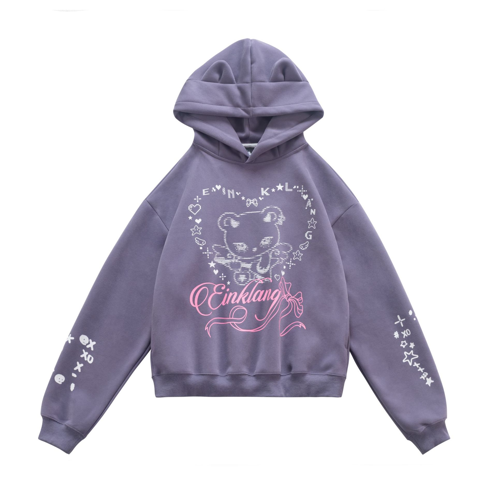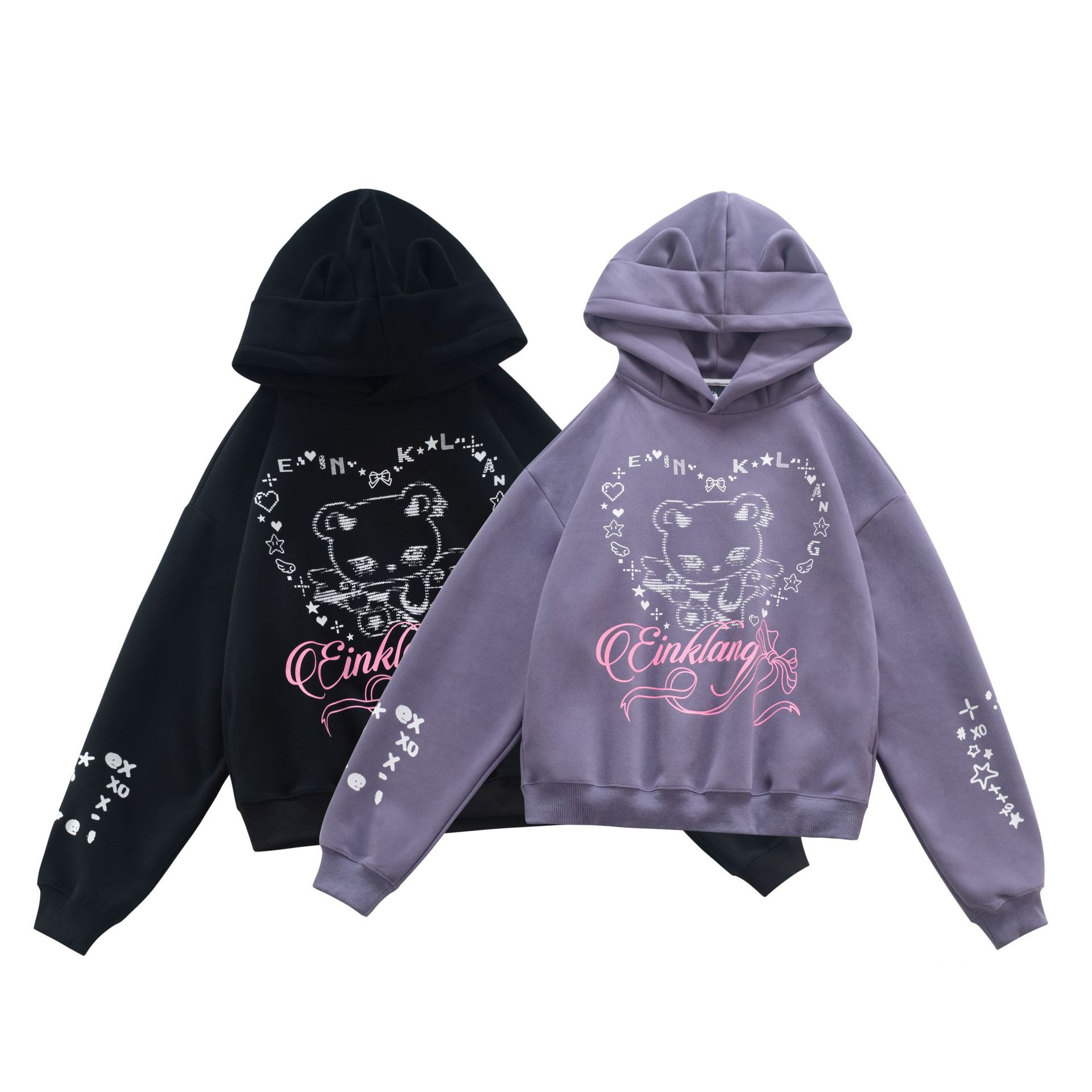 ベアプリントデザイン/クマ耳付きフードパーカー/2color/cm0129