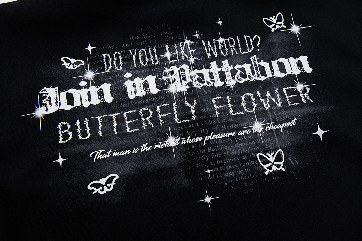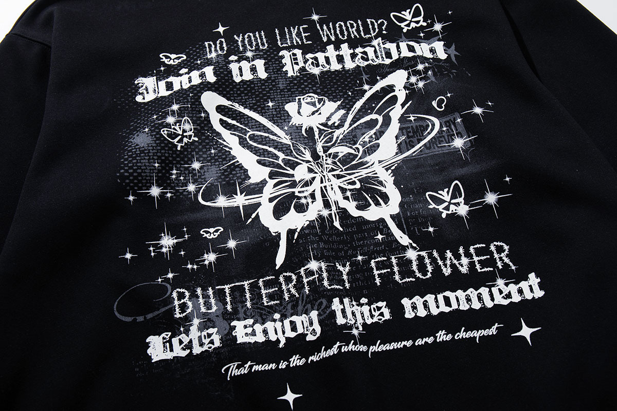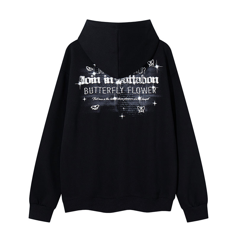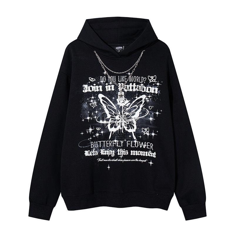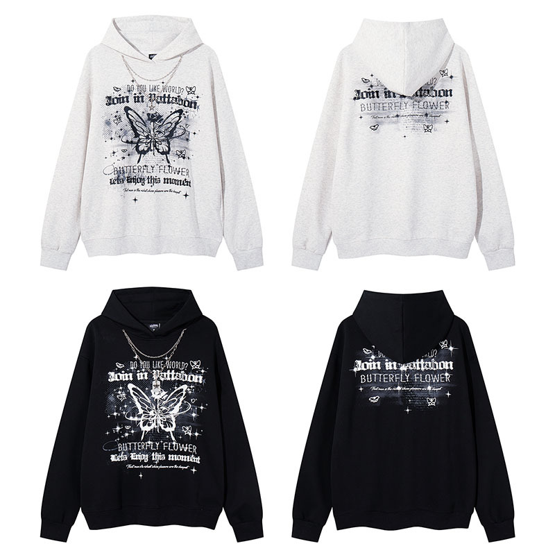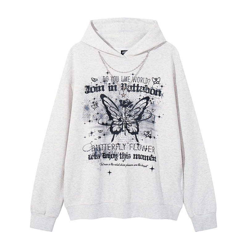 チェーンアクセ付きバタフライプリントパーカー/2color/cm0151