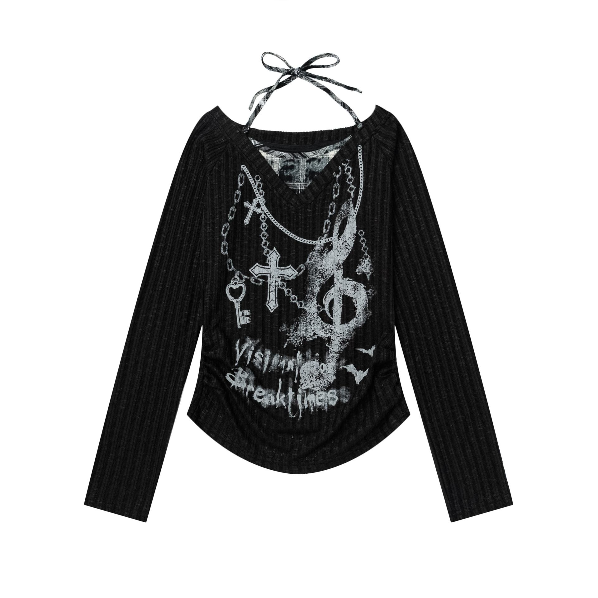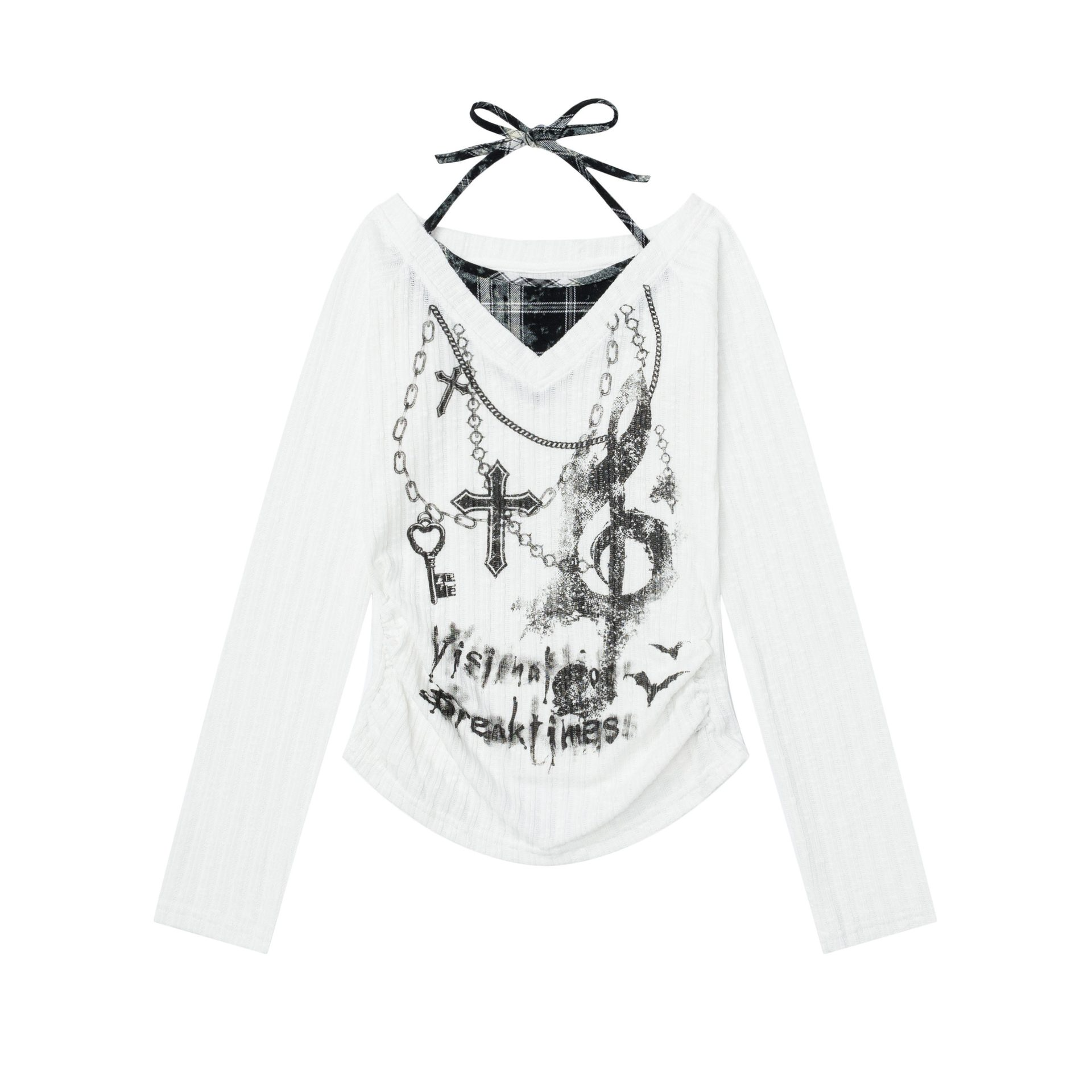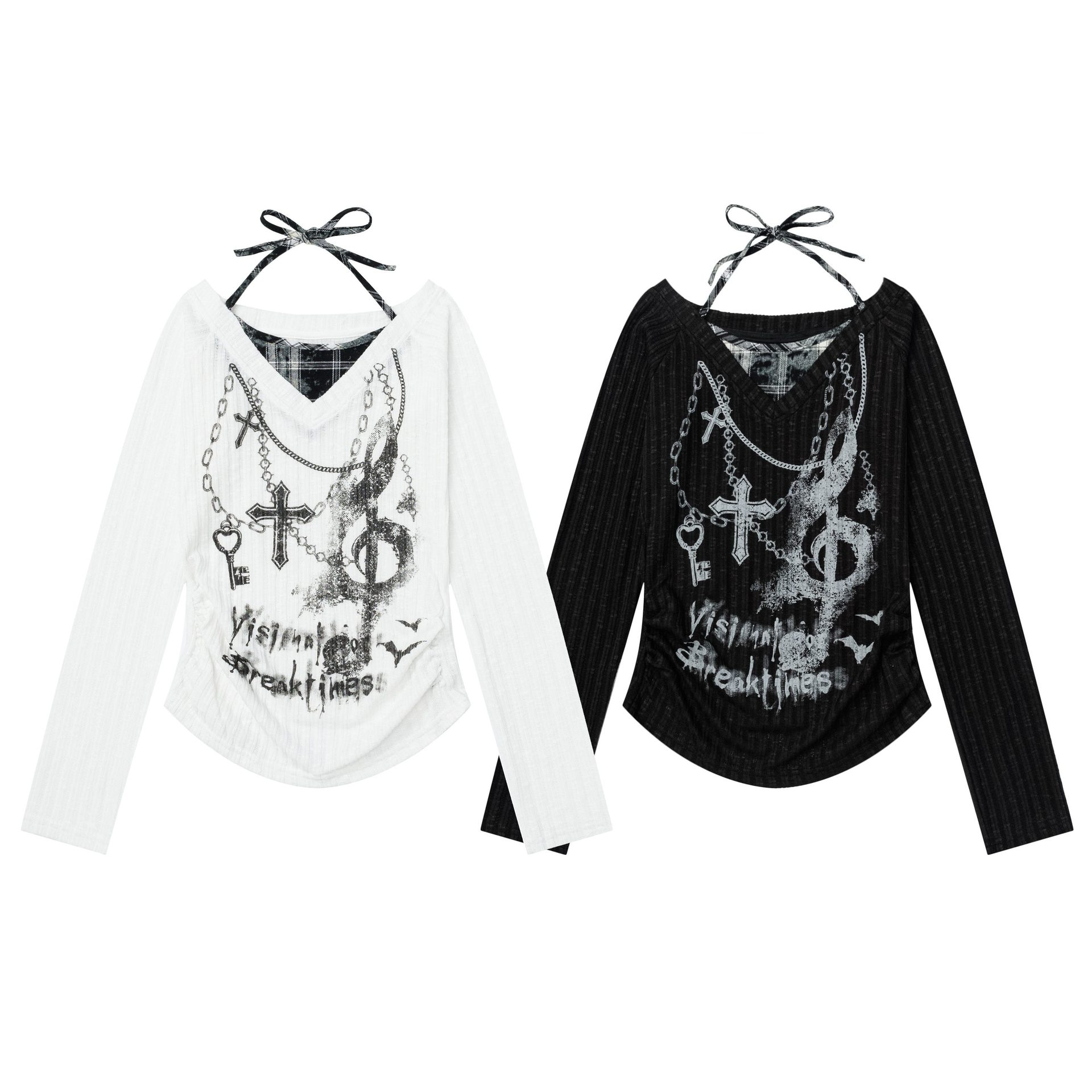 クロスデザインプリントフェイクレイヤートップス/2color/cm0153