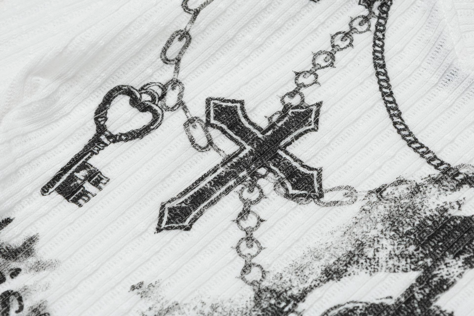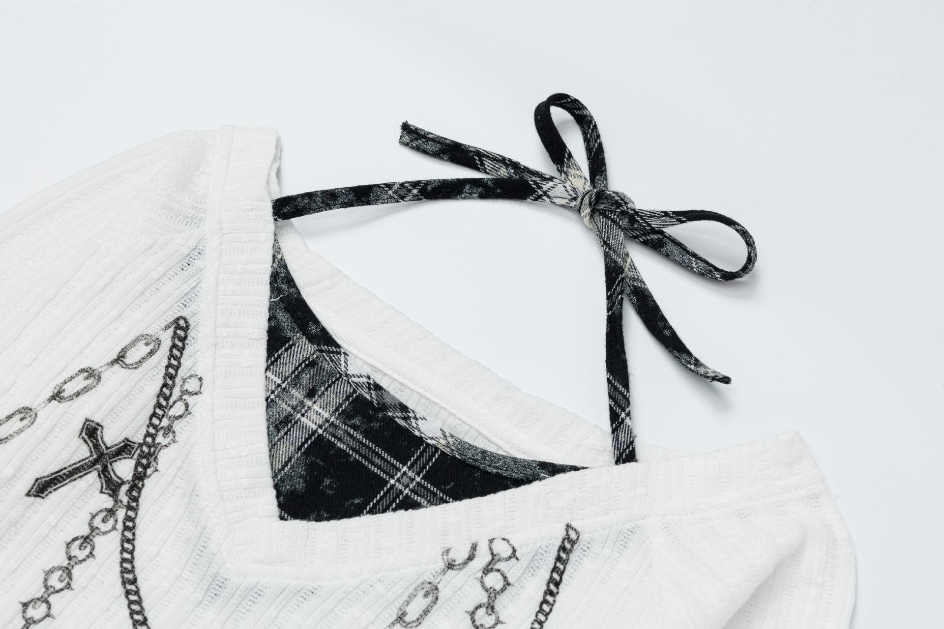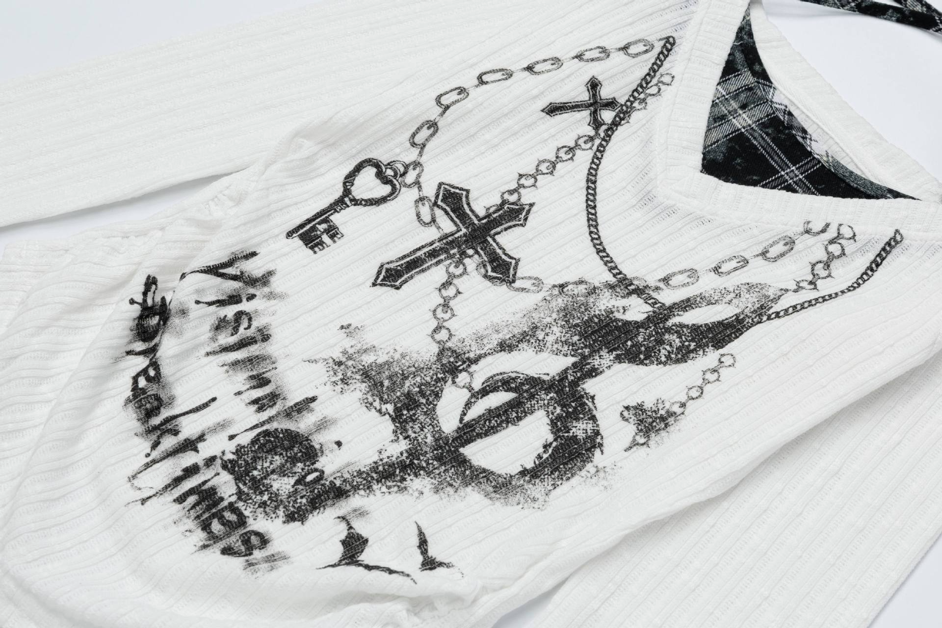 クロスデザインプリントフェイクレイヤートップス/2color/cm0153