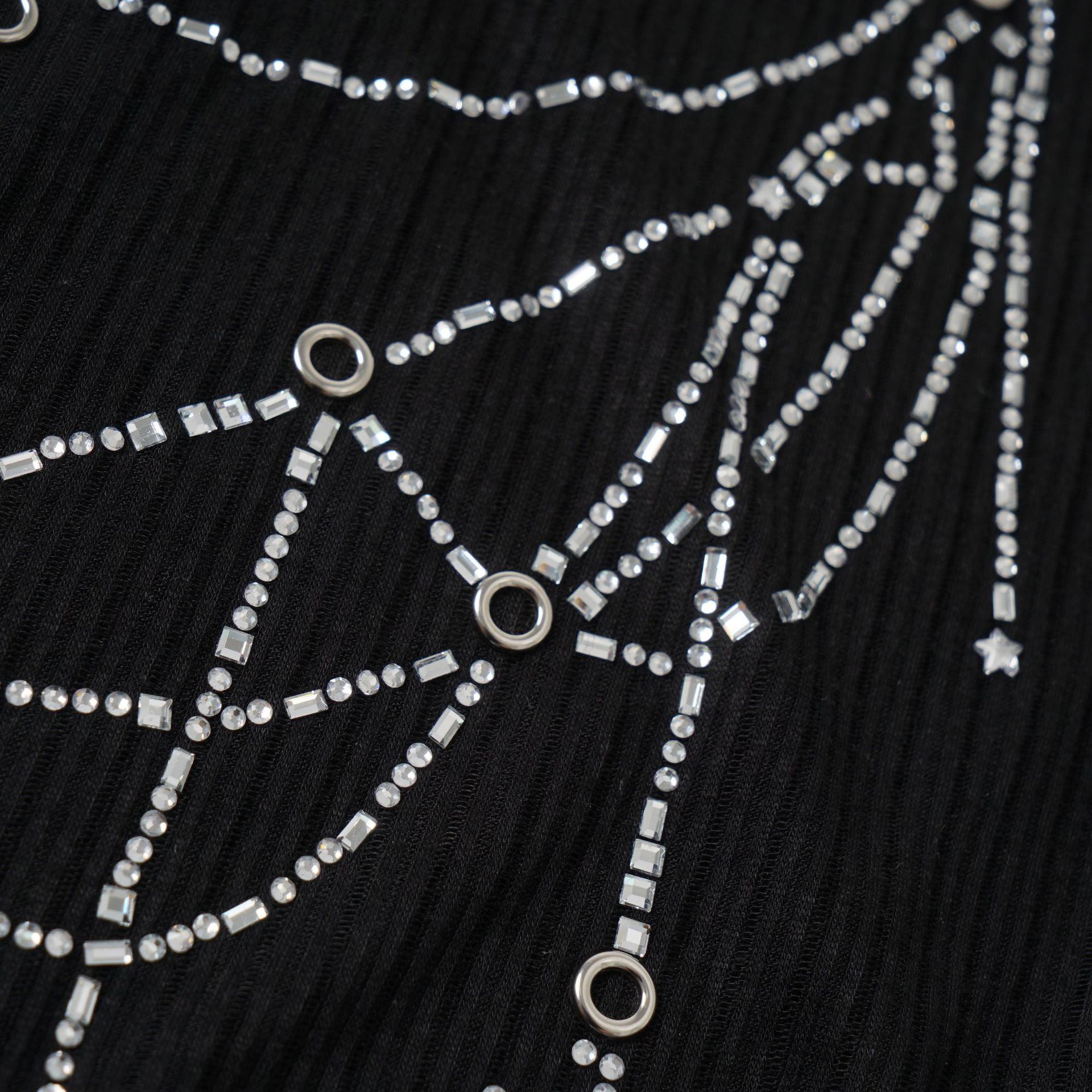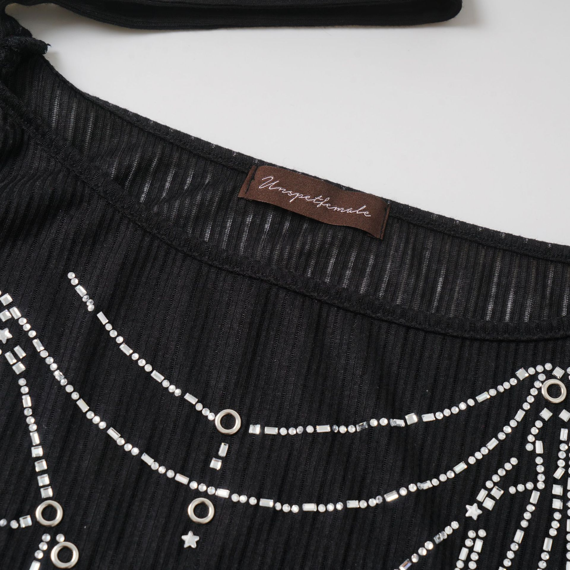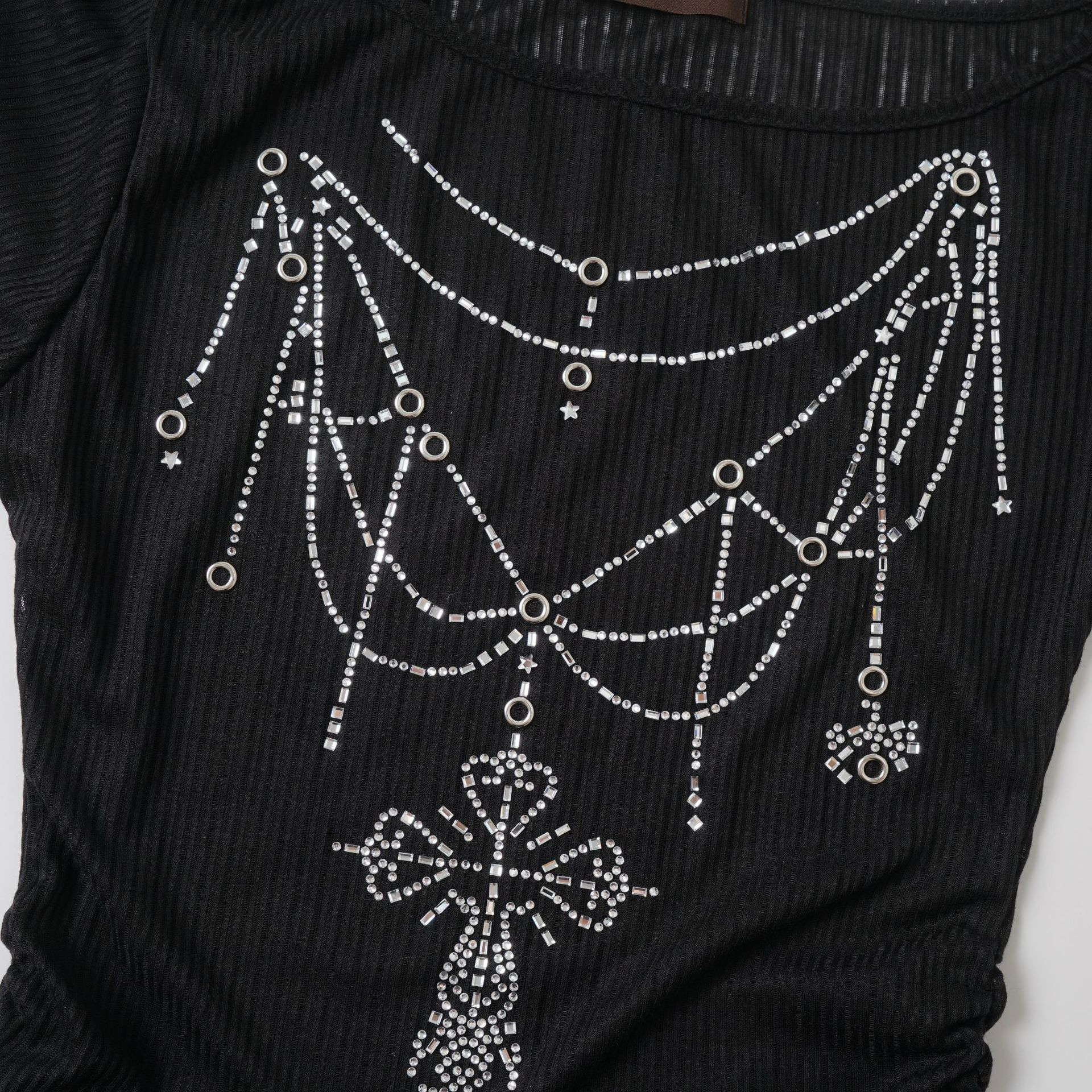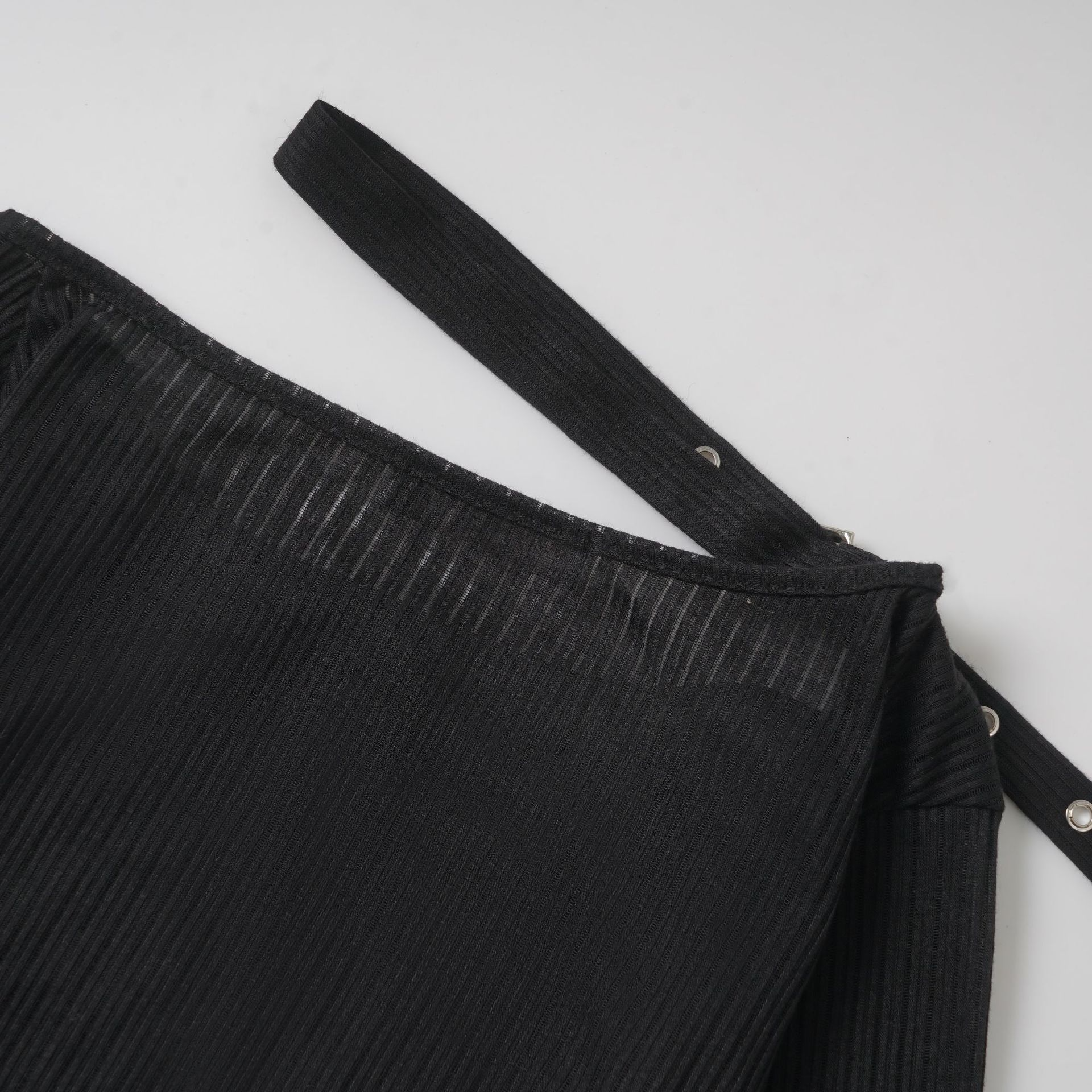 ベルトデザインラインストーン長袖トップス/2color/cm0156