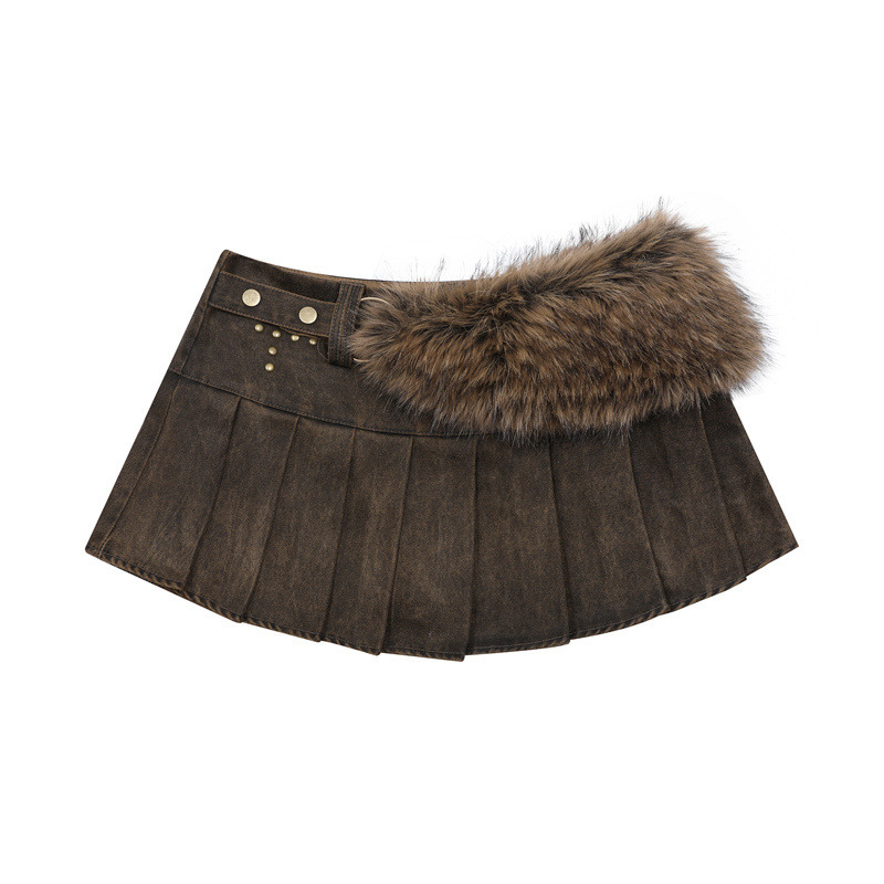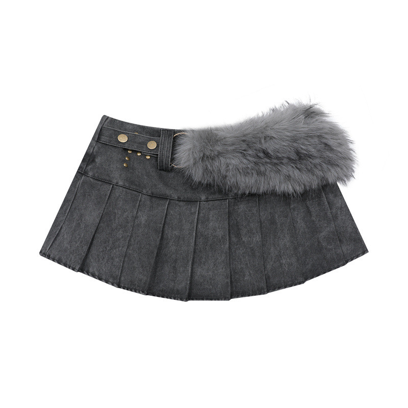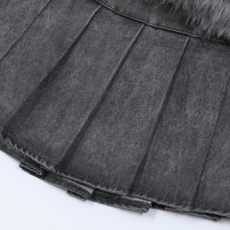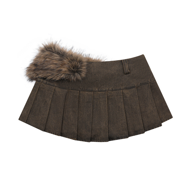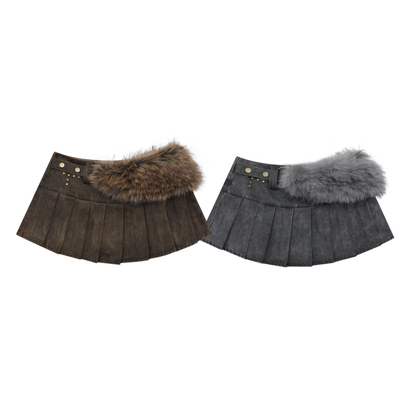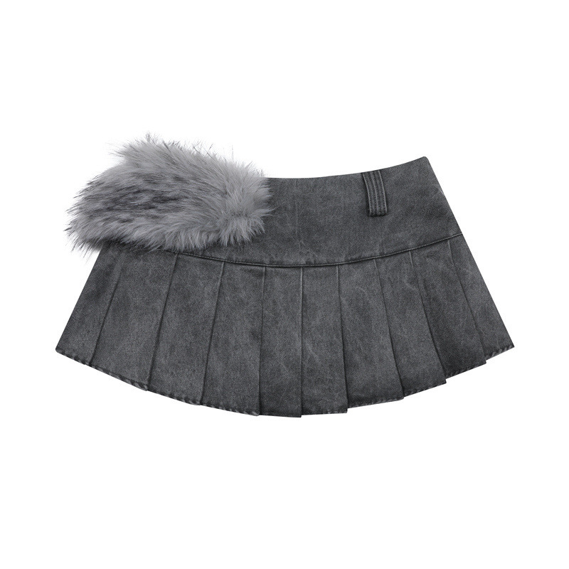 エコファーデザインプリーツデザインミニスカート/2color/cm0160
